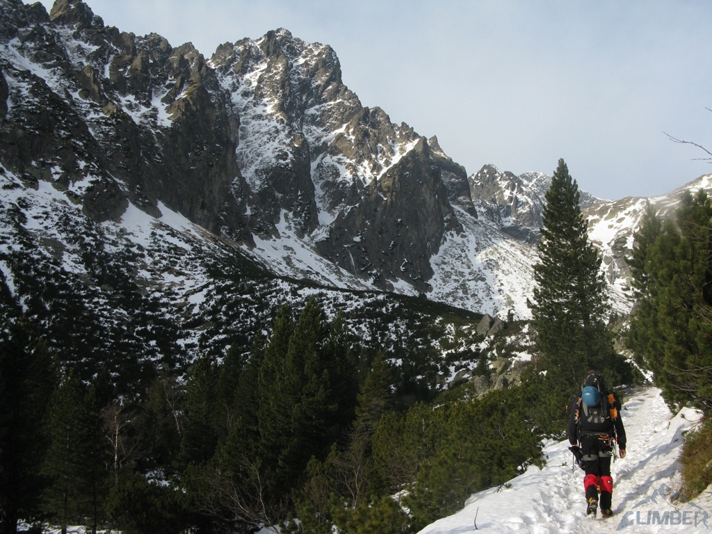 Razem z Adamem i Ryśkiem wybieram się pod koniec roku na dwa dni w Tatry. Do kolekcji zimowej planujemy dorzucić dwa szczyty z rejonu Doliny Małej Zimnej Wody - Baranie Rogi i Pośrednią Grań. Zaczynamy od pierwszego - w planach mamy wejście nie najłatwiejszą trasą a jedną z dróg wspinaczkowych - Baranią Drabiną (słow. Baraní rebrík). Podchodzimy pod żleb, tutaj jednak w wyniku nieporozumienia rozdzielamy się - Rysiek wchodzi w stromy lód, ja na żebro, a Adam postanawia jednak wrócić na drogę normalną, przez przełęcz. Nie jesteśmy tego dnia zgranym teamem 😉.