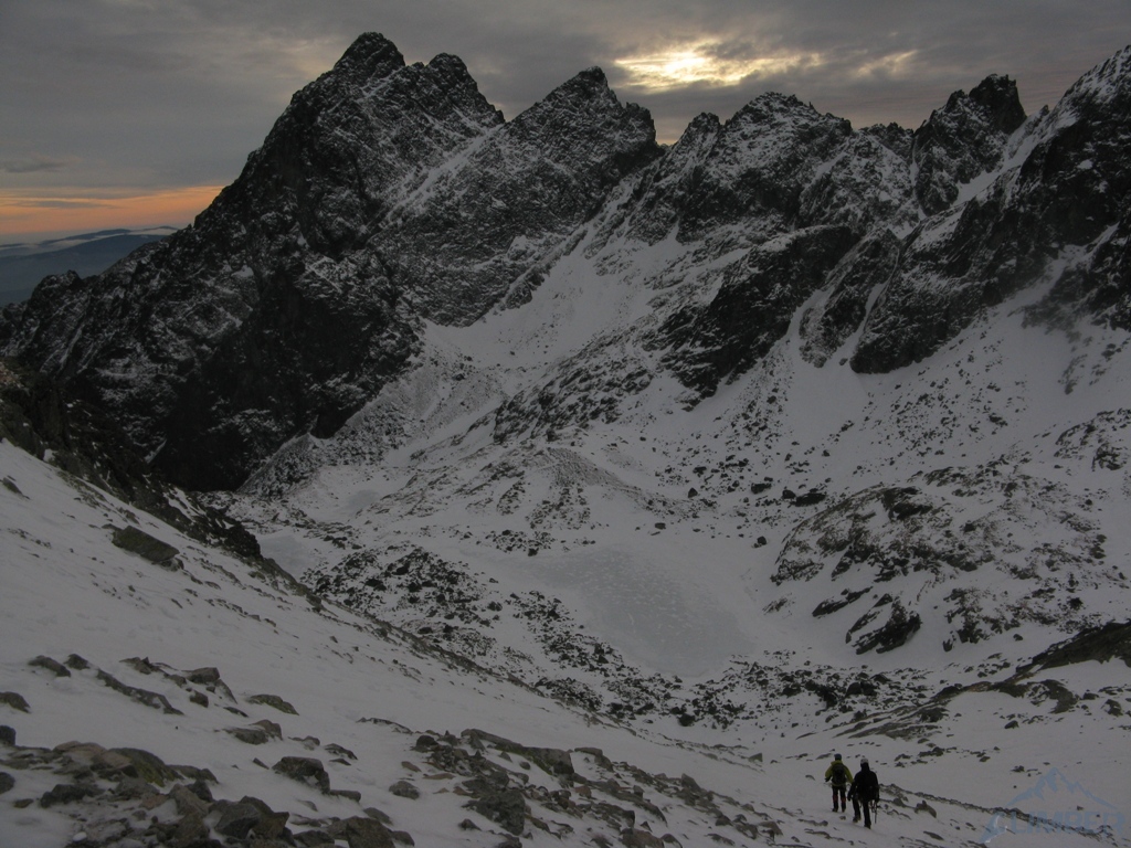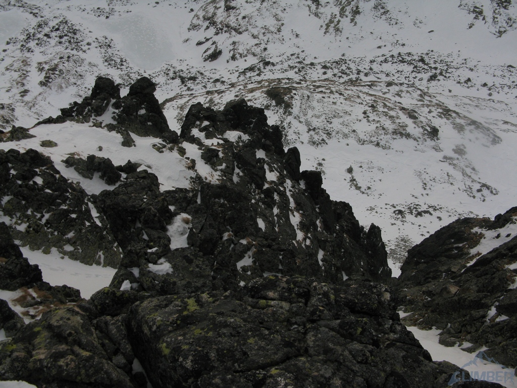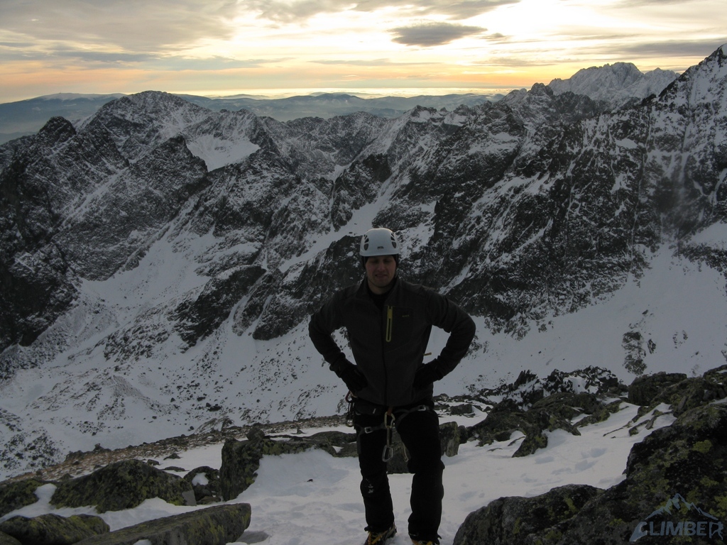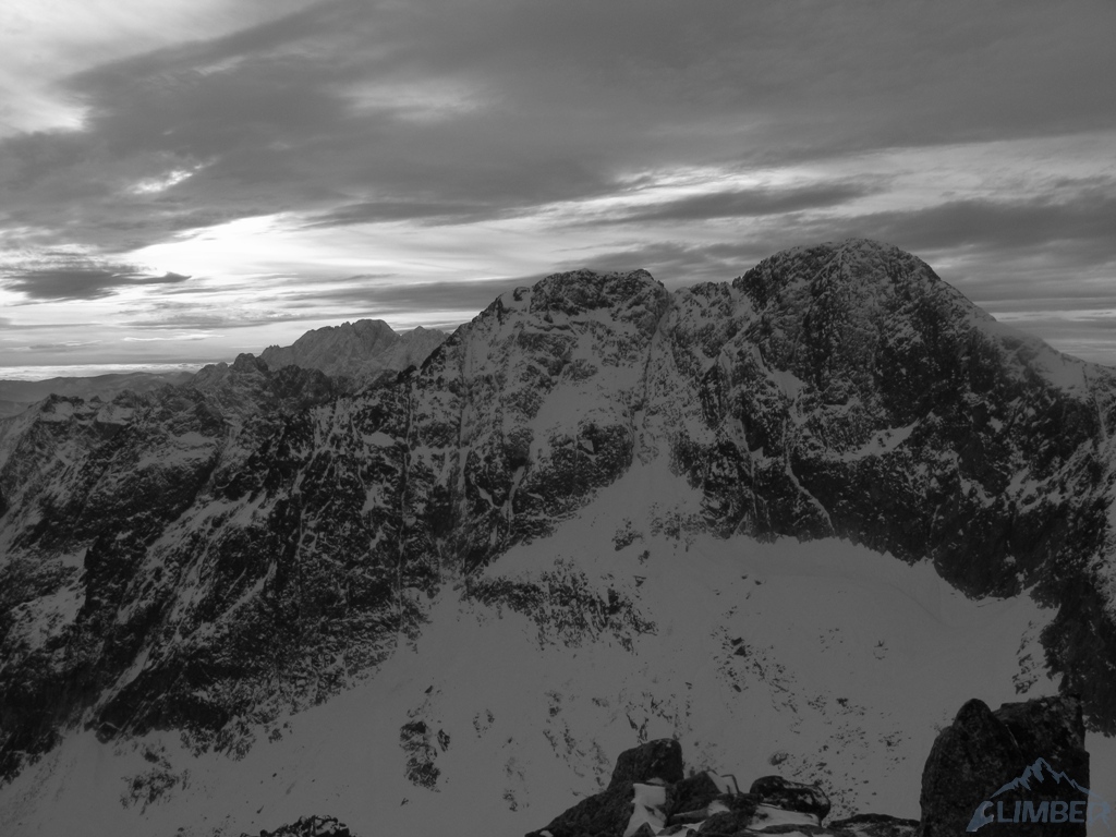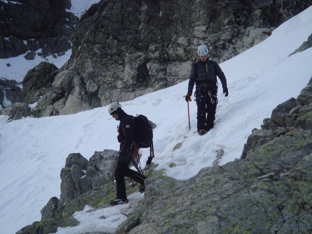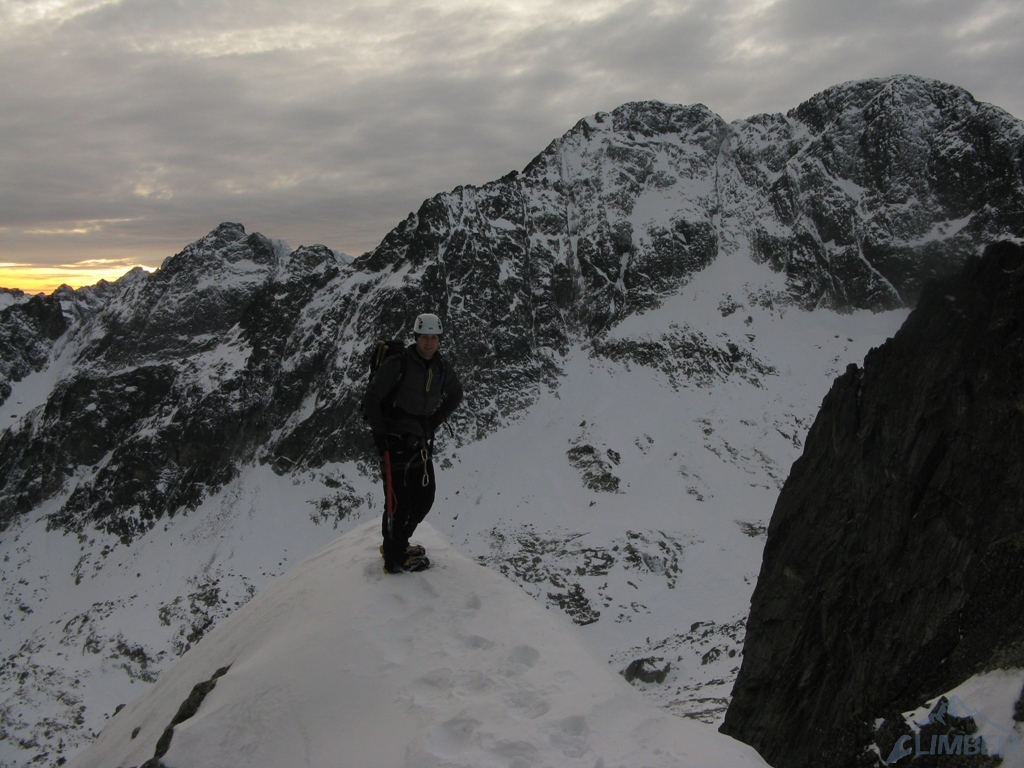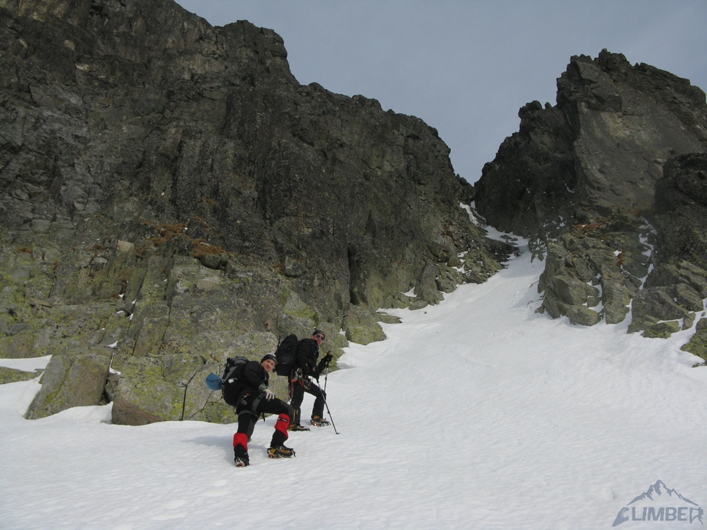 Nie mamy już odwrotu, w konsekwencji Rysiek przechodzi bez asekuracji zalodzony żleb, ja natomiast w tym samym stylu rozprawiam się z żebrem. Spotykamy się pod szczytem i wymieniamy wrażeniami, po czym już na spokojnie schodzimy do naszej bazy - Bilikovej Chaty na Hrebenioku, kolejnego dnia czeka bowiem Pośrednia.