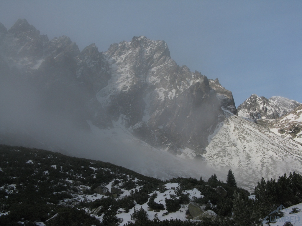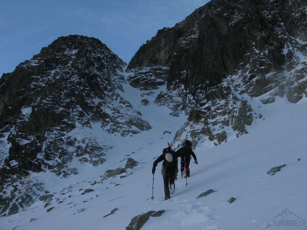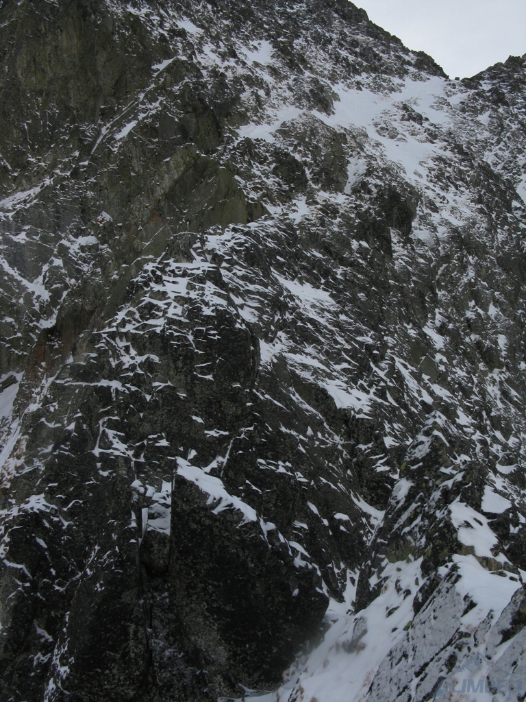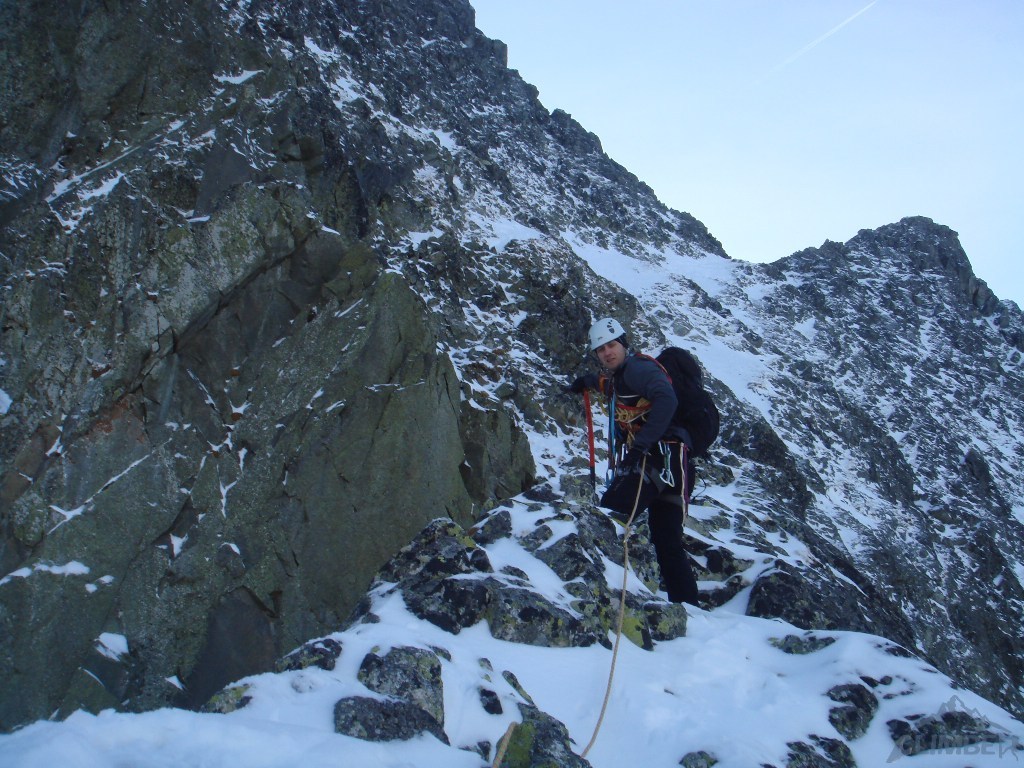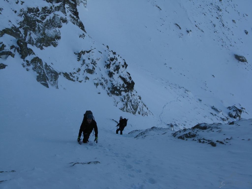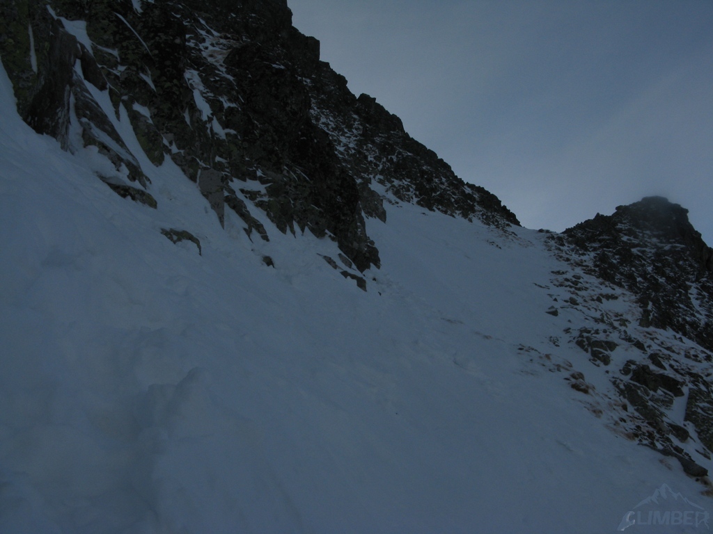 Następnego dnia po wejściu na Baranie Rogi ponownie podchodzimy do Terinki i atakujemy Pośrednią Grań. Niestety warunki śniegowe są bardzo złe - mnóstwo czasu zajmuje nam dotarcie na przełęcz za Żółtą Ścianą, a następnie przejście krótkiej grani doprowadzającej do Ławki Doubkego. Ta okazuje się mocno zabita śniegiem więc w końcu odpuszczamy dalszą walkę i zaliczamy odwrót.