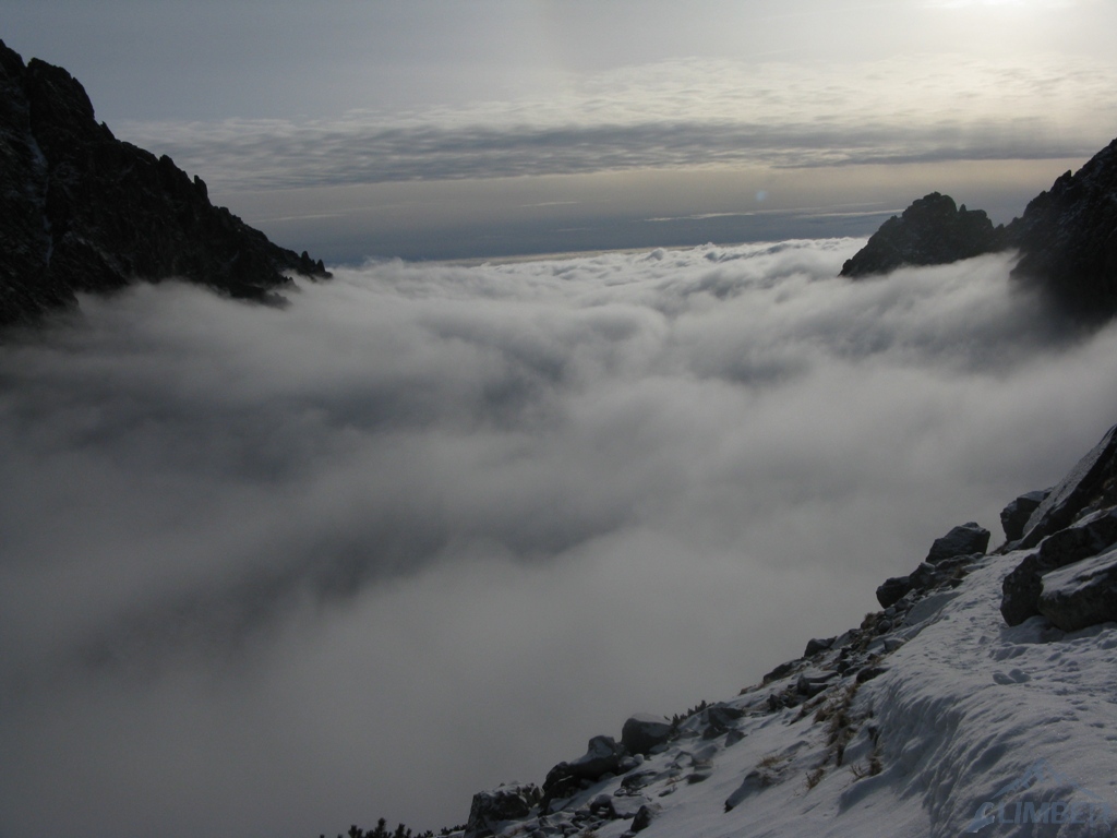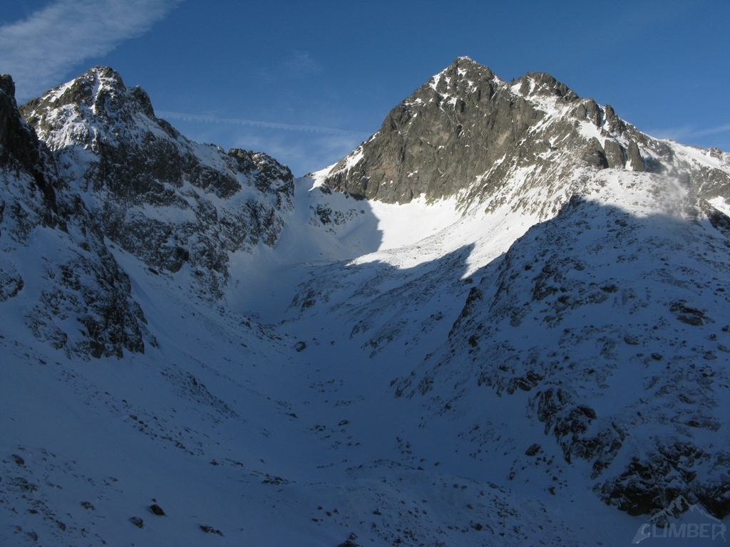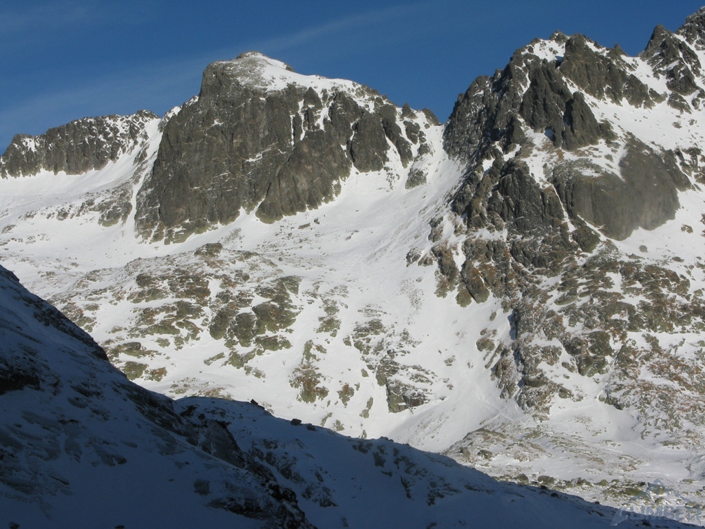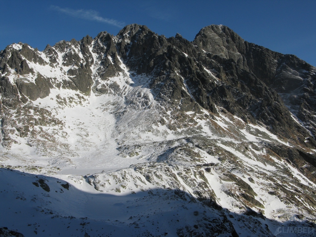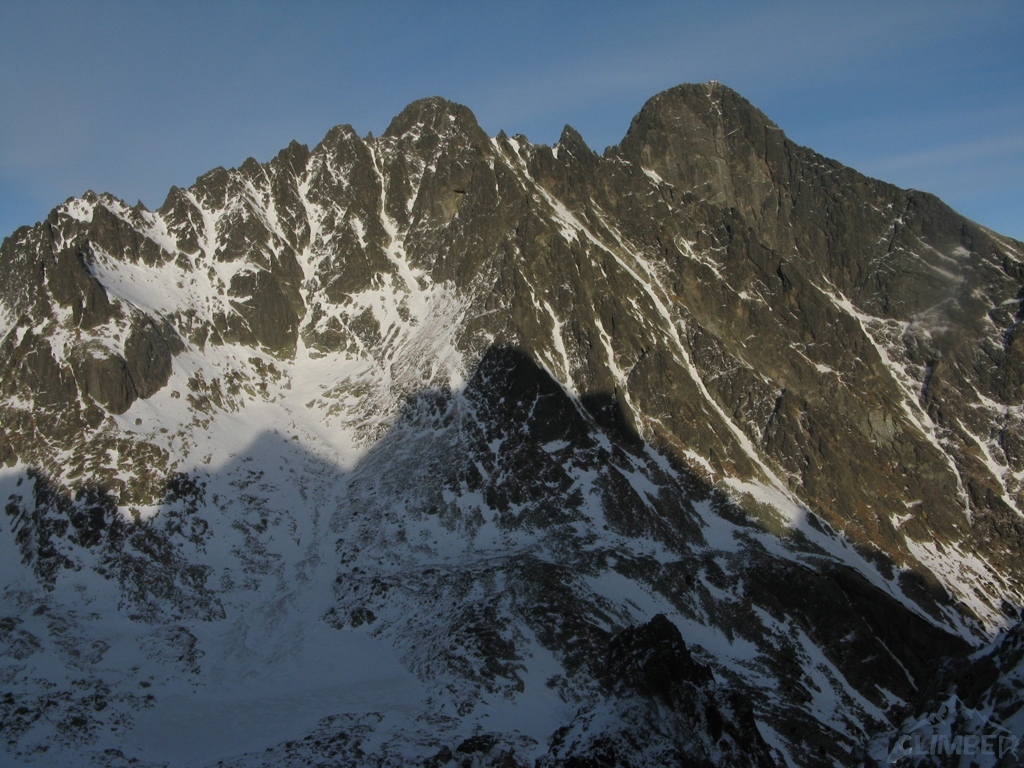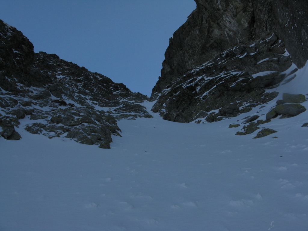 Następnego dnia po wejściu na Baranie Rogi ponownie podchodzimy do Terinki i atakujemy Pośrednią Grań. Niestety warunki śniegowe są bardzo złe - mnóstwo czasu zajmuje nam dotarcie na przełęcz za Żółtą Ścianą, a następnie przejście krótkiej grani doprowadzającej do Ławki Doubkego. Ta okazuje się mocno zabita śniegiem więc w końcu odpuszczamy dalszą walkę i zaliczamy odwrót.