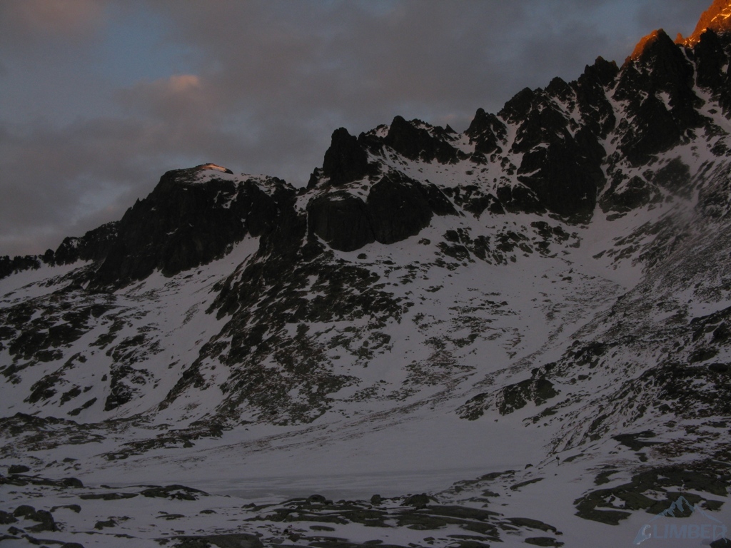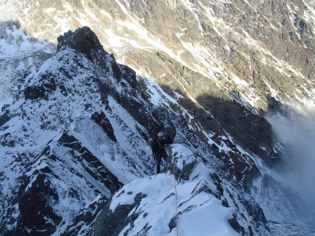 Dwudniowy pobyt w Dolinie Stawów Spiskich. Pierwszego dnia Baranie Rogi na różne sposoby (jeden kolega przez B. Przełęcz, drugi Drabiną, ja obok granią). W Terym spotykam dawno niewidzianego Tomixa i poznaję Farixa :) Nocleg w sympatycznej Chacie Bilikovej. Drugi dzień całodniowa walka z zupełnie nieprzedeptaną i ciężką w tych warunkach drogą na Pośrednią Grań, wycof 100 metrów pod szczytem i powrót po ciemku z problematyczną asekuracją.