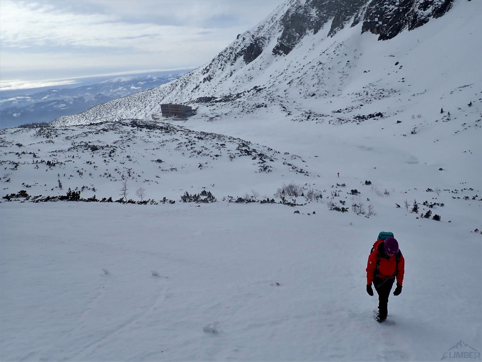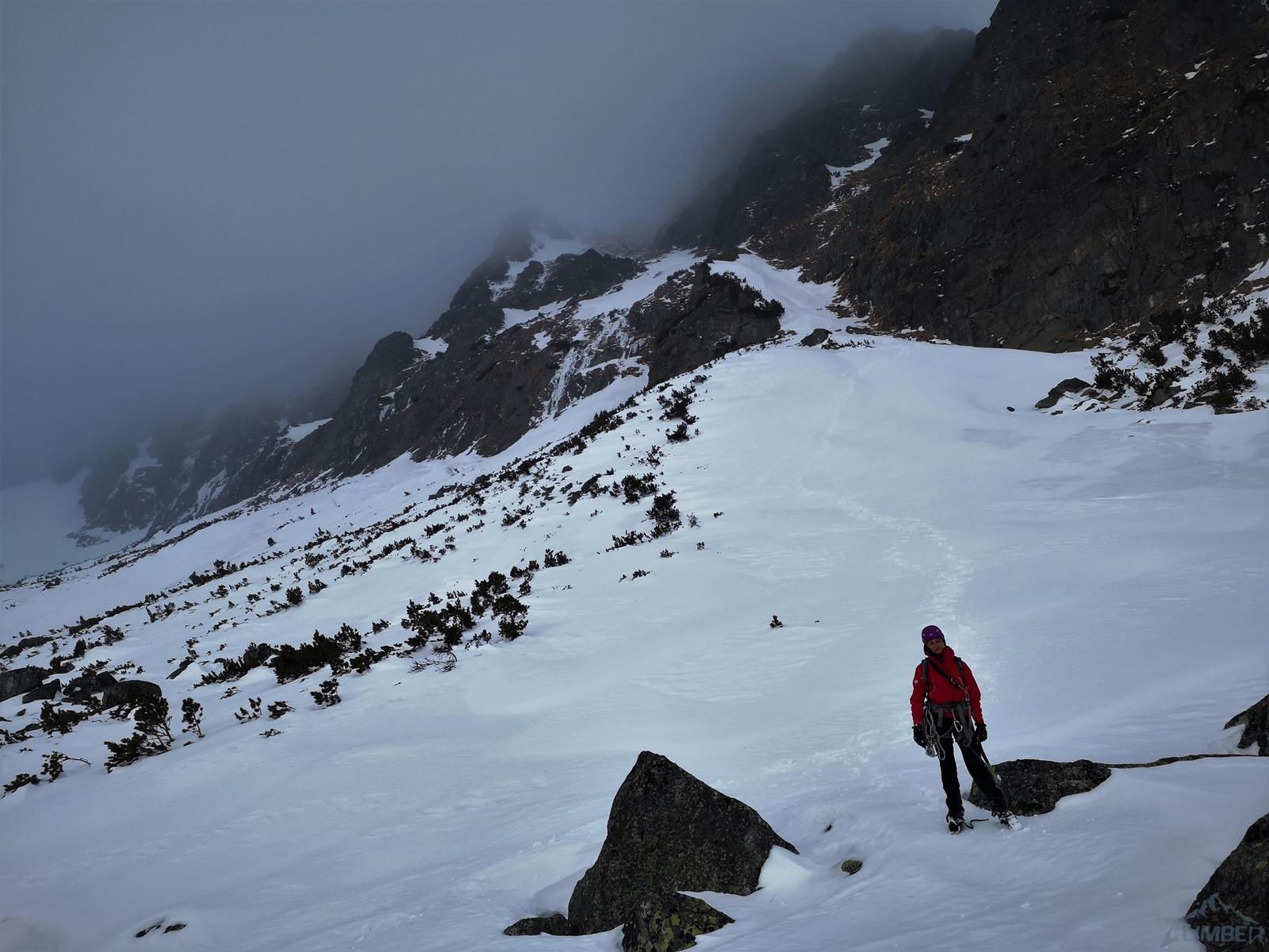 Dogrywka po obozie – w sobotę opuszczamy Morskie Oko i przenosimy się do Doliny Wielickiej. Następnego dnia tuż po wschodzie Słońca podchodzimy w kierunku upatrzonego celu - Filara Stanisławskiego na Gerlachu. Niestety pogoda weryfikuje plany – mocno wieje i niebo pełno jest ciężkich chmur, przejście drogi w tych warunkach byłoby wymagające i nieprzyjemne, a widoków nie byłoby żadnych. Decydujemy się więc na cel rezerwowy - drogę Birkenmajera na Wielickiej Baszcie – wygląda na wystarczająco wylaną lodem, no i podejście jest bardzo krótkie.