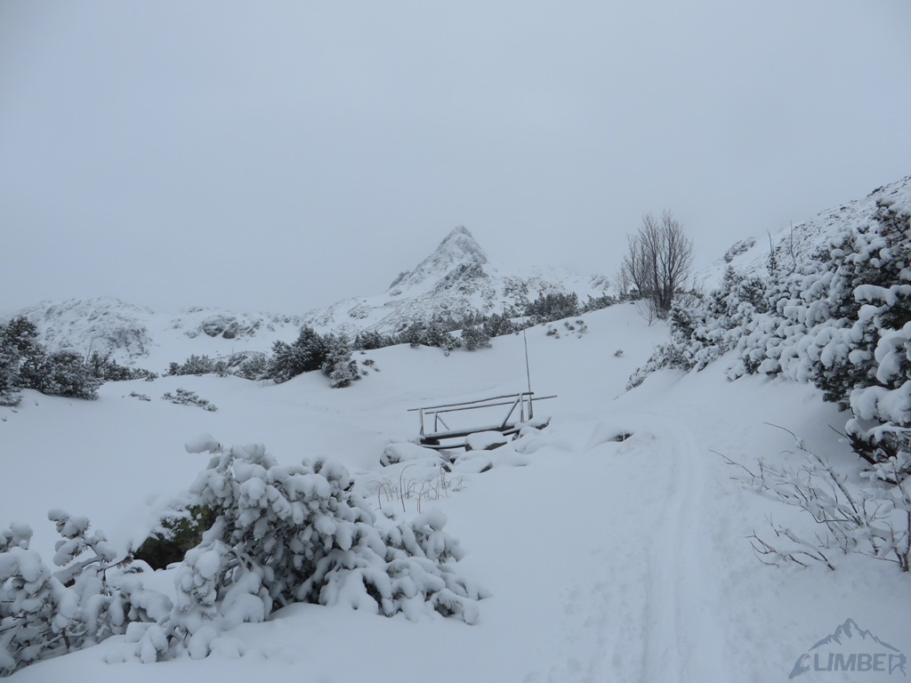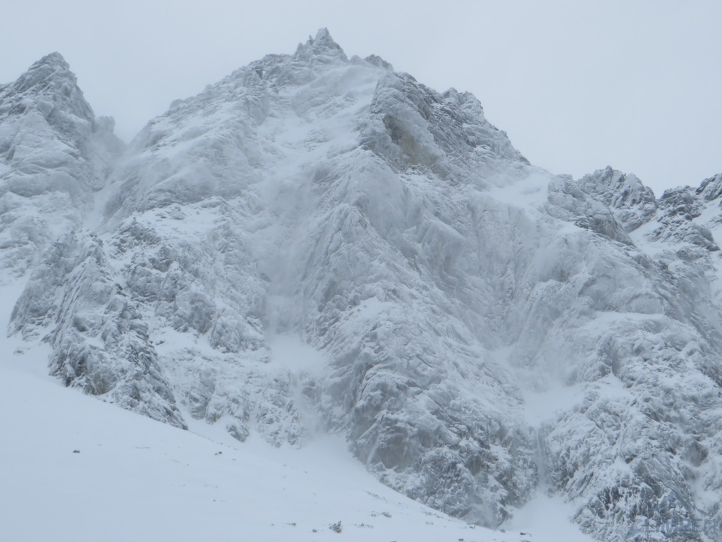 Środa niestety wita nas opadem śniegu i mocnym wiatrem – nici z planów na wspinanie. Zabieram więc tury i postanawiam podejść do Szatanie Dolinki by obejrzeć drogę planowaną na weekend – Motykę na Wyżnią Basztową Przełęcz. Niestety droga jest w stanie nie dającym szans na przejście. Podchodzę dalej pod Hińczowe Stawy jednak dalsze opady i wiatr odbierają mi ochotę na zapędzanie się wyżej.