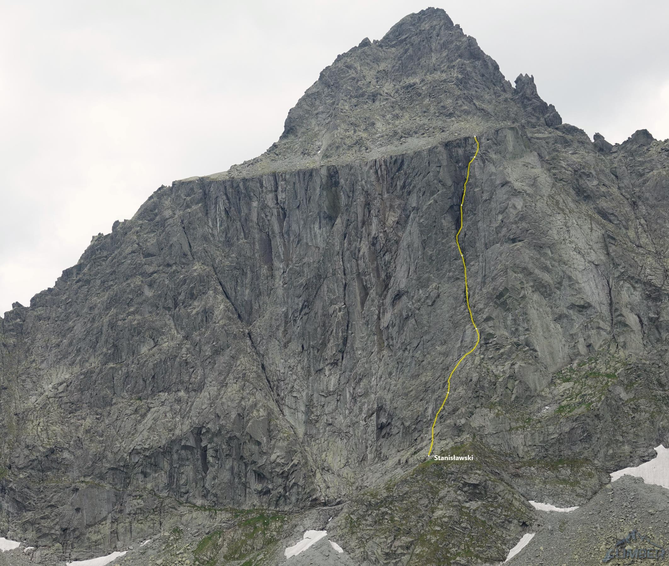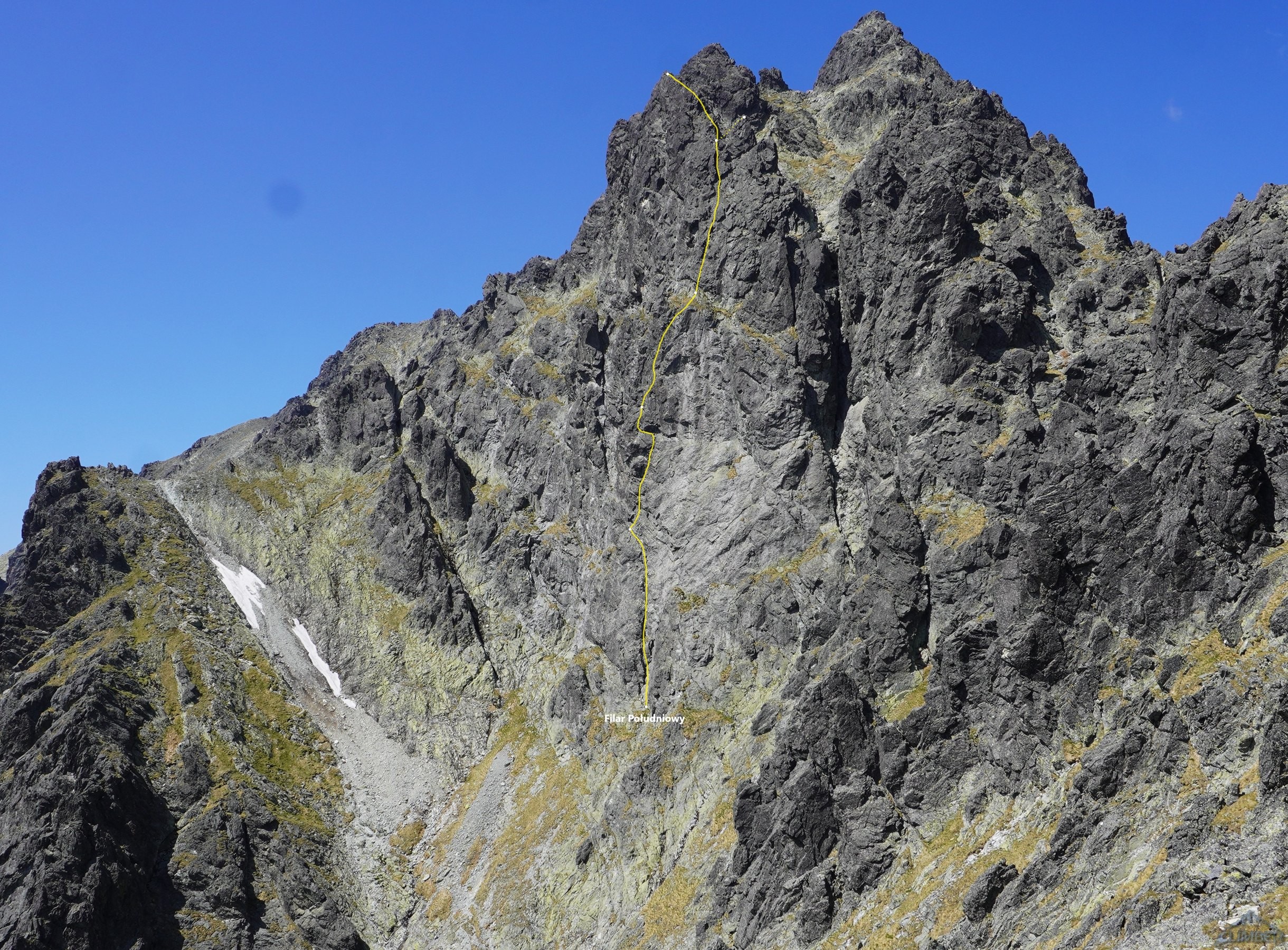 POŚREDNI GERLACH (E), słow. GERLACHOVSKÁ VEŽA - duża ściana, na której latem powtarzana jest w dzisiejszych czasach właściwie tylko jedna, za to bardzo ładna i ciekawa droga - Filar Stanisławskiego (V R2 750m).