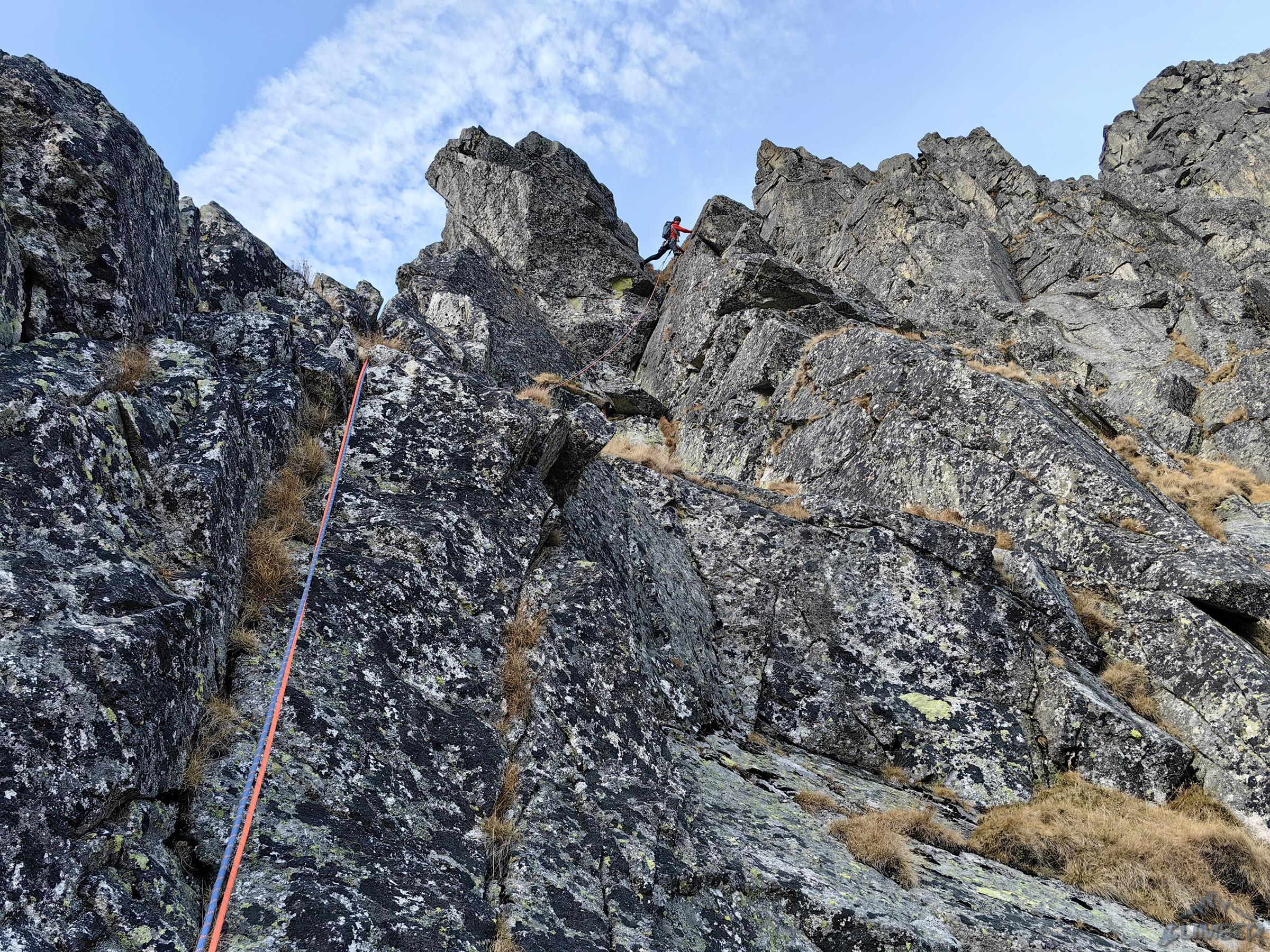 KOŃCZYSTA (E) – wybierając się na widokową Grań Kończystej warto dojść do niej Filarem Drąga (IV) – to jedna z ładniejszych nietrudnych kombinacji w Tatrach.