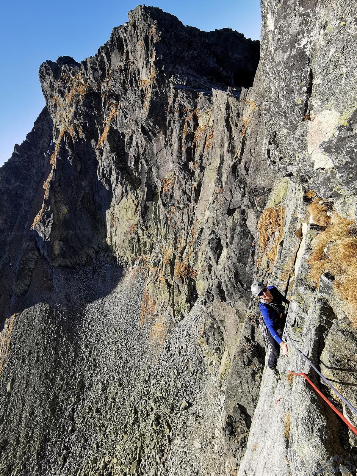 Wrzesień to trzy piękne weekendy i trzy przejścia, do których powtarzania szczególnie zachęcam – piękne Patagonské léto (VII+/VIII-, wariant ) na Łomnicy z Dawidem, historyczny Kupczyk na Gerlachu (ok. VI+ ponieważ przypadkiem przechodzimy klasycznie odcinek A3 z Drlik-Orolin, tow. Ania, drugi zespół Michał i Szymon) oraz świetna kombinacja historyczno-sportowa na Galerii Osterwy składająca się z dwóch linii – Trojkráľovych limb (VII) i Oceľovej/Halkovej (VIII), obie robione z Szymonem. Później niestety nadchodzi przedwczesna zima i nieustające niże, trwające aż do początku listopada. Tydzień pięknej pogody pozwala wtedy na dogrywkę na suchych i słonecznych ścianach, wraz z Anią dorzucamy więc jeszcze pięć dróg - sezon definitywnie zamykamy na Zamarłej dwoma z nich, w tym pięknym Mu-mu-mu (VII+/VIII- 1xAF).