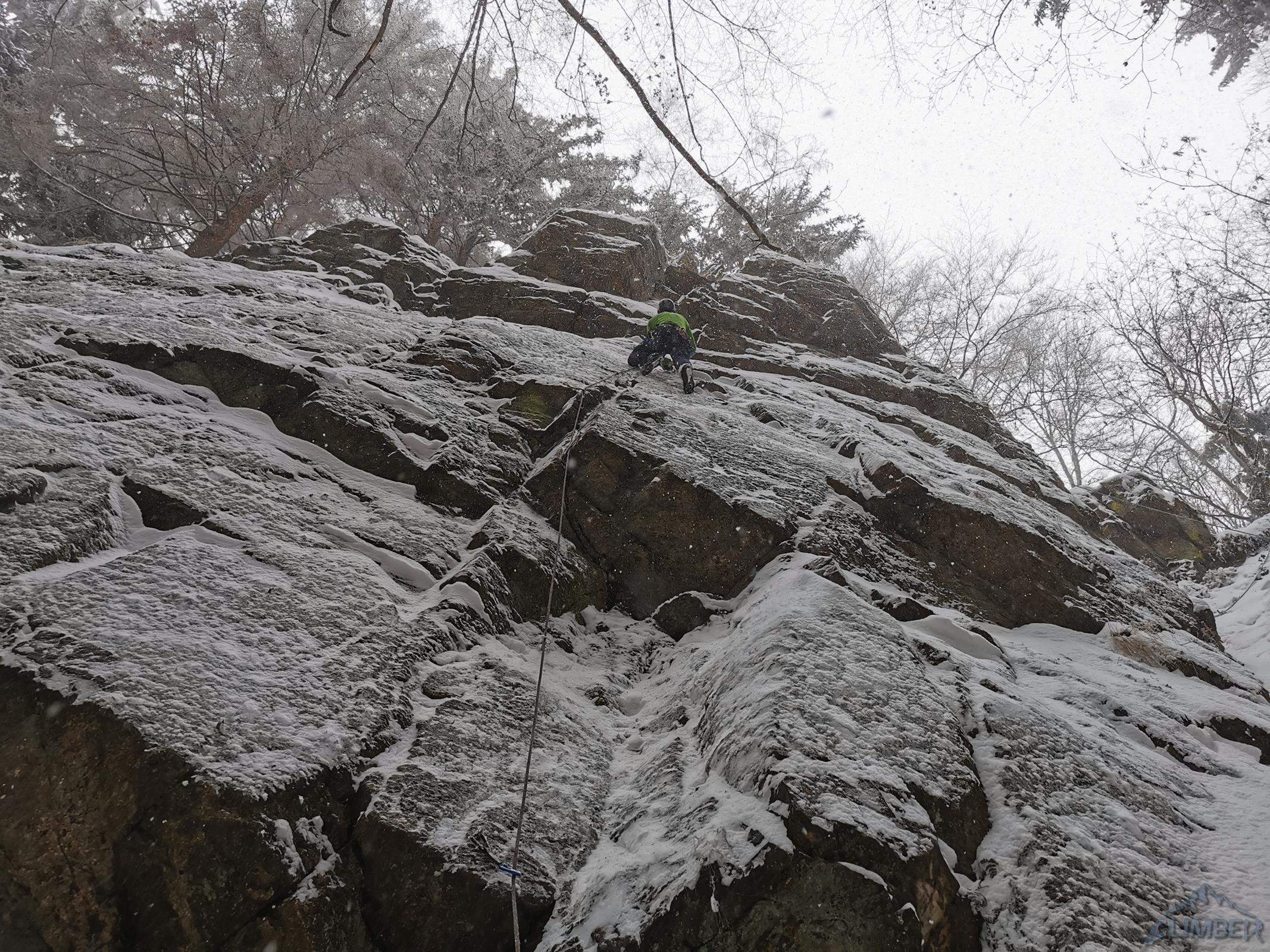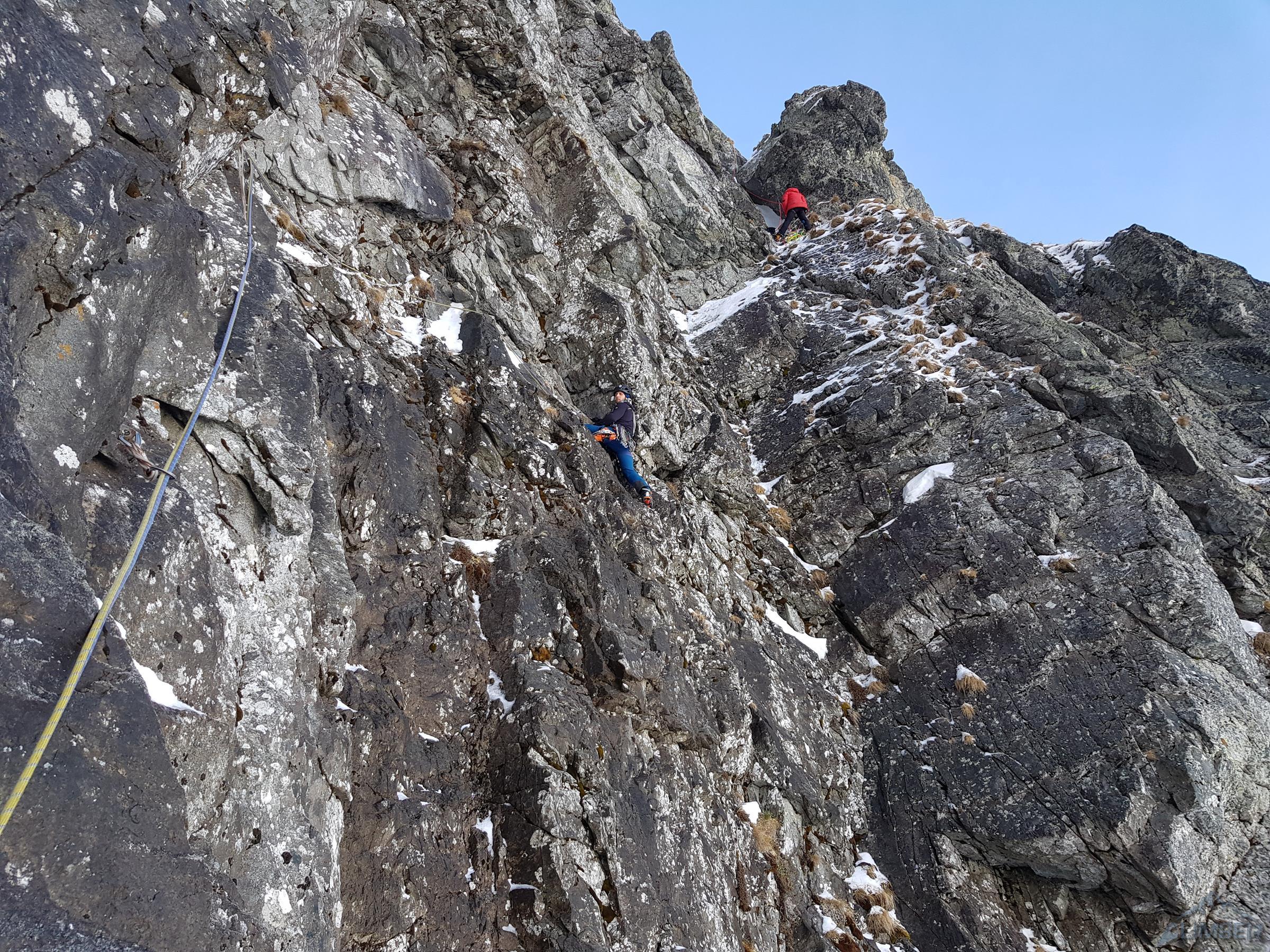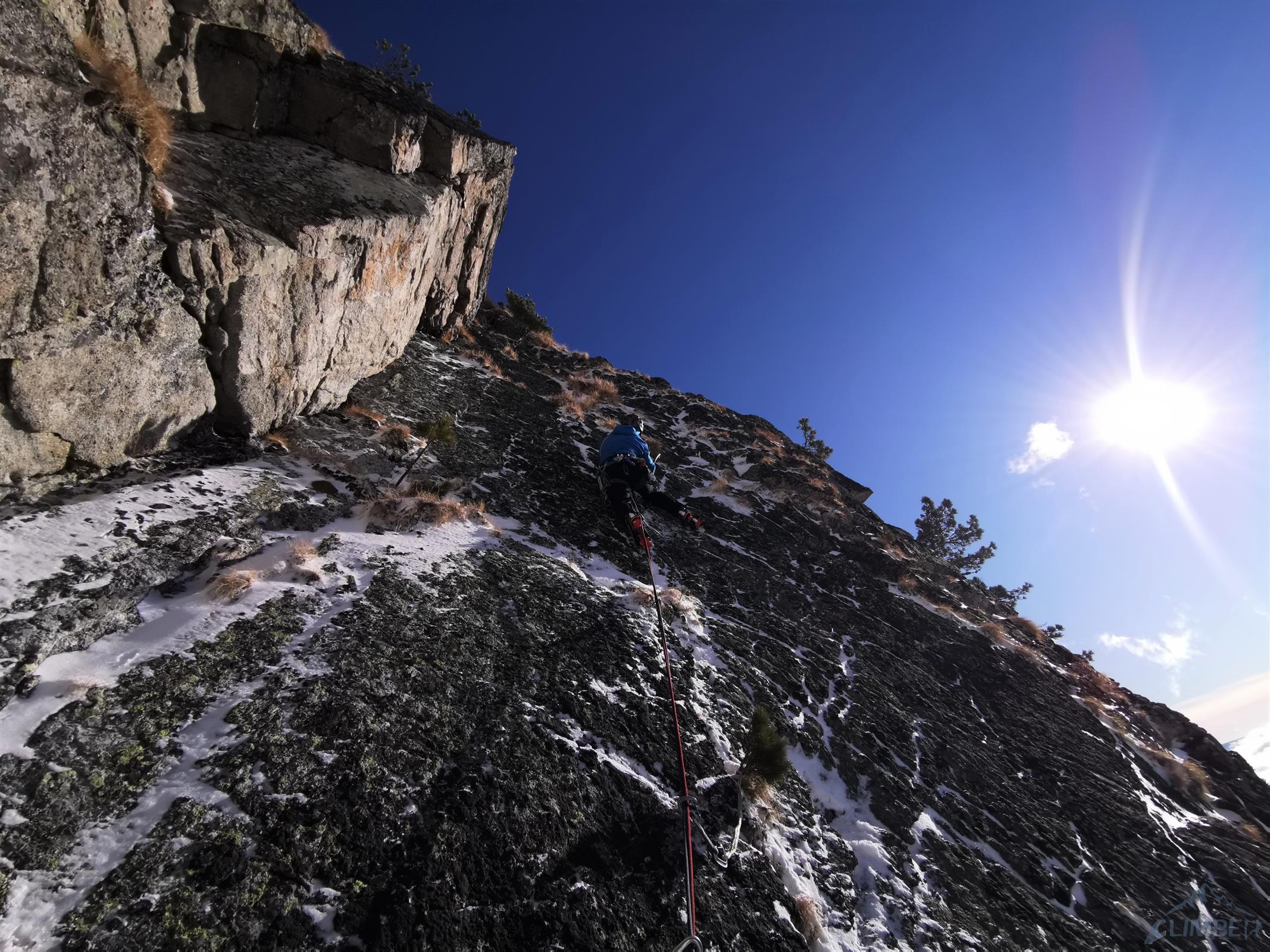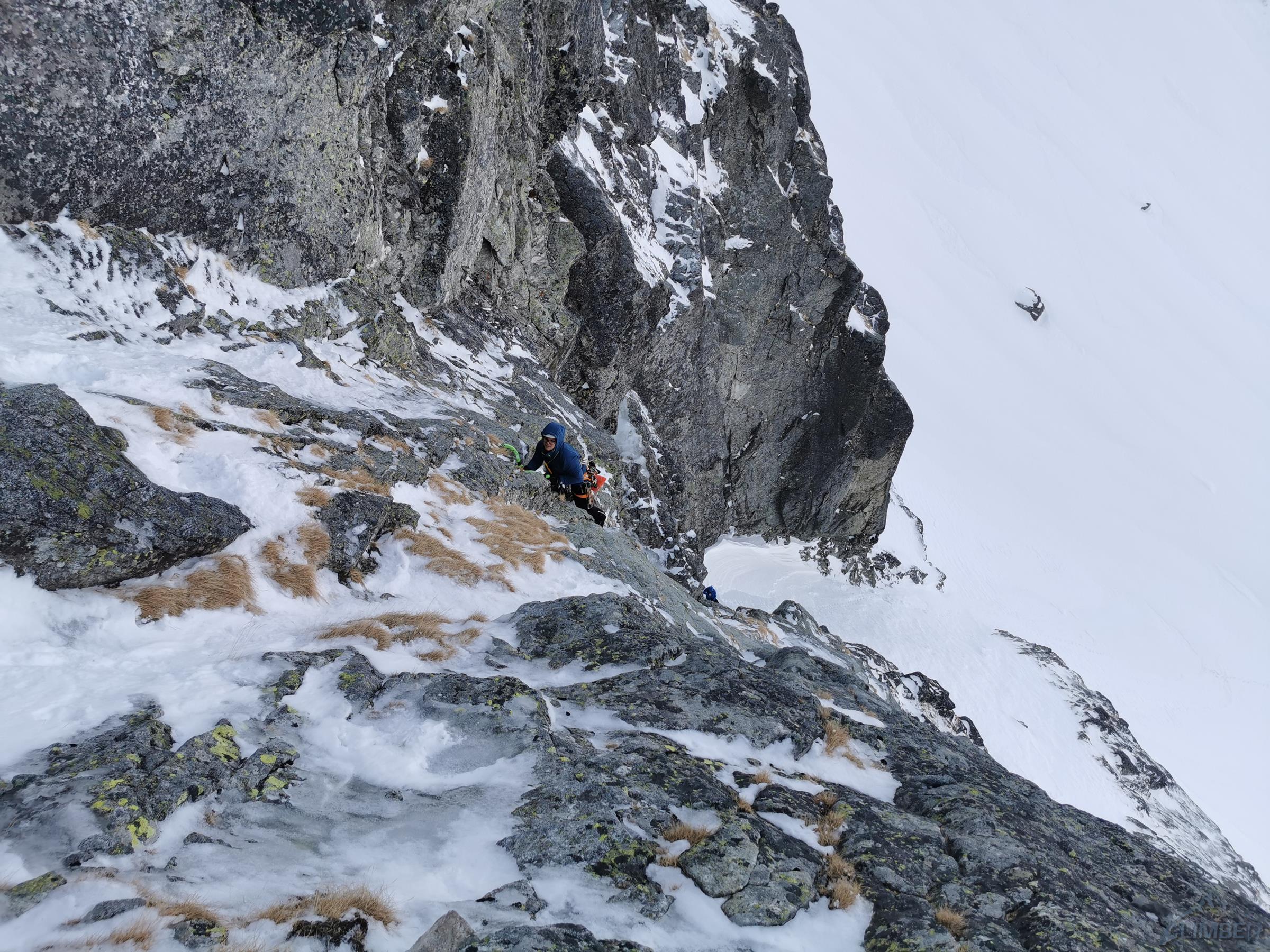 STYCZEŃ. Po powrocie trzeba ponownie wdziać raki i wrócić z Michałem w Tatry – warunki jednak kiepskie, pozostaje zadowolić się jedynie niezbyt ciekawym wariantem Filara Tivadara (ok. M5 OS) na Tępej i dwoma krótkim liniami na Ścianie pod Skokiem – mikstowym Svrcek-Styk (M5+ OS) i skalnym Covid-19 (M6+ RP). Pod koniec miesiąca mrozi, szukamy więc z Słońca i trafiamy w końcu na coś ładnego – drogę Mączki (M6 OS) na Wielkiej Wielickiej Strażnicy.