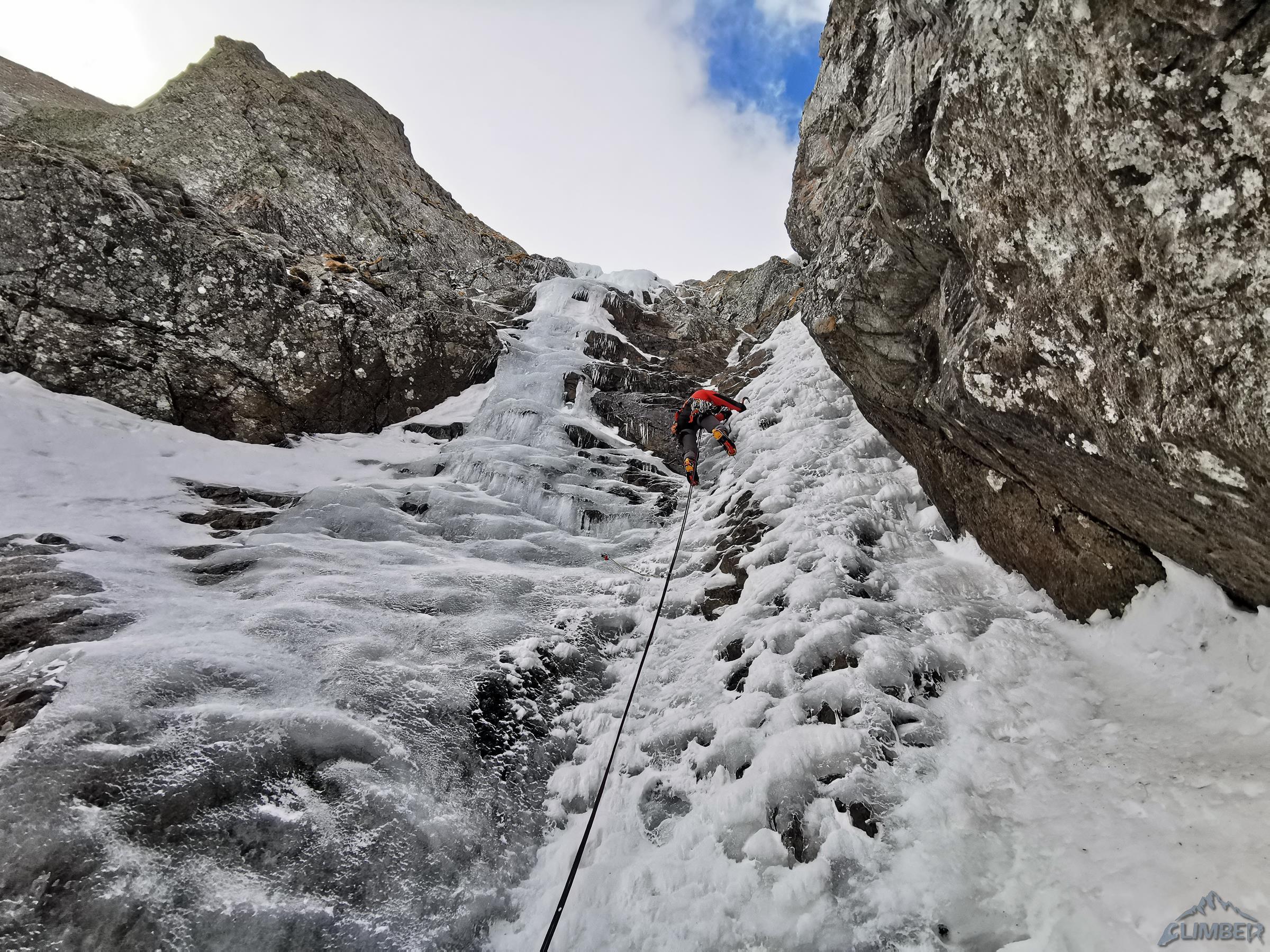 - Chlapcom z Pumori (M5+ OS), Niżnia Królewska Baszta i Lodospad Veverkov: kolejna godna polecenia droga nad Veverką – całkiem sporo wspinania jak na niewielką długość.