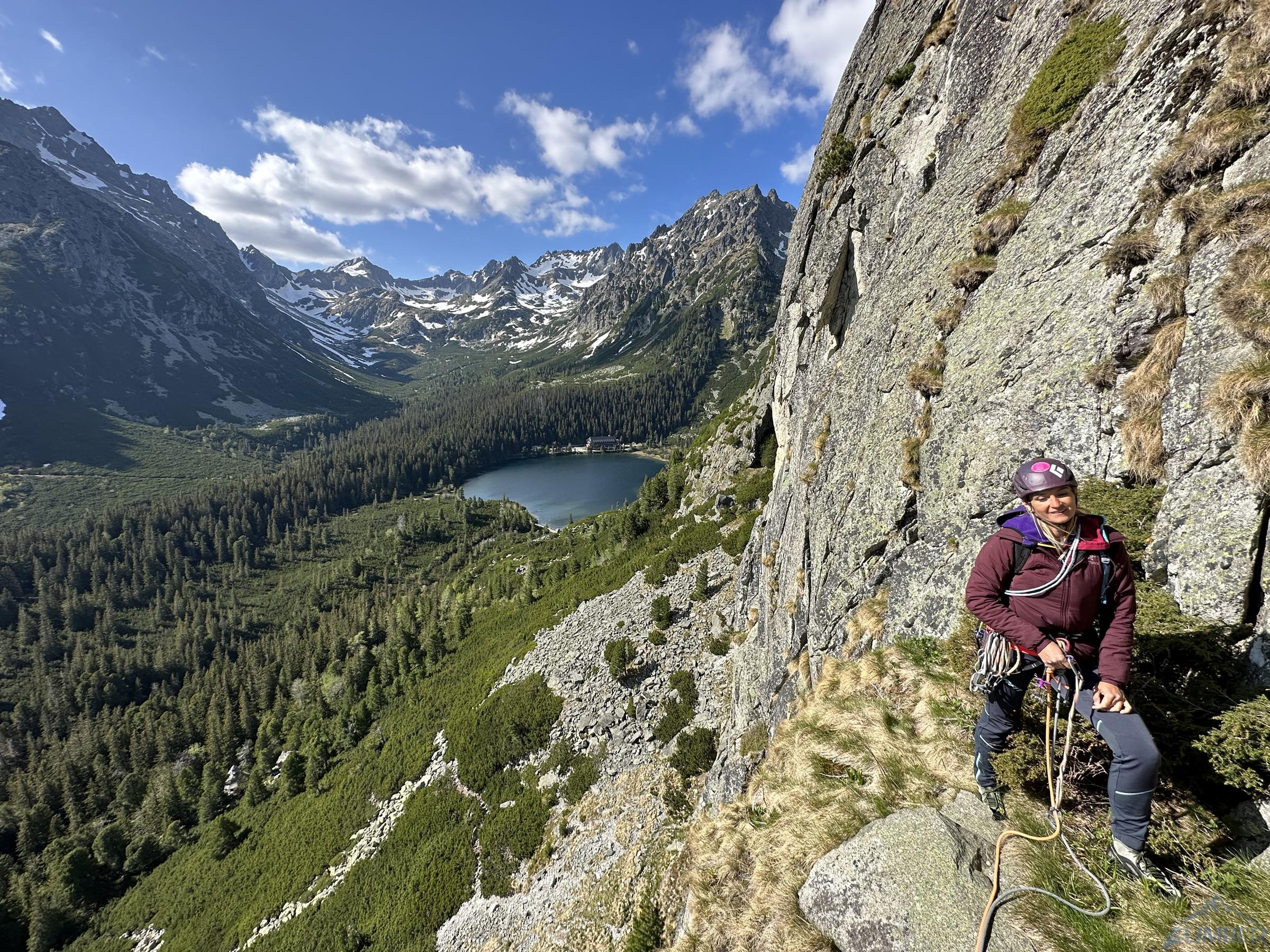 Mając w planach wspinanie na Wołowej w niedzielę, nad Popradzkim Stawem pojawiamy się dzień wcześniej by rozruszać się na Galerii Osterwy. Wybór pada na jedną ze sportowych „ósemek”, której brakuje mi do prawie już kompletnej kolekcji. Slepá ulička (VIII-) nie jest może tak piękna jak Oceľová niť czy Správny čas, z Carpe Diem może już jednak urodą konkurować. Do przejścia są trzy dość równe wyciągi z pełną asekuracją i jeden tradowy - wyraźnie łatwiejszy i pokrywający się z historyczną drogą Drlík-Stejskal.