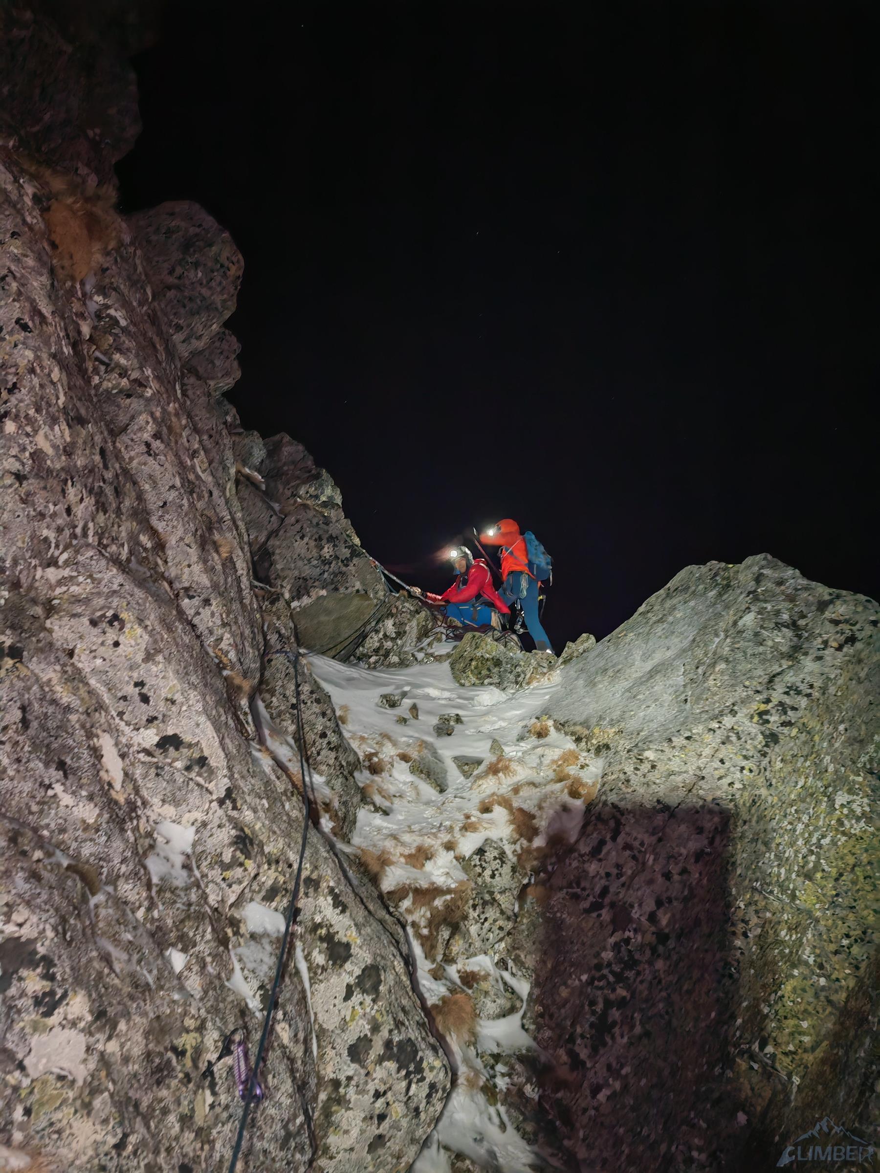 Po powrocie ze wspinania w ciepłym wapieniu na Sardynii ciężko przestawić się na tatrzańskie zimowe ściany, połowa stycznia to już jednak najwyższa pora 😊. Wraz Michałem i Szymonem wybieram się więc na weekend do Doliny Kieżmarskiej by schować się przed odwilżą w cieniu północnej ściany Małego Kieżmarskiego Szczytu, oferującej zaskakująco dobre warunki. Pierwszego dnia towarzyszę rozwspinanym już kolegom na drodze Elegancia (M7) na Wielkiej Złotej Kazalnicy. Oferuje ona całkiem sporo ładnego i zajmującego wspinania – po najbardziej wymagającym i ciągowym pierwszym wyciągu do przejścia mamy jeszcze dwa mocne, czysto drytoolowe odcinki oraz kilka łatwiejszych o mikstowym charakterze.