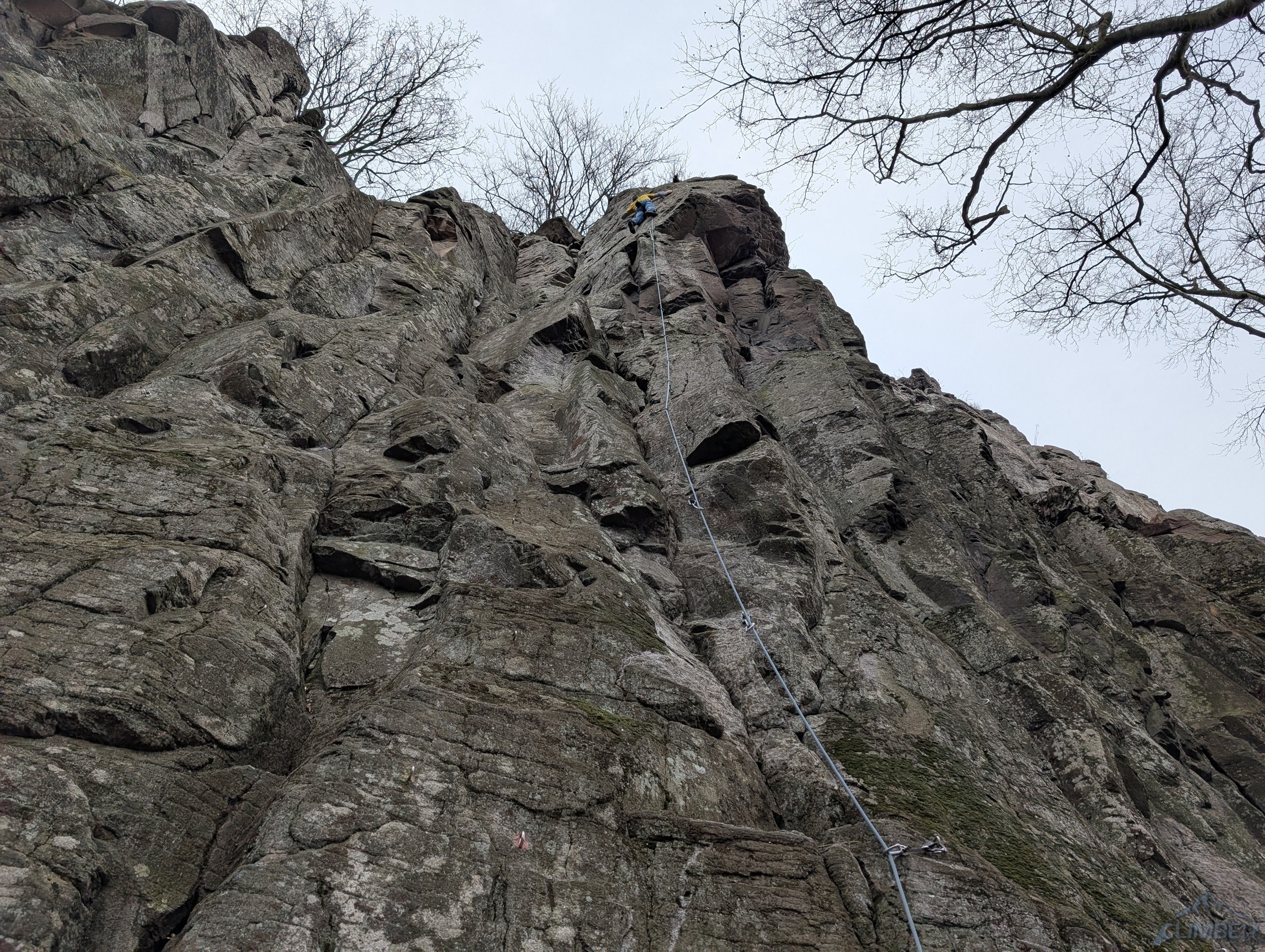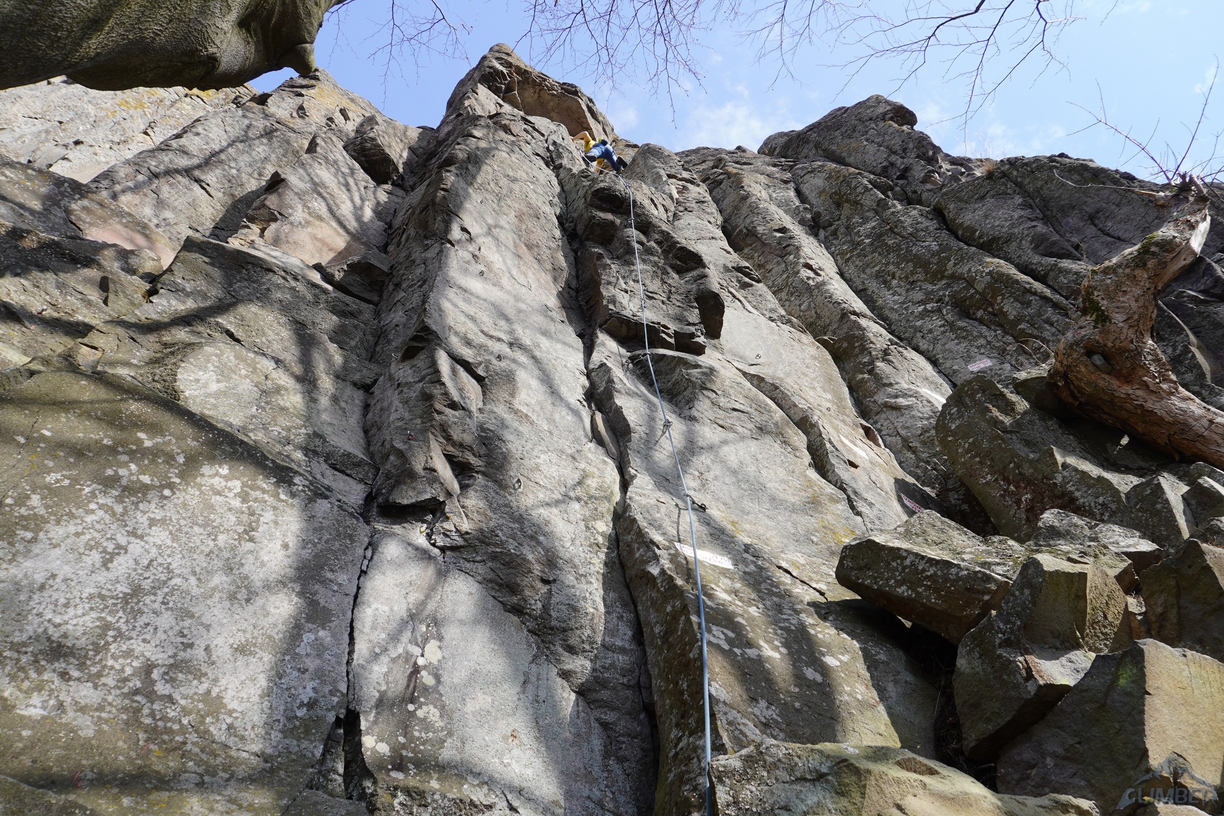 Drogi opisane są aż za dobrze (patrz zdjęcia) – znakowanie widać już z kilkudziesięciu metrów co niestety szpeci skałę… Niektóre linie są nieco porośnięte co jednak za bardzo nie przeszkadza we wspinaniu biorąc pod uwagę bardzo dobre tarcie, które przydaje się biorąc pod uwagę wymagający charakter wspinania po małych chwytach oraz technicznych kantach i rysach. Jak wspominałem nadal pojawiają się nowe drogi – nawet podczas naszej wizyty trwały prace ekiperskie, materiały na Internecie (np. wykaz dróg TUTAJ) będą już więc nieaktualne – najlepiej pochodzić pod skałą i wybierać co nam się podoba 😊.
