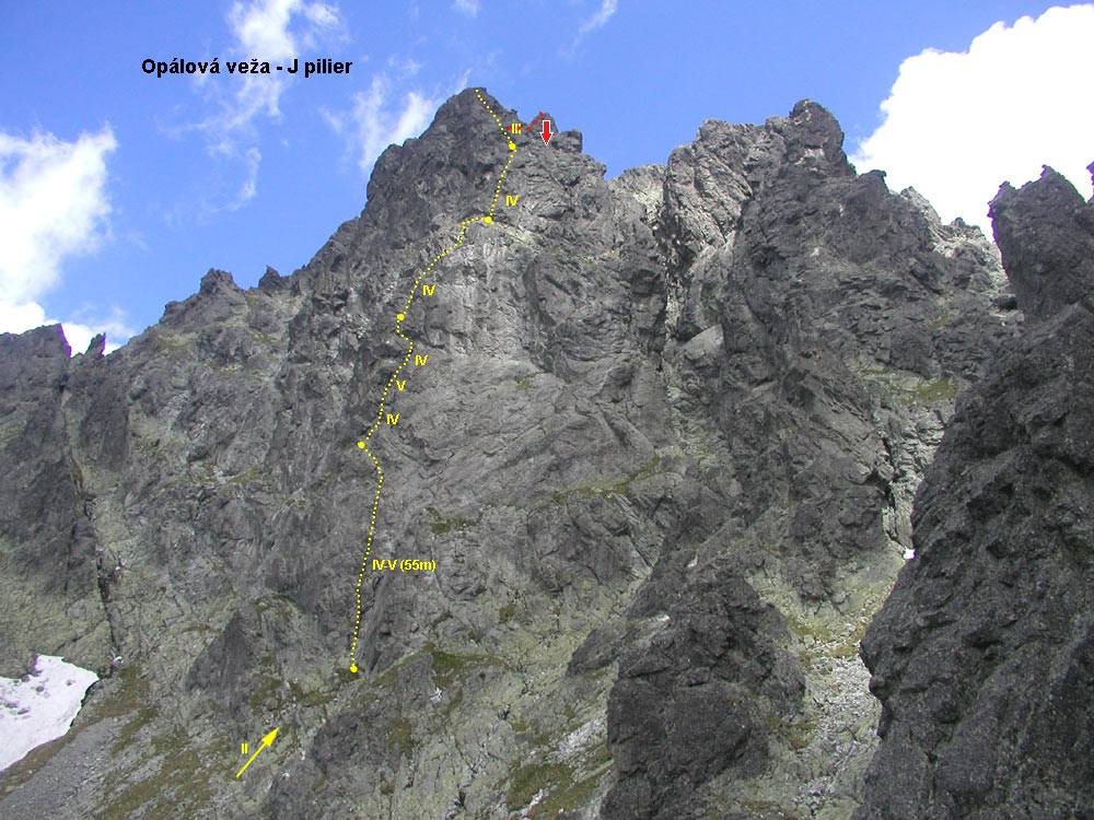 Po podejściu ścieżką wzdłuż Kwietnikowego Żlebu odbijamy w prawo pod Filar Podufałej Baszty - na miejscu okazuje się jednak że jakość skały nie zachęca do wspinania, odpuszczamy wiec obawiając się że braknie czasu na kolejne (ciekawsze) drogi. Wracamy się więc do ścieżki trawersującej między Podufałymi Mnichami do Granackiego Żlebu (patrz załączona mapa masywu) i podchodzimy pod Podufałą Turnię „standardowo”. Najładniejsza droga na ścianie zrobiona (Francouzský polibek VII-, relacja TUTAJ – polecam!), tym razem zgodnie z planem czas na Filar Południowy (V), dość popularny wśród Słowaków. Linia okazuje się ciekawa i zróżnicowana, trzeba się całkiem sporo wspinać i sprawnie asekurować własnym sprzętem – stałych haków jest niewiele, za to na każdym stanowisku jest po jednym spicie.
