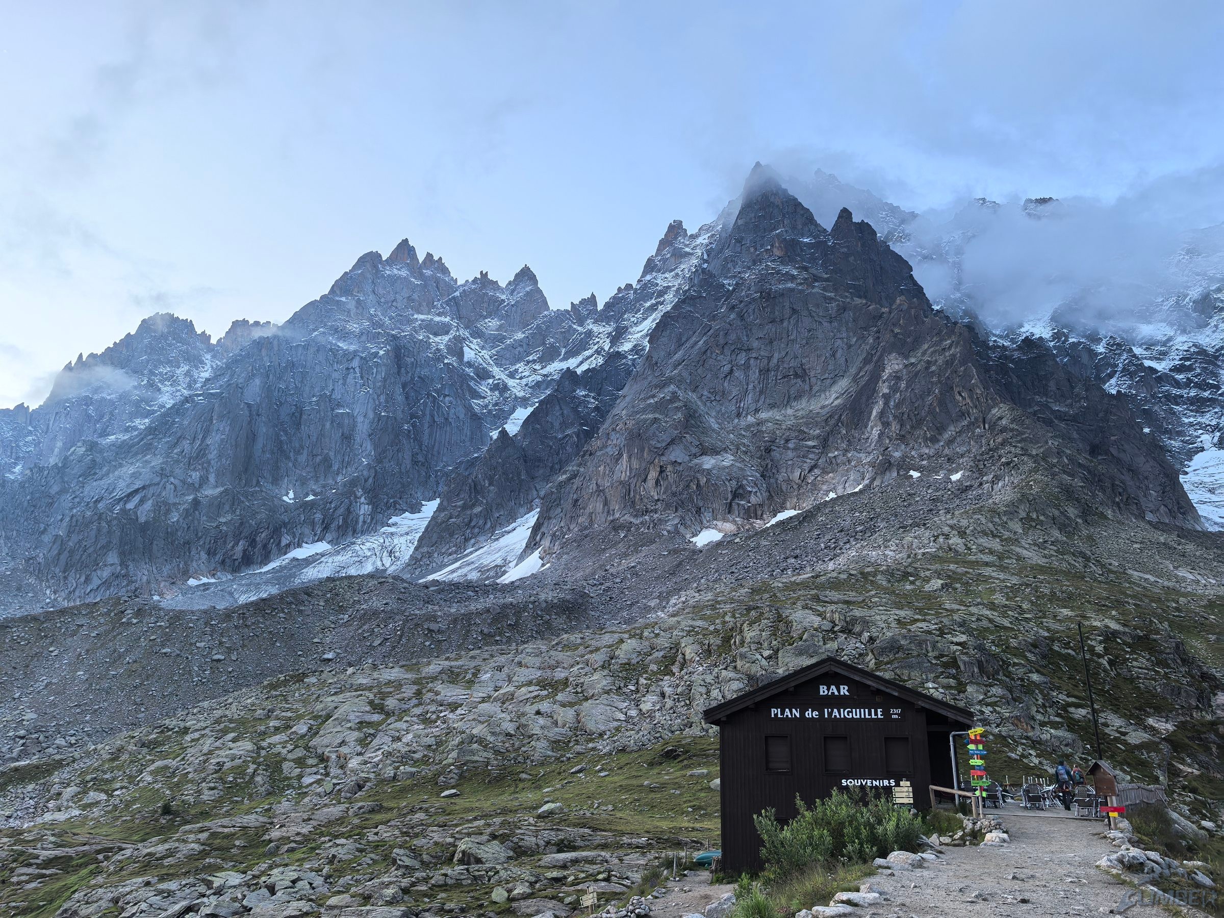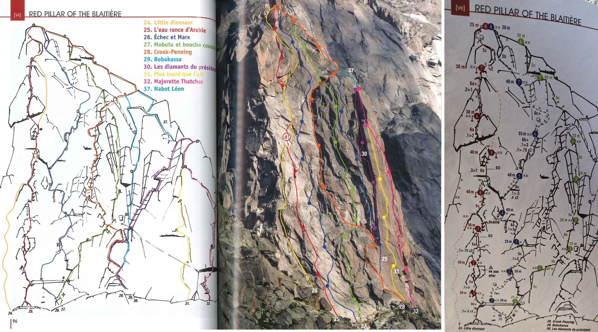 Po zrobieniu dwóch dróg w Ecrins czeka nas trudna decyzja czy zostać na miejscu (pewna pogoda) czy zaryzykować i przenieść się do Chamonix by spróbować któregoś z zaplanowanych przed wyjazdem głównych celów. Prognozy dają szansę więc jedziemy – w środę po dojściu pod Aiguille Peigne okazuje się niestety, że wszystko jest zlane a temperatura oscyluje koło zera. Nie poddajemy się jednak i przenosimy pod Aiguille Blaitiere – trudniejsze drogi nie rokują, płytowa L'eau Rance d'Arabie (6b+ 260m) już bardziej. Wspinanie jest świetne i zajmujące, niestety im wyżej tym gorzej z pogodą – chmury gęstnieją, robi się przeraźliwie zimno i wietrznie. Robimy co prawda kluczowe wyciągi ale drogi nie kończymy, wrzucam jednak opis bo kogoś może zachęcić do przejścia tej pięknej drogi.