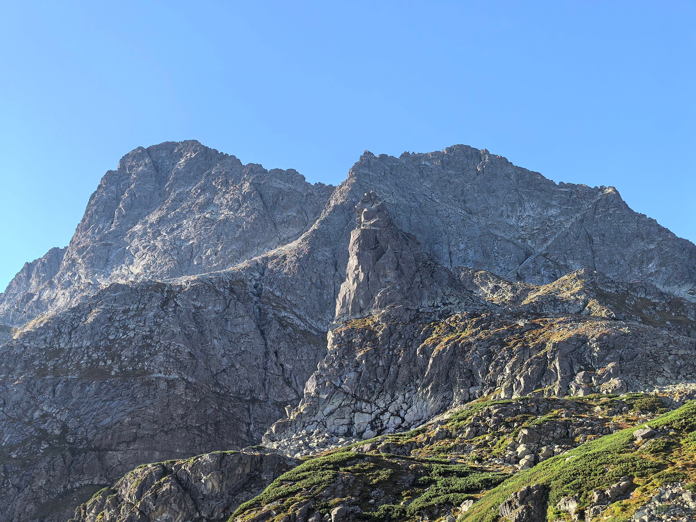 Po Alpach dobrze byłoby złapać trochę oddechu, ciężko jednak odmówić mocnemu koledze gdy proponuje zrobić coś fajnego w Tatrach 😉. Po sobotnich opadach i przy niepewnej niedzielnej pogodzie niewiele naszych potencjalnych celów rokuje, rozglądamy się więc za czymś krótkim, trudnym i biegnącym w płytach - Rokokowa Kokota (IX) na Mnichu spełnia wszystkie te warunki. Jedna z perełek słynnego tria Korczak-Marcisz-Opozda biegnie co prawda północną ścianą, latem Słońce świeci jednak na drogę o poranku – jest więc szansa że podeschnie. Gdy podchodzimy z Morskiego Oka w deszczu zaczynamy wątpić w nasz pomysł, po wyjściu z chmur okazuje się jednak że był to strzał w dziesiątkę – wyżej jest ciepło i słonecznie a na samym Mnichu zadziwiająco pusto.