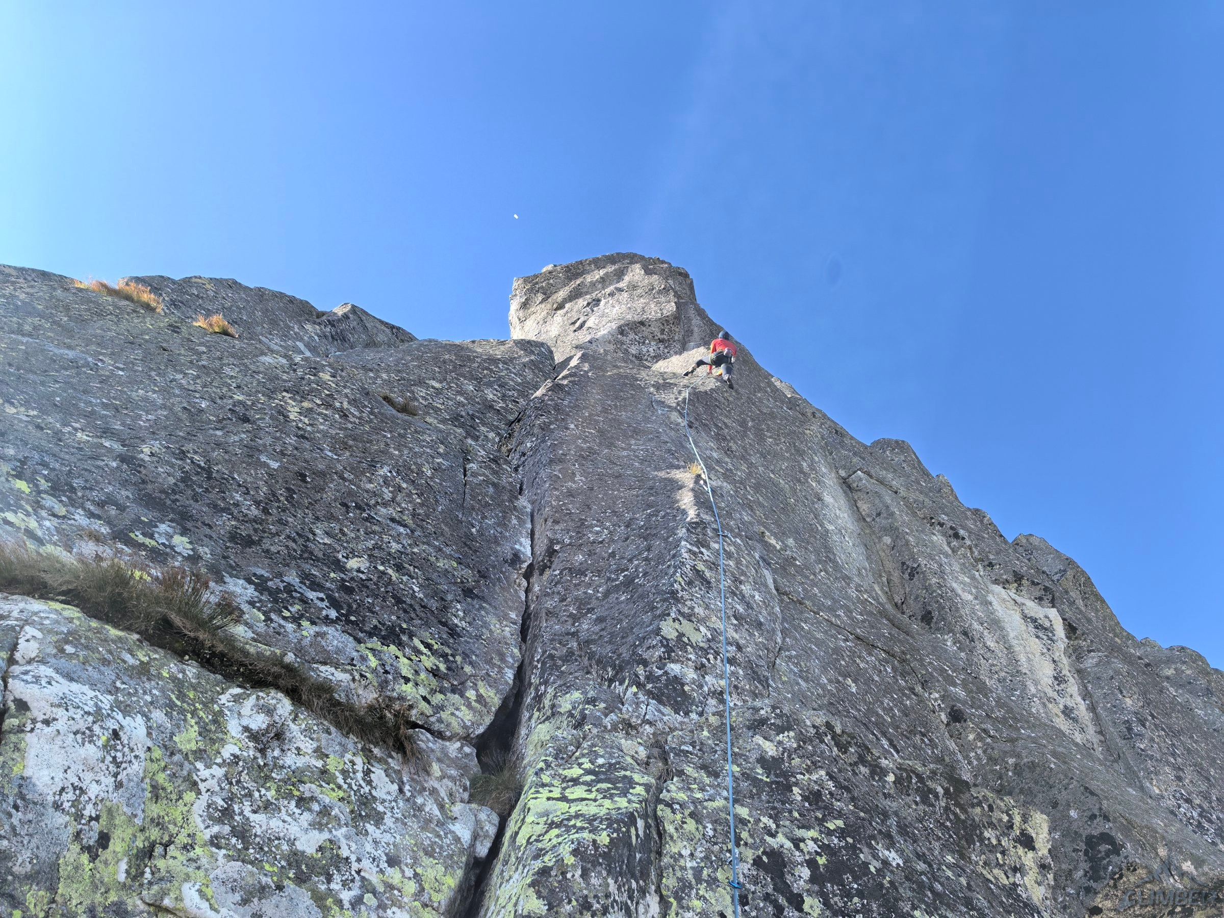 Kluczowy drugi (IX) odcinek jest kapitalny, sporo po krawądkach, góra przez okapiki, całość techniczno-siłowa z dużym ciągiem. Dysponujący sporym zapasem kolega sprawnie patentuje wszystkie fragmenty i przechodzi wyciąg klasycznie już w drugiej próbie choć potwierdza że to prawilne 7c. Myśląc o kolejnej drodze ja wstawiam się tylko raz i idziemy dalej – być może kiedyś przy okazji wybiorę się ponownie bo dla takiego wyciągu warto!