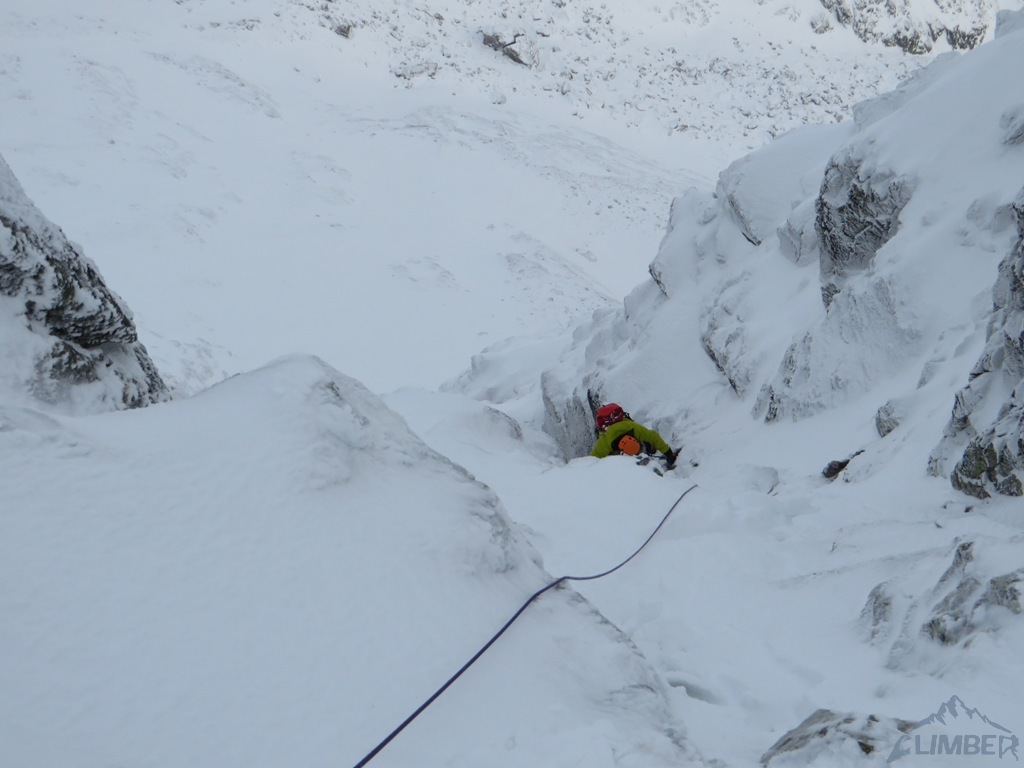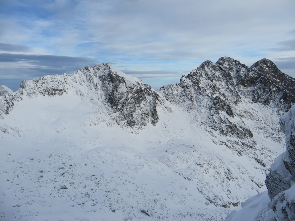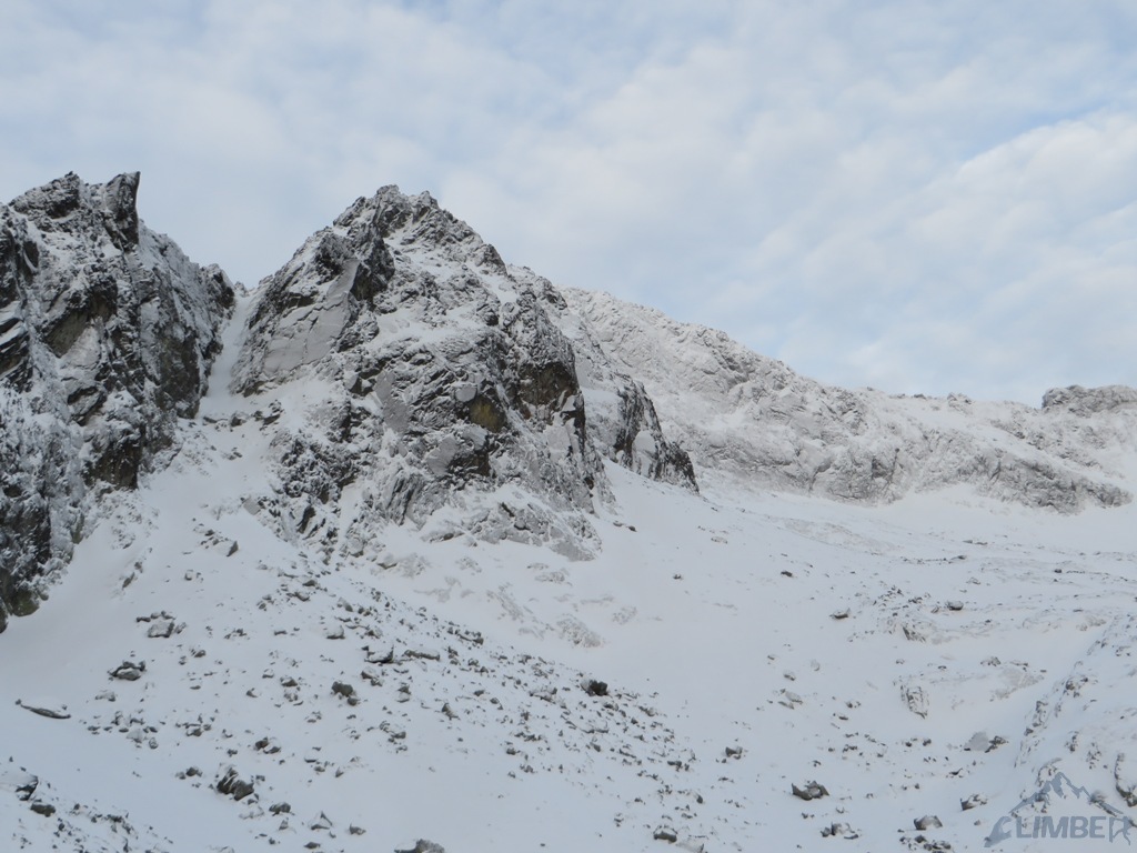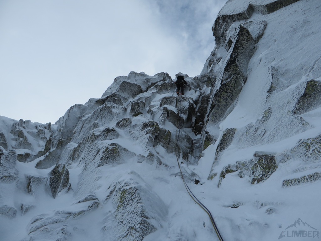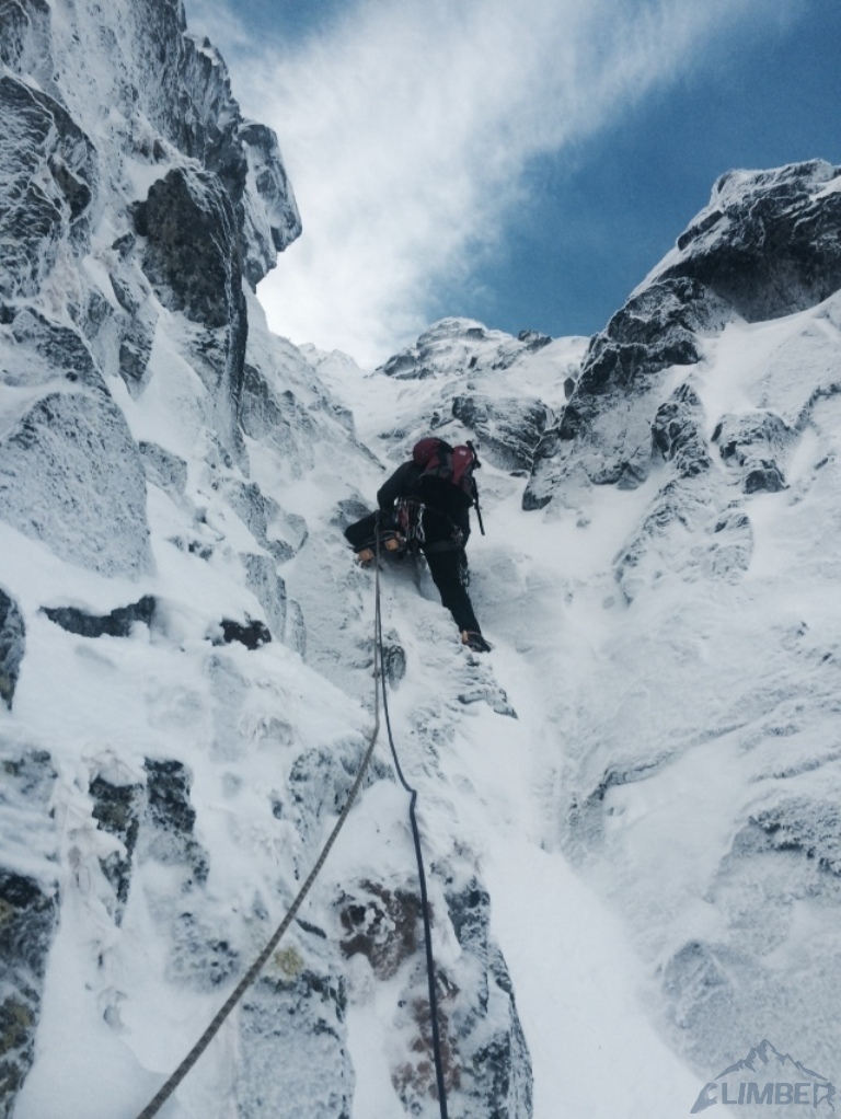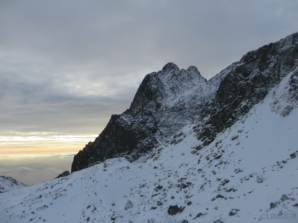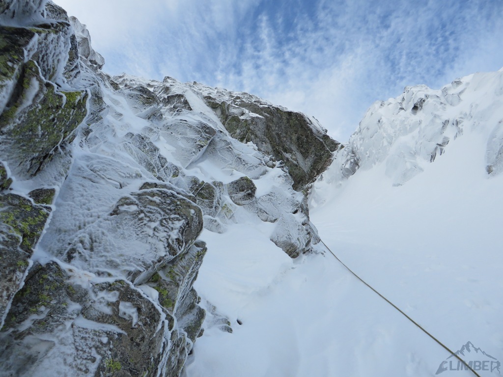 Zlatá ulička to ładna i ciekawa droga którą warto zrobić jeżeli interesują nas trudności ok. M4. Dużo śniegu w depresjach, co spowodowało spore opóźnienie. Na koniec ulewa z wichurą i obawy czy w tych warunkach po ciemku trafimy na Lodowa Przełęcz. Udało się ale tak wyczerpany dawno nie bylem. Akcja 14 godzin, zespół trójkowy. Droga dość ewidentna, głównie w śniegu z kilkoma miejscami skalnymi (w tym cruxową ścianką). Nie polecana przy niezwiązanym śniegu, szczególnie w górnej partii po trudnościach można się godzinami grzebać po pas.