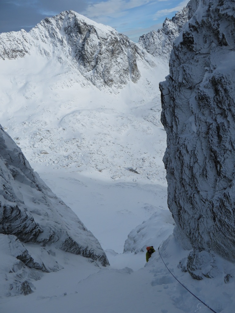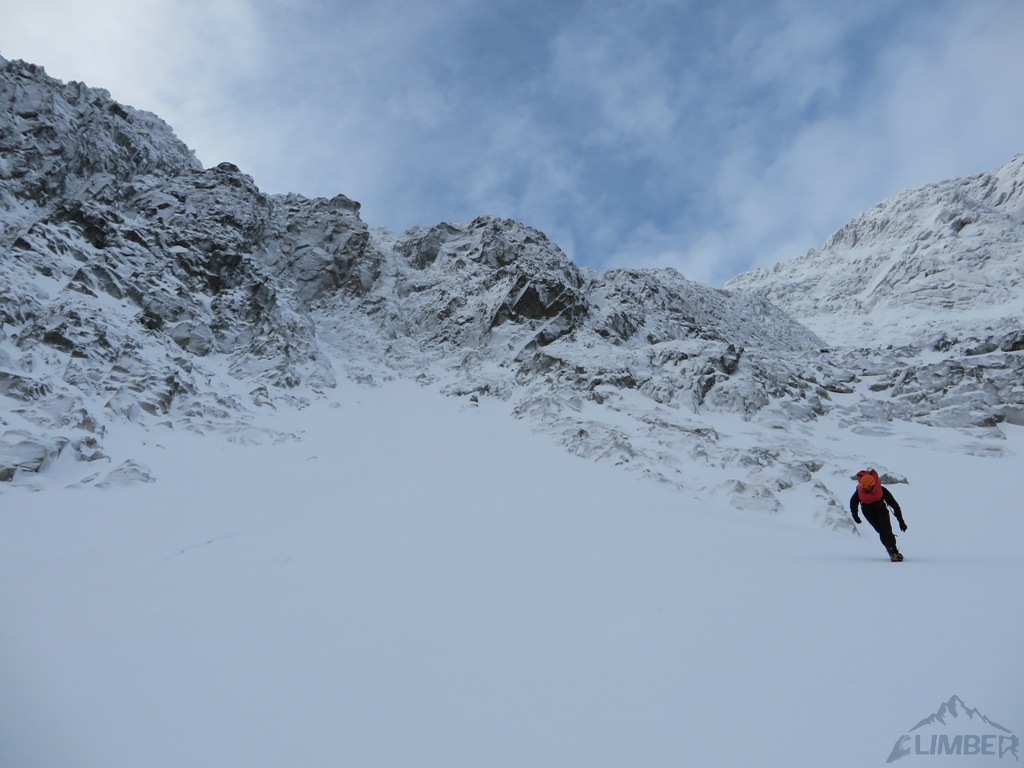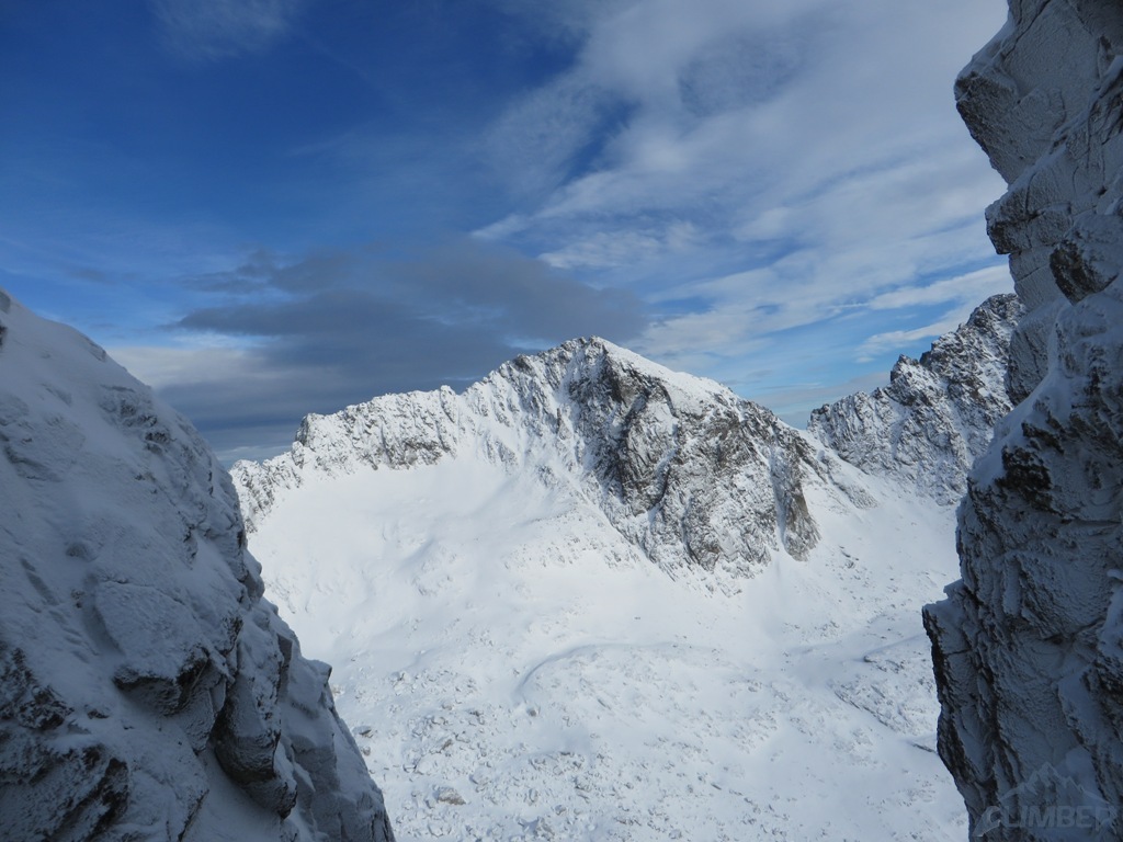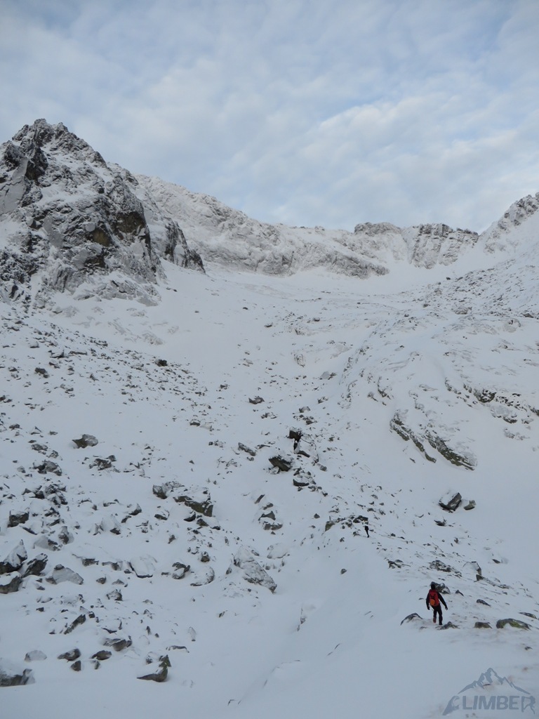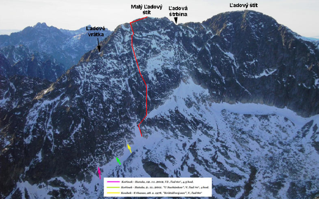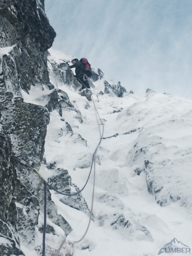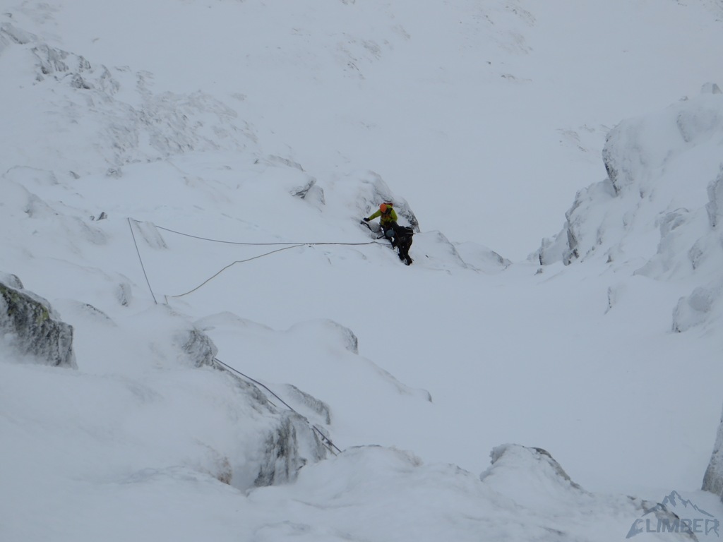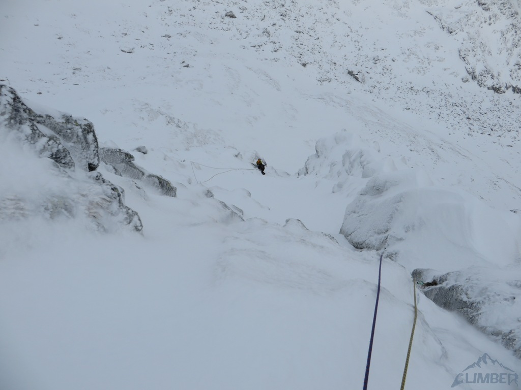 Zlatá ulička to ładna i ciekawa droga którą warto zrobić jeżeli interesują nas trudności ok. M4. Dużo śniegu w depresjach, co spowodowało spore opóźnienie. Na koniec ulewa z wichurą i obawy czy w tych warunkach po ciemku trafimy na Lodowa Przełęcz. Udało się ale tak wyczerpany dawno nie bylem. Akcja 14 godzin, zespół trójkowy. Droga dość ewidentna, głównie w śniegu z kilkoma miejscami skalnymi (w tym cruxową ścianką). Nie polecana przy niezwiązanym śniegu, szczególnie w górnej partii po trudnościach można się godzinami grzebać po pas.
