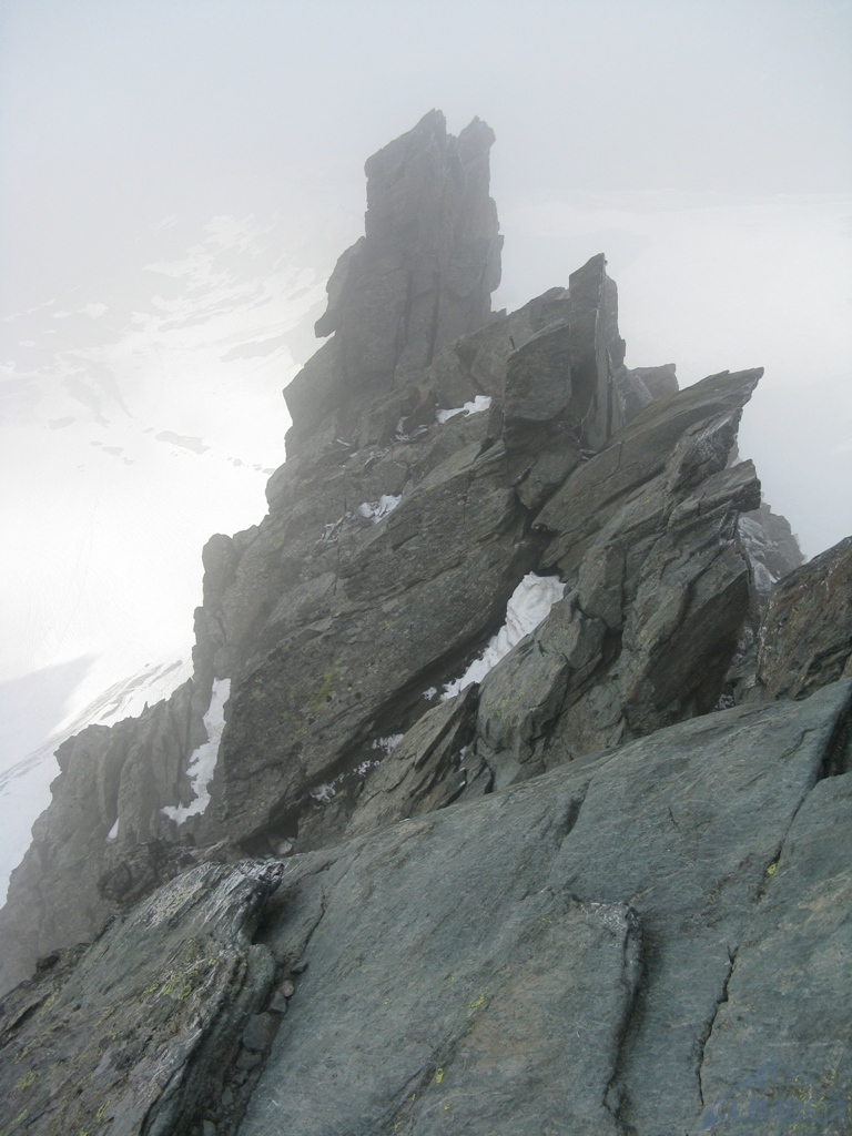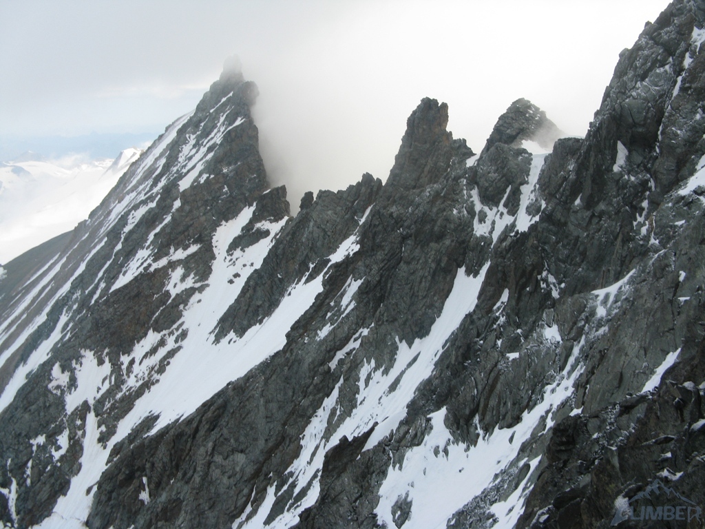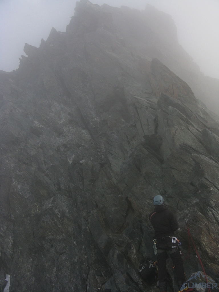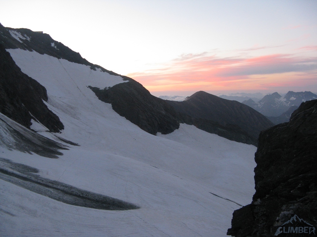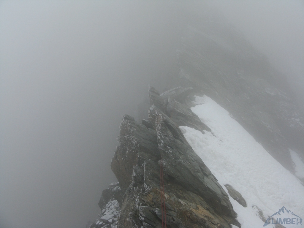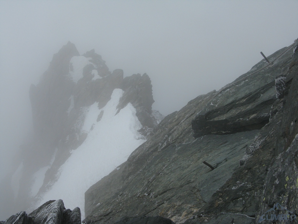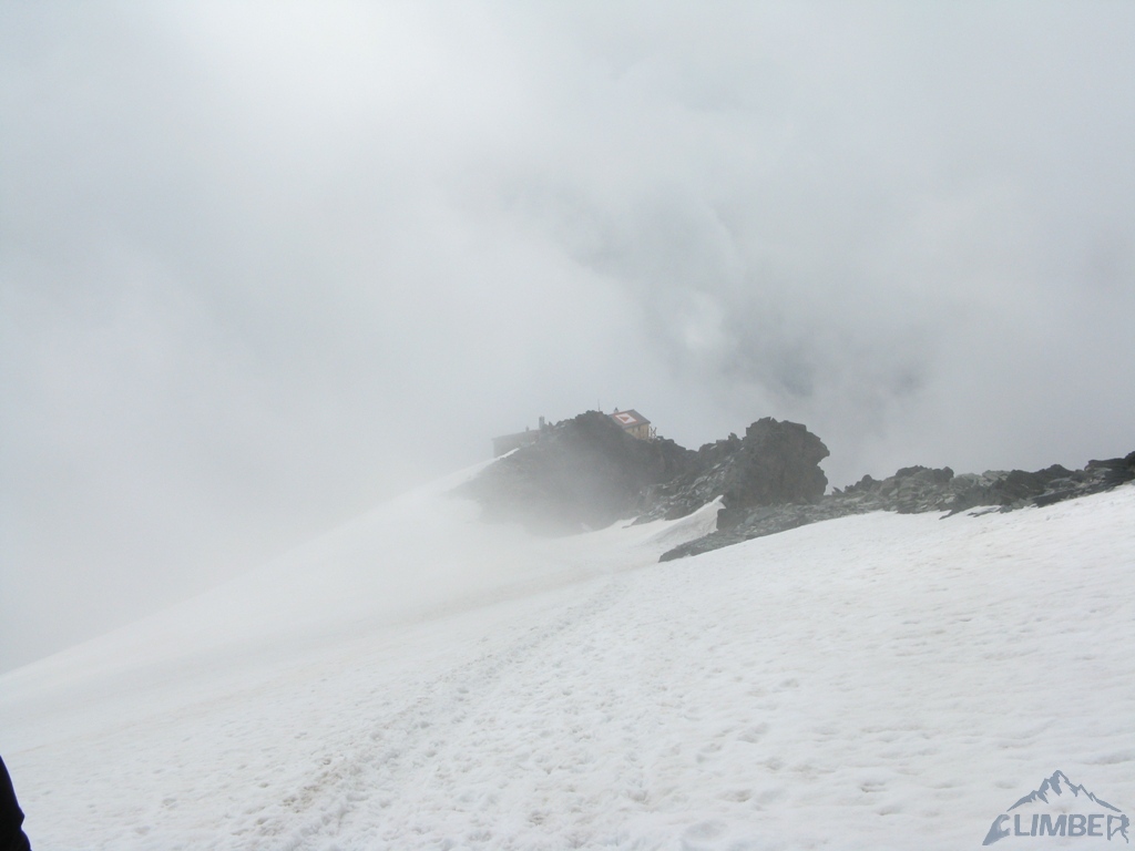 Do Austrii dojeżdżamy bez przygód, dojście do schroniska Stüdlhütte (2801 m.) mija szybko i przyjemnie. Wieczorem robimy rekonesans i podchodzimy pod grań - okazuje się to bardzo dobrą decyzją bo gdy ruszamy wczesnie rano nic nie widać. Martwi nas również pogoda bo ewidentnie idzie ku gorszemu. W związku z tym na grań poza nami rusza jeszcze tylko jeden zespół - przewodnik z klientem. Nasze obawy niestety okazują się uzasadnione - po wejściu w grań nadciągają chmury, zrywa się wiatr i spada temperatura.