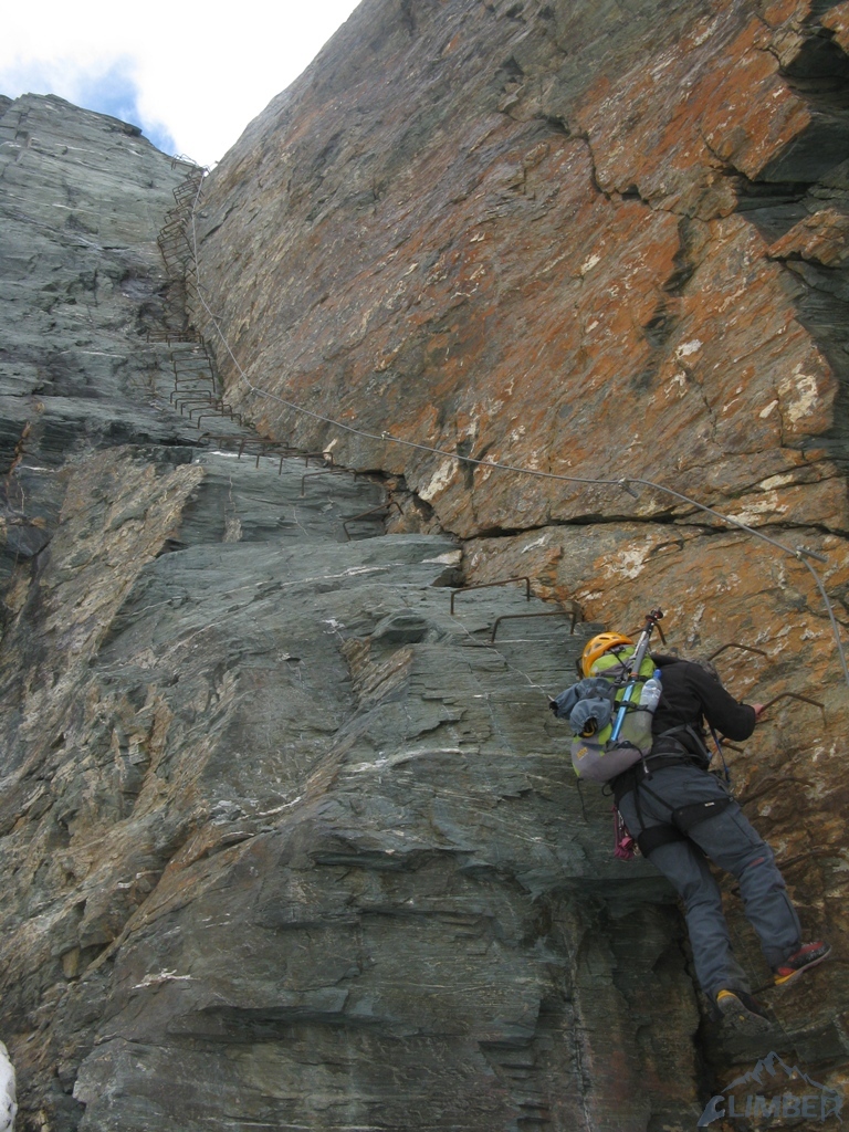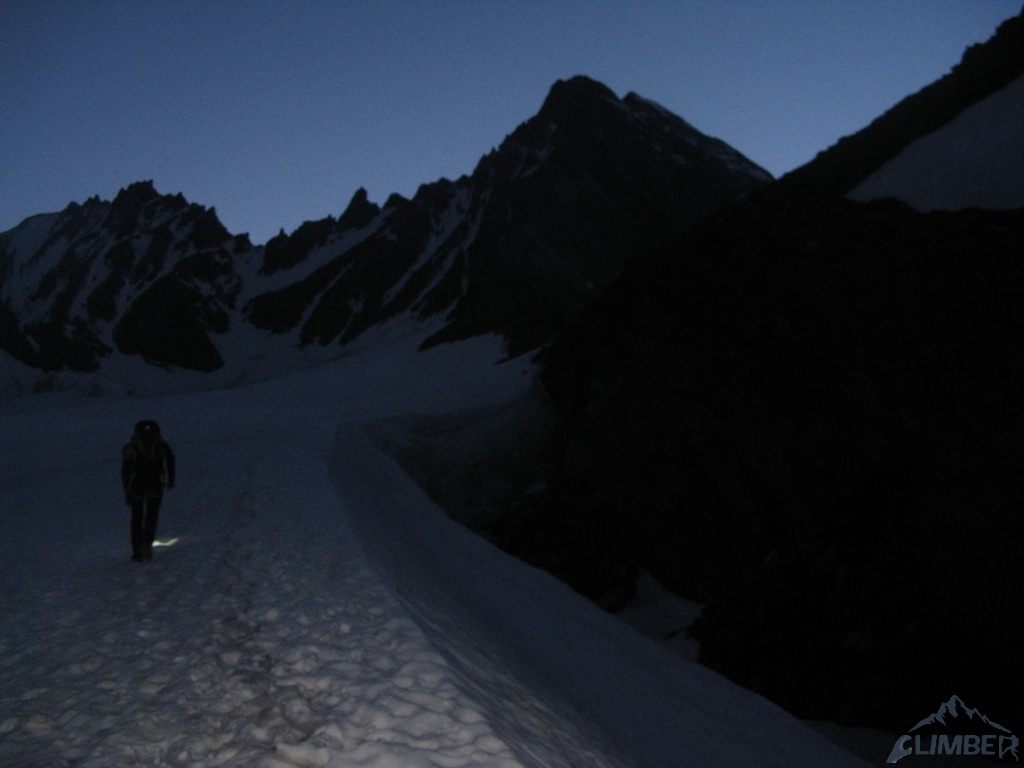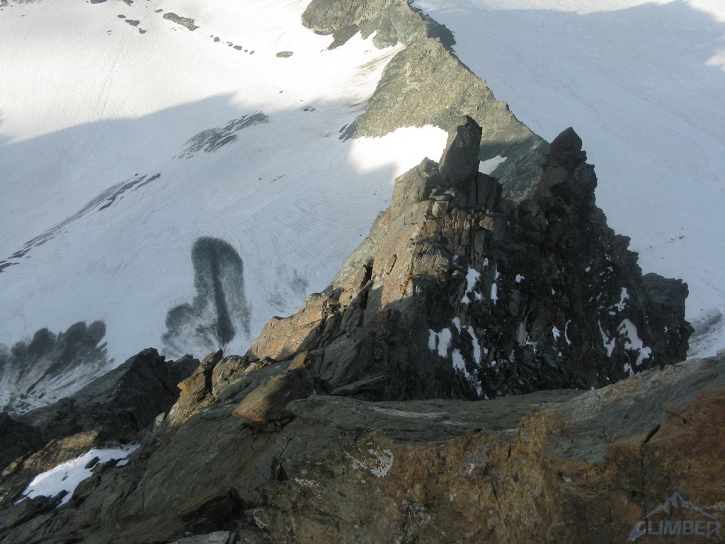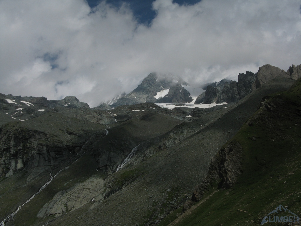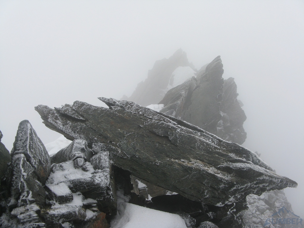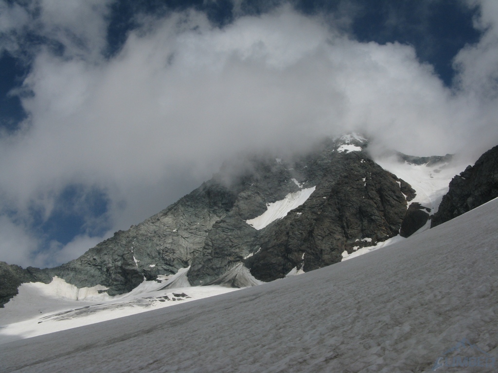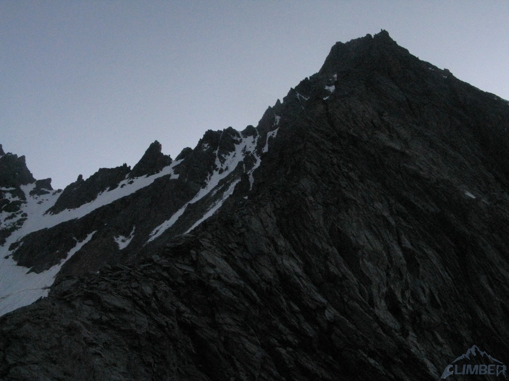 Do Austrii dojeżdżamy bez przygód, dojście do schroniska Stüdlhütte (2801 m.) mija szybko i przyjemnie. Wieczorem robimy rekonesans i podchodzimy pod grań - okazuje się to bardzo dobrą decyzją bo gdy ruszamy wczesnie rano nic nie widać. Martwi nas również pogoda bo ewidentnie idzie ku gorszemu. W związku z tym na grań poza nami rusza jeszcze tylko jeden zespół - przewodnik z klientem. Nasze obawy niestety okazują się uzasadnione - po wejściu w grań nadciągają chmury, zrywa się wiatr i spada temperatura.