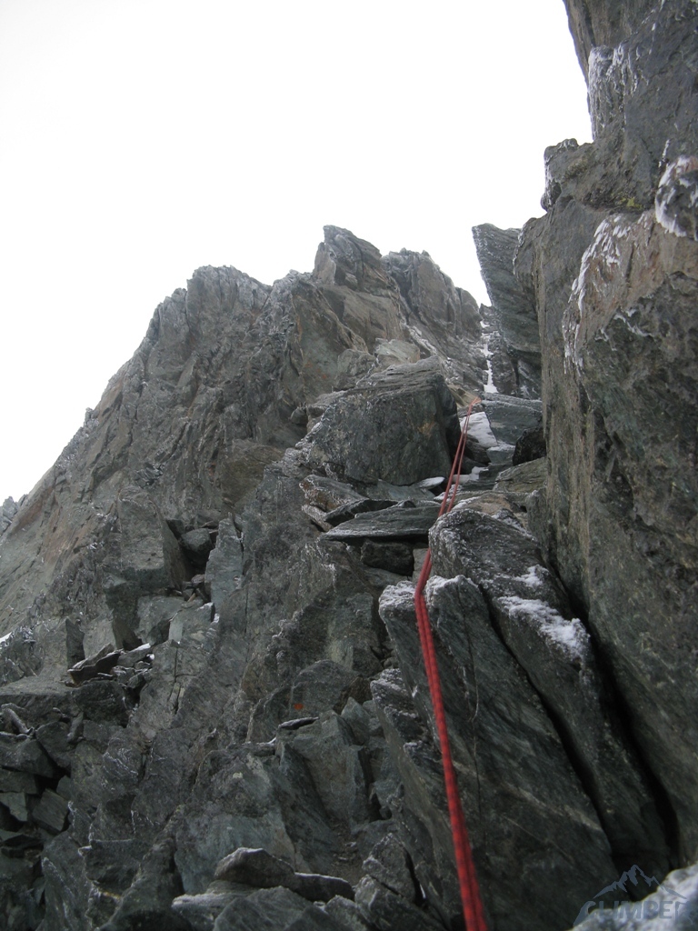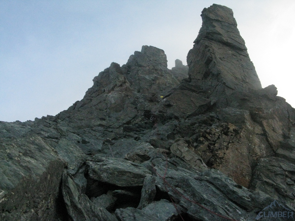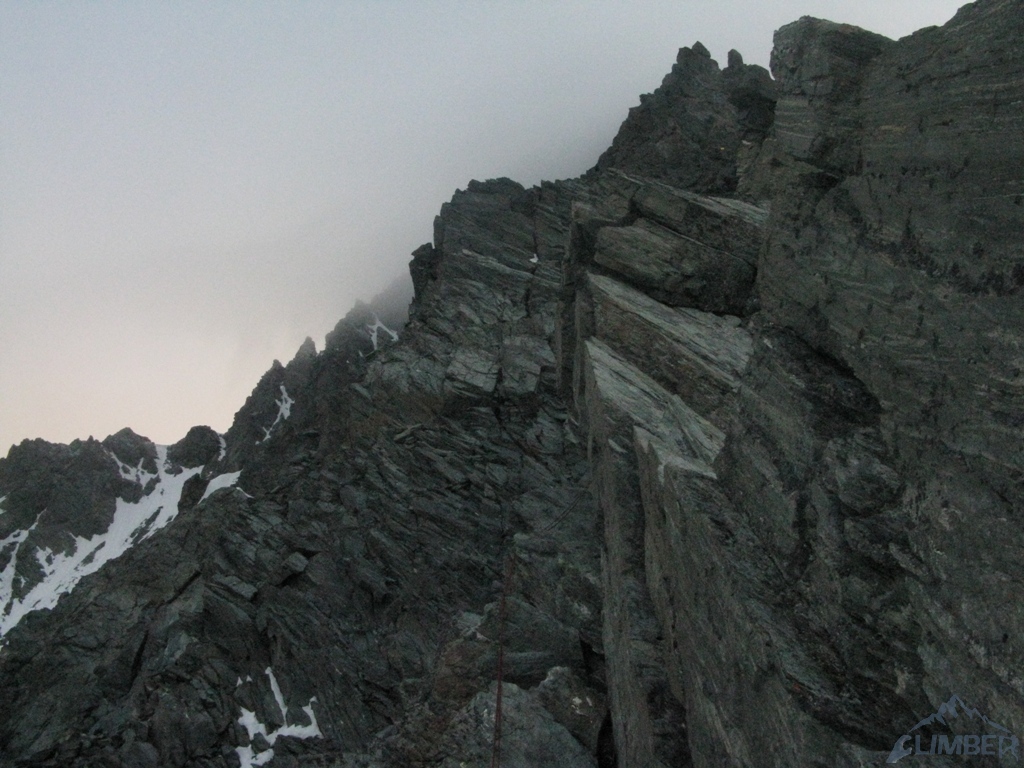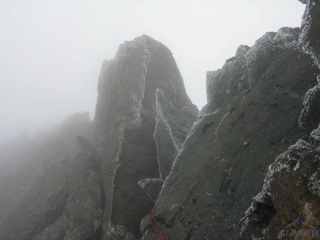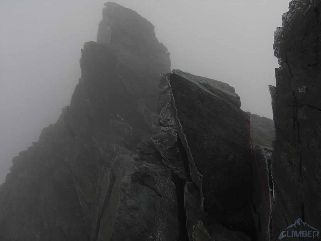Wycena: IV   Wycena uzupełniająca: III A0 lub IV AD   Asekuracja: RS1   Długość [m]: 500 (deniwalacja)   Wyciągi: 0   Czas [h]: 3   Wystawa: SW   Ocena: 8/10   Komentarz: Grań
