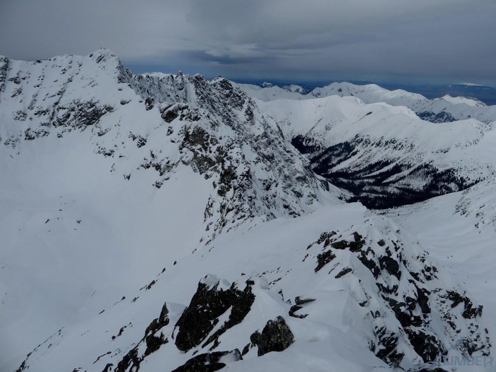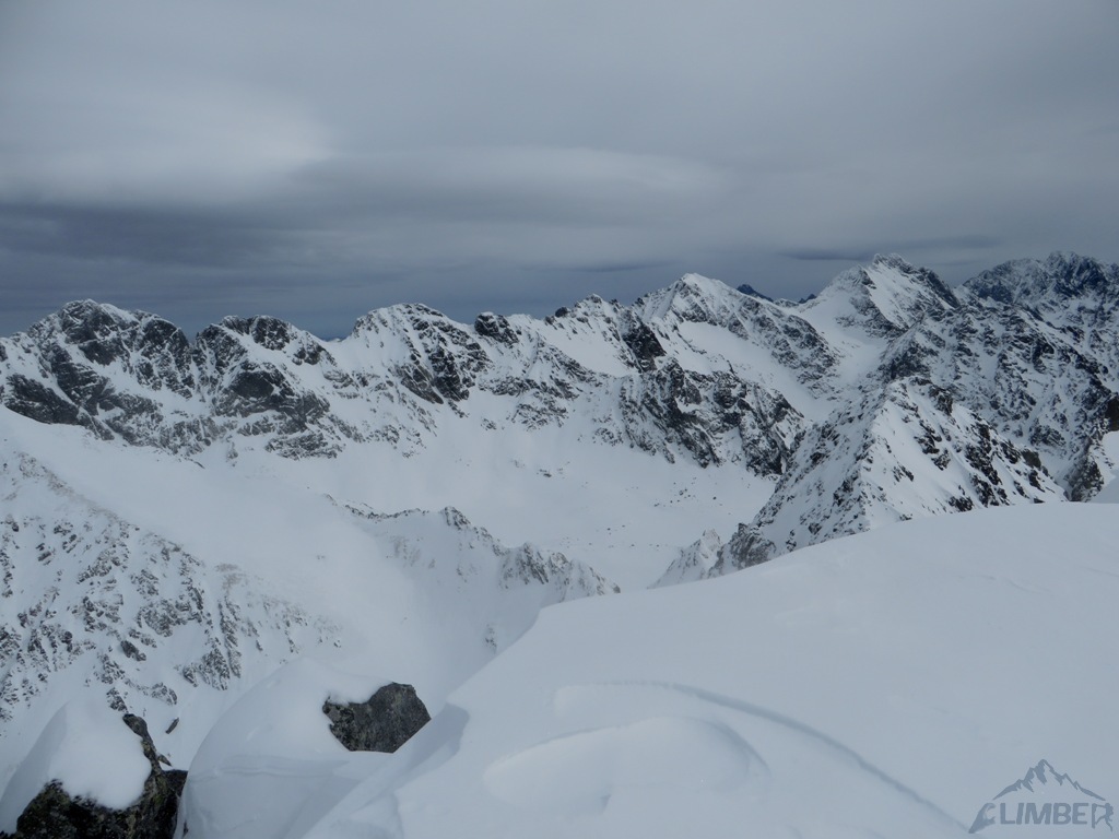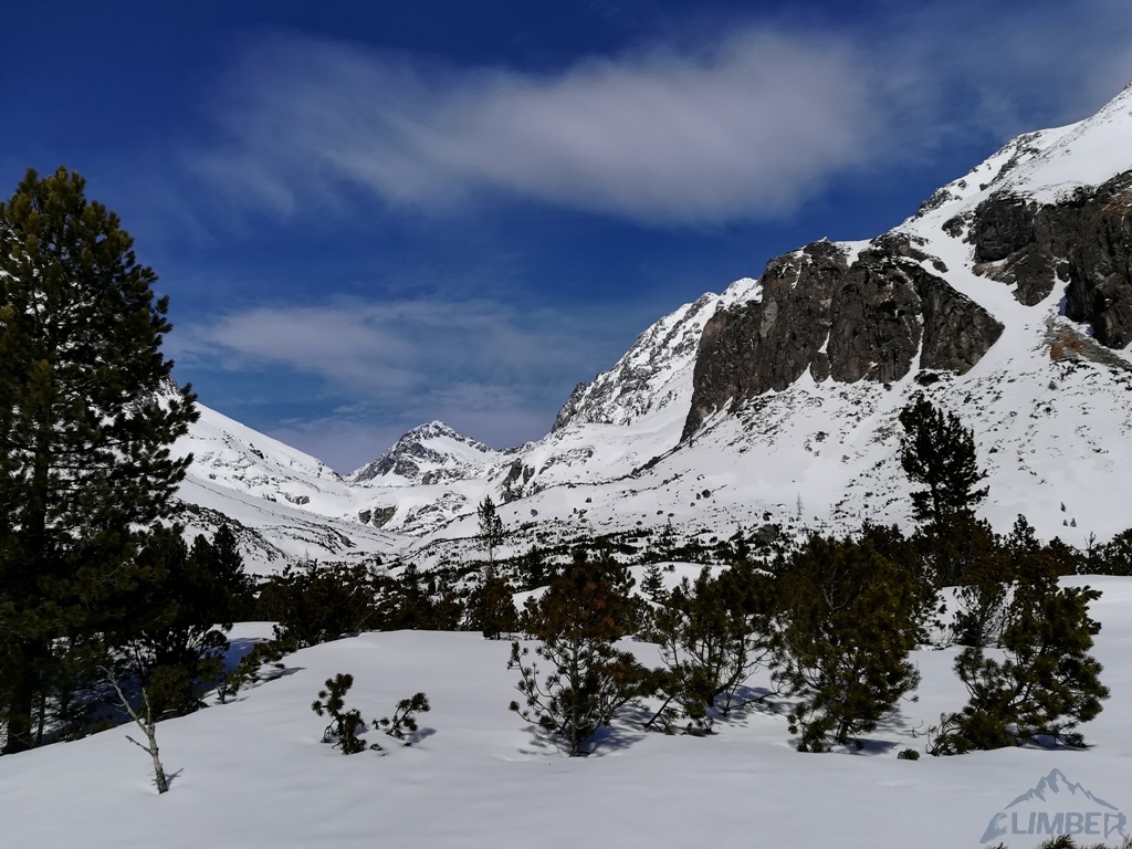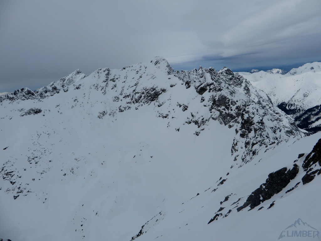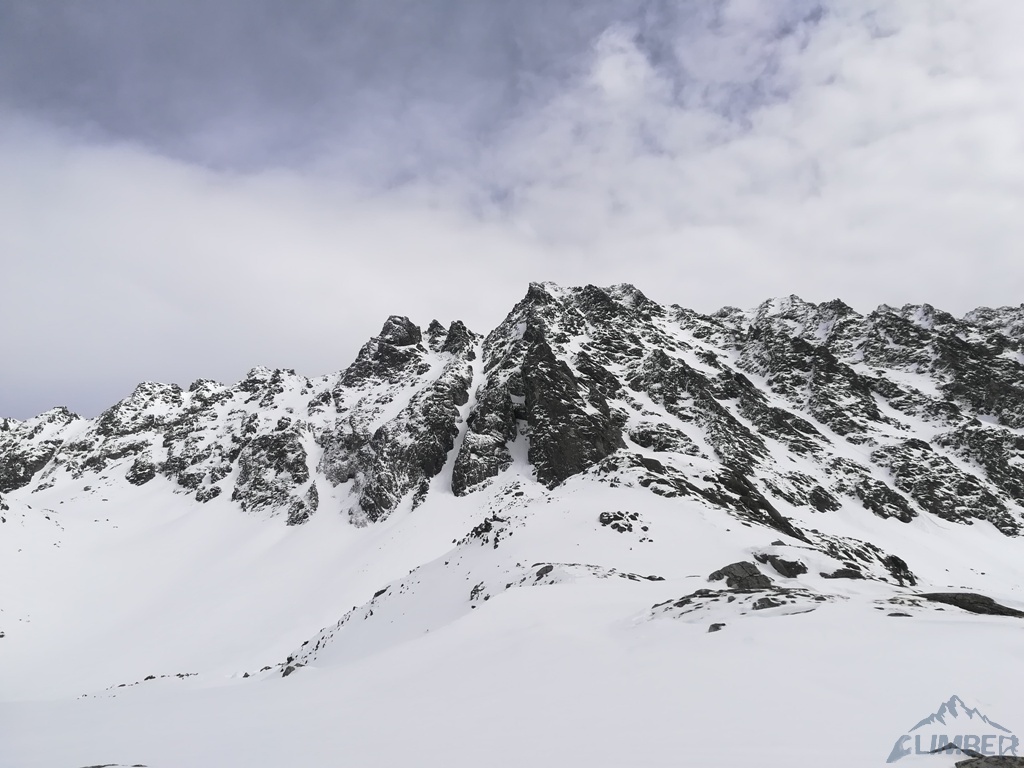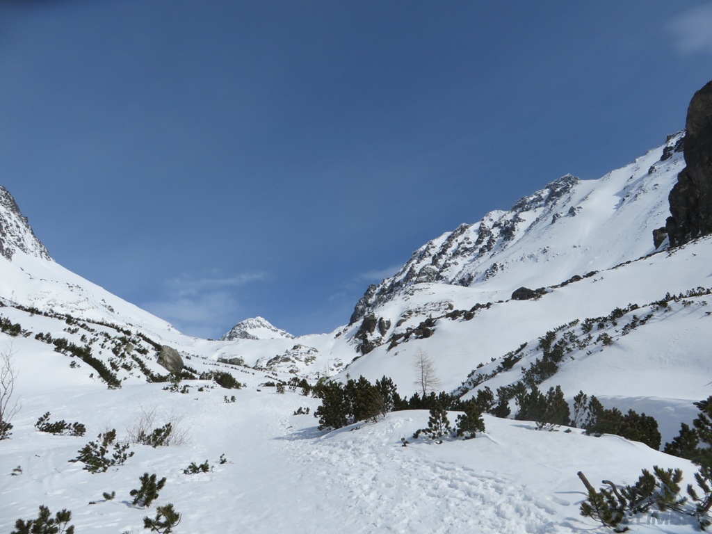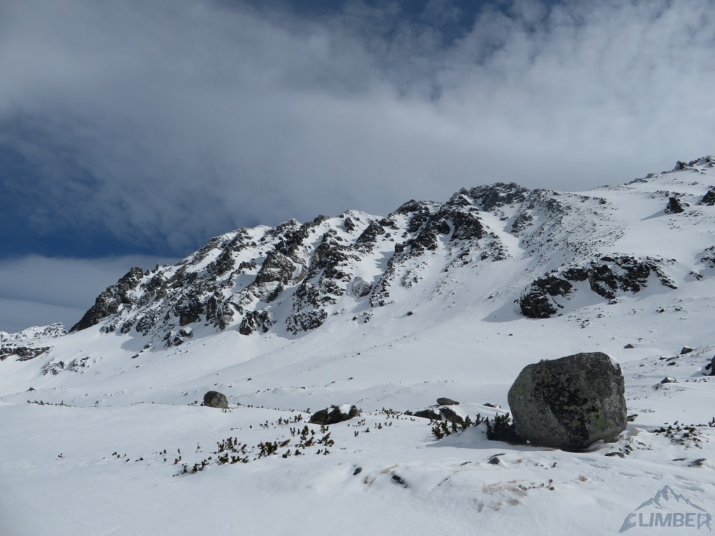 W Święta pogoda nie dopisała więc trzeba było przedłużyć urlop o jeden dzień i coś zadziałać w Tatrach z nartami :) Piszę do kilku znajomych, wszyscy jednak uparli się by pracować, pozostaje więc samotna akcja. Jadę nad Szczyrbskie Jezioro i ruszam z nartami na nogach wgłąb Doliny Młynickiej, ciesząc się ciszą i widokami. W planach wejście i zjazd z zachodniej ściany Szczyrbskiego Szczytu. Podchodząc obserwuję pozostałości po wczorajszych lawinach, mocny wiatr po opadzie robił swoje. Dziś, przy dużym ociepleniu niektóre stoki są również "zaminowane", nie wszędzie można się więc pchać. Na szczęście gdy dochodzę pod mój cel, okazuje się, że zachodni żleb opadający spod szczytu "trzyma" mogę więc mozolnie piąć się do góry z nartami na plecach.