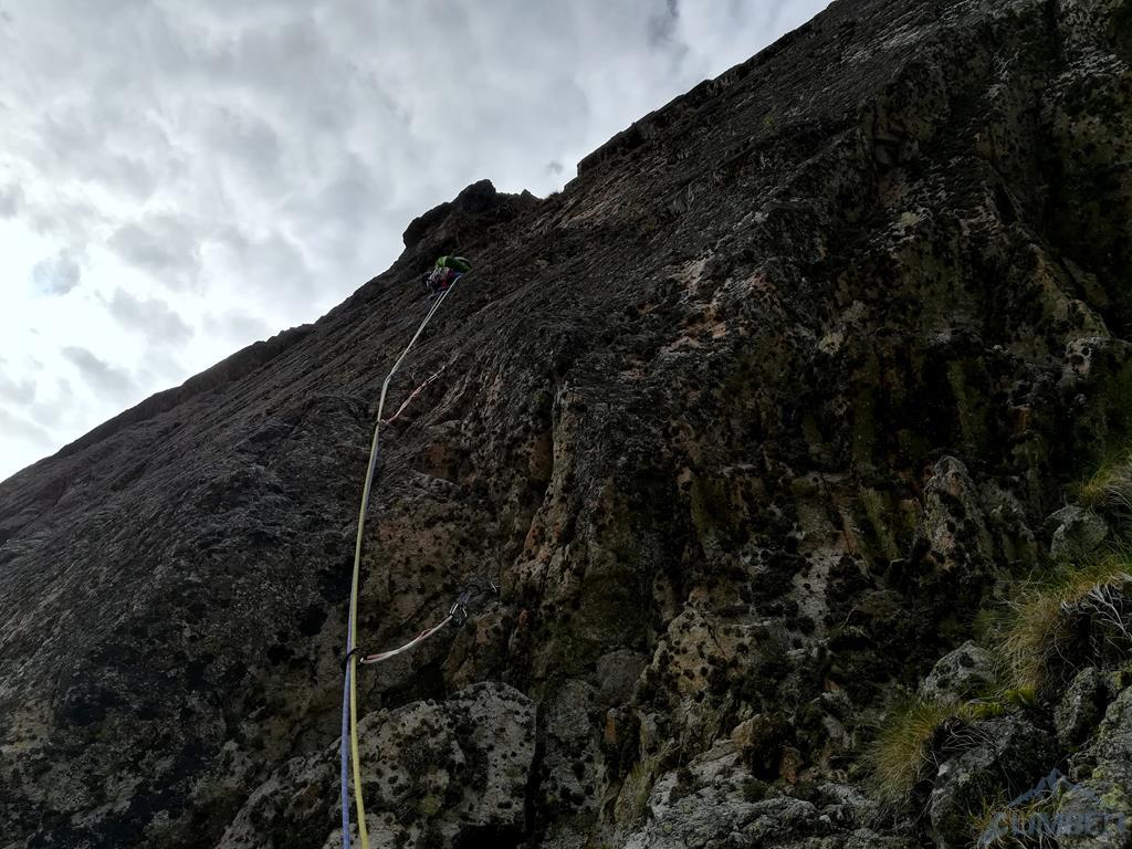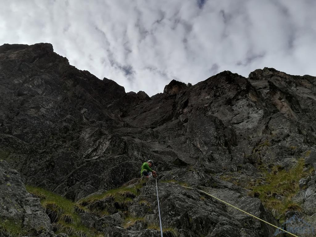 Drogę zrobiliśmy w trzy godziny ale spokojnie można zejść do dwóch, jak się pójdzie dokładnie jak należy... Zastanawiamy się nad drugą drogą ale w końcu rezygnujemy - wkrótce ma (i będzie) lać, a poza tym ściana kompletnie nie przypadła nam do gustu (krucha skała, luźne kamienie, porosty i mchy). Generalnie choć droga swój urok ma, nie polecamy miłośnikom ładnych klasyków, litej skały i dobrej asekuracji 😉.