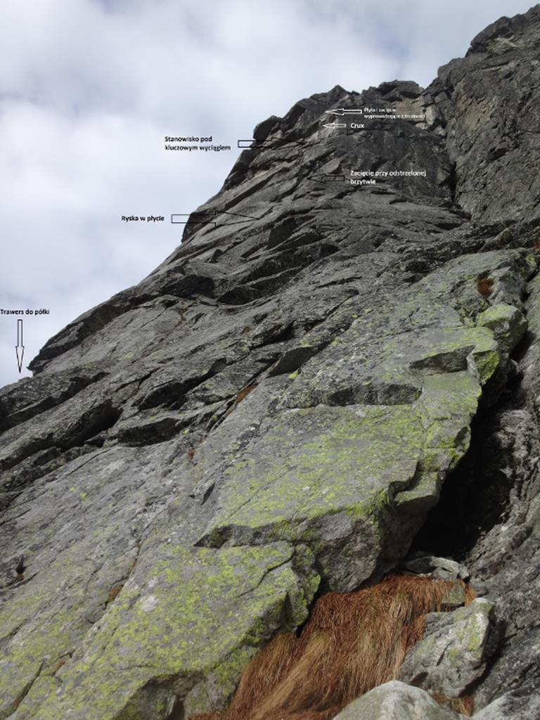 Wycena 2: VI+   Asekuracja 2: R2   Długość 2 [m]: 120   Wyciągi 2: 4   Czas 2 [h]: 0   Wystawa 2: SW   Ocena 2: 7/10   Komentarz 2: Wycof po 2 wyc.