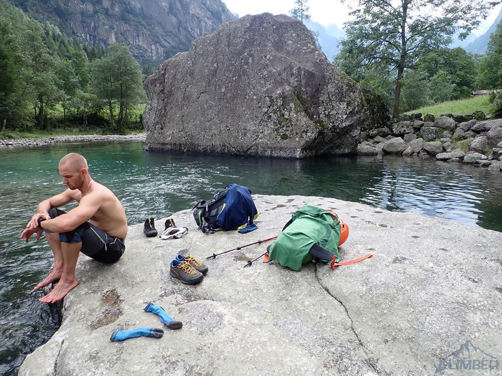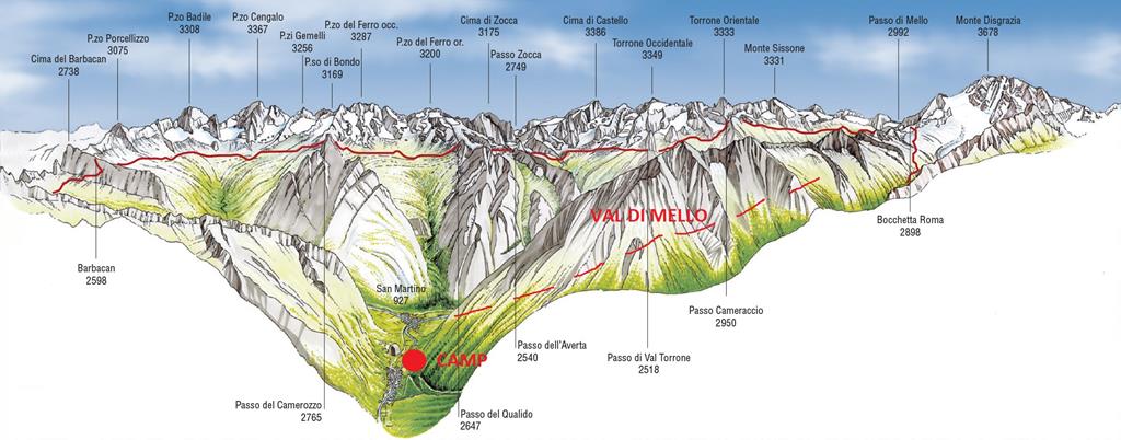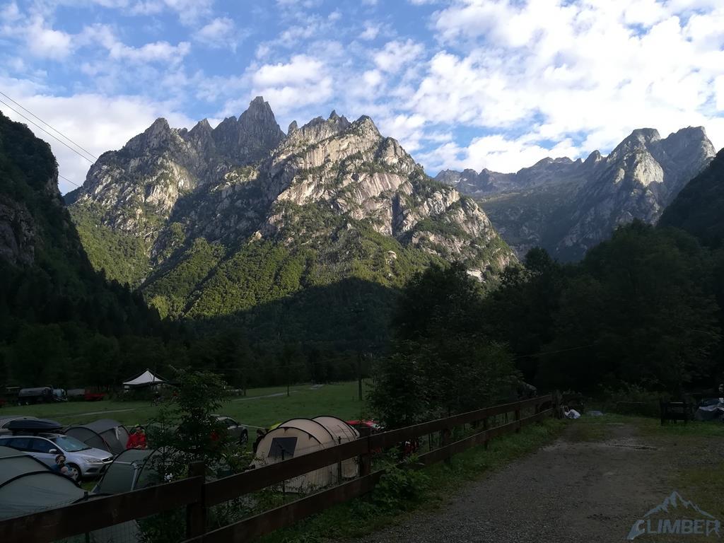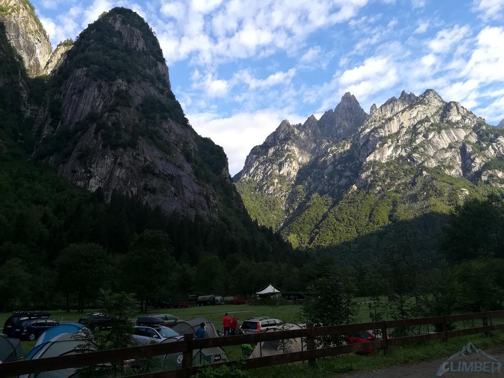 Pomysł na obóz KW BB w Val di Mello (a właściwie Val Masino) podsunął mi w zeszłym roku Janek Kuczera, który wraz z ekipą PZA przeniósł się tam z Dolomitów tuż przed naszym przyjazdem. Miejsce to pod względdem różnorodności jest niepowtarzalne - znajdziemy tu światowej jakości baldy (zawody Melloblocco), obite oraz tradowe drogi jedno i wielowyciągowe startujące wprost z doliny Mello (noszącej przydomek "Europejskie Yosemite"), jak i mnóstwo dróg górskich na ścianach takich jak np. Piz Badile, Piz Cengalo, Cima di Castello, Punta di Zocca czy Punta Allevi. Czyli dla każdego coś do wyboru, gorzej jak lubimy wspinać się po wszystkim bo wtedy musimy wybierać pomiędzy wieloma klasykami z każdej dyscypliny 😉.