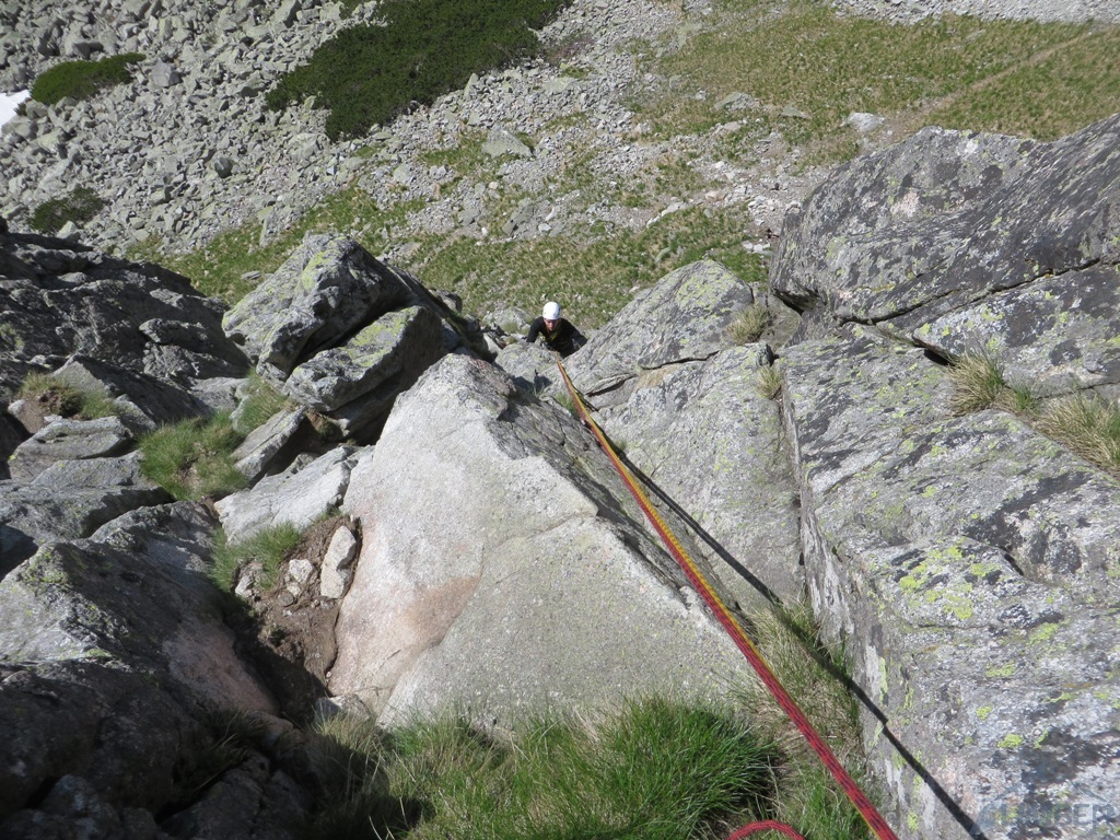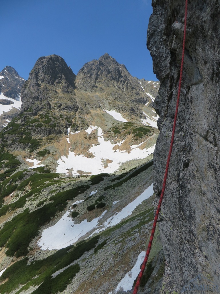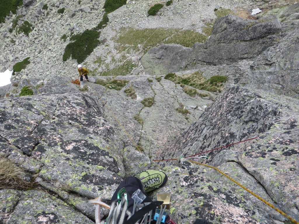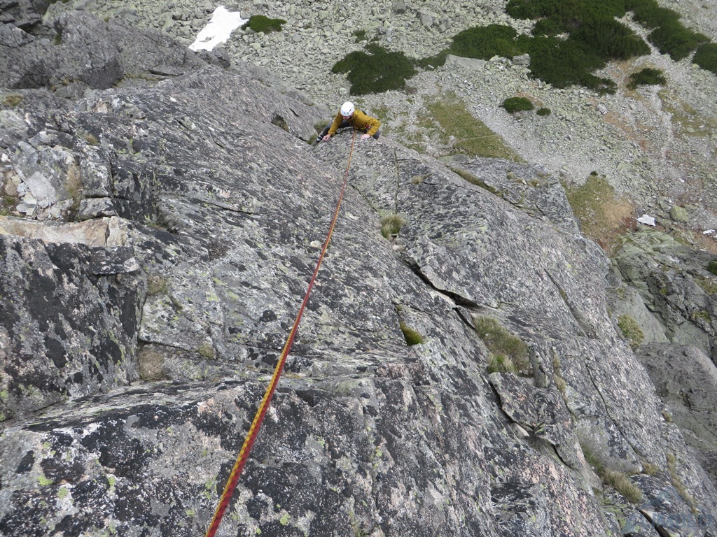 Jest już czerwiec więc wystarczy czekania aż śnieg zejdzie – jedziemy w Tatry rozpoczynać sezon. Działać można póki co na niskich i nasłonecznionych ścianach, decydujemy się więc na sprawdzony rejon – Rzeżuchowe Turnie. Zaczynamy od drogi Klíma-Linhart (V), więcej uwagi wymaga tylko wyciąg piątkowy, dlatego też po 2 godzinach meldujemy się z powrotem przy plecakach. Drugą drogą miał być Kut na Koziej Kopce, podczas zjazdu oglądaliśmy jednak drogę, która zwróciła moją uwagę już 2 lata temu – Korsvoldov tanec (VII). Pomimo iż wycena trochę nas straszy - kluczowy wyciąg to piękna płyta doposażona w kilka spitów, postanawiamy więc spróbować.