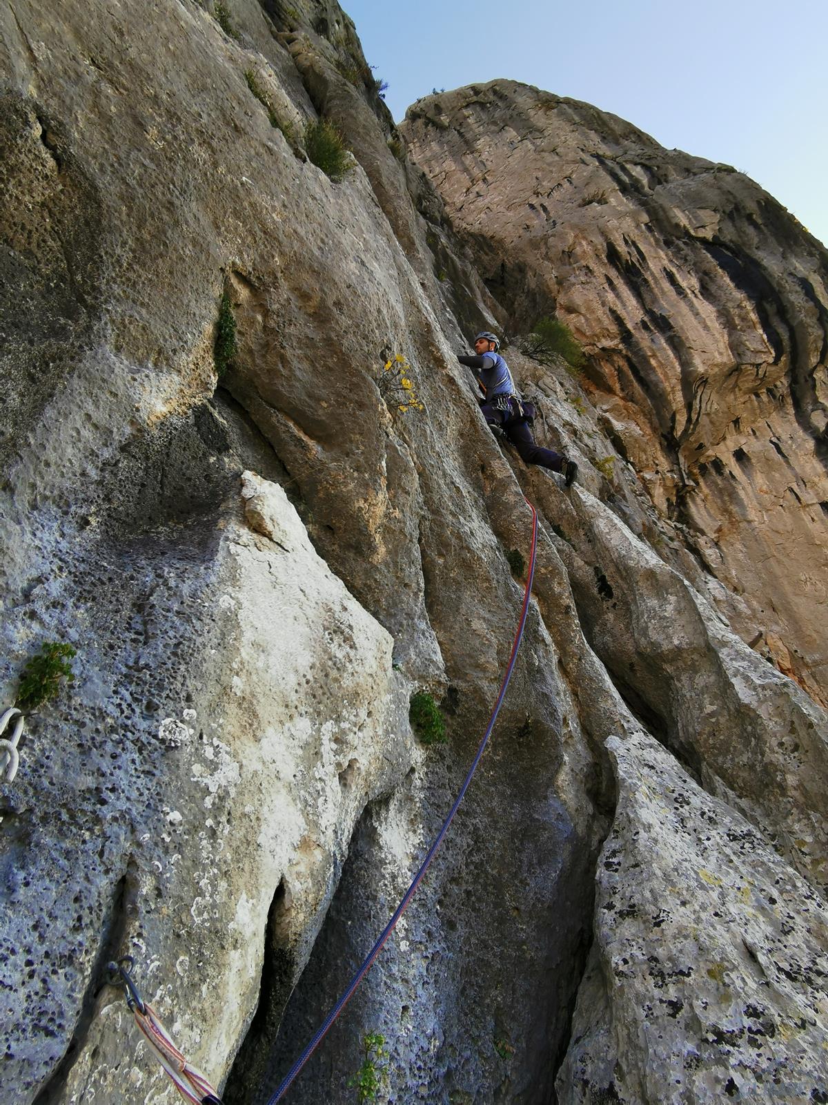 W niedzielny poranek jesteśmy zmęczeni i obolali, naiwnie jednak stwierdzam, że „jak się rozgrzejemy będzie lepiej” i przekonuję Anię by mimo wszystko spróbować Klina. Pod drogą spotykamy Lukę Lindiča, który asekuruje Ines Papert – okazuje się, że ich Zenit (7b) dzieli z naszą drogą dwa pierwsze wyciągi. Pierwszy wyciąg mimo niskiej wyceny (4a) prowadzi nieprzyjemnymi formacjami poprzetykanymi roślinnością, drugi ma podobny charakter, jest jednak przystępniejszy – wspinamy się cały czas wzdłuż pęknięć w płytach.