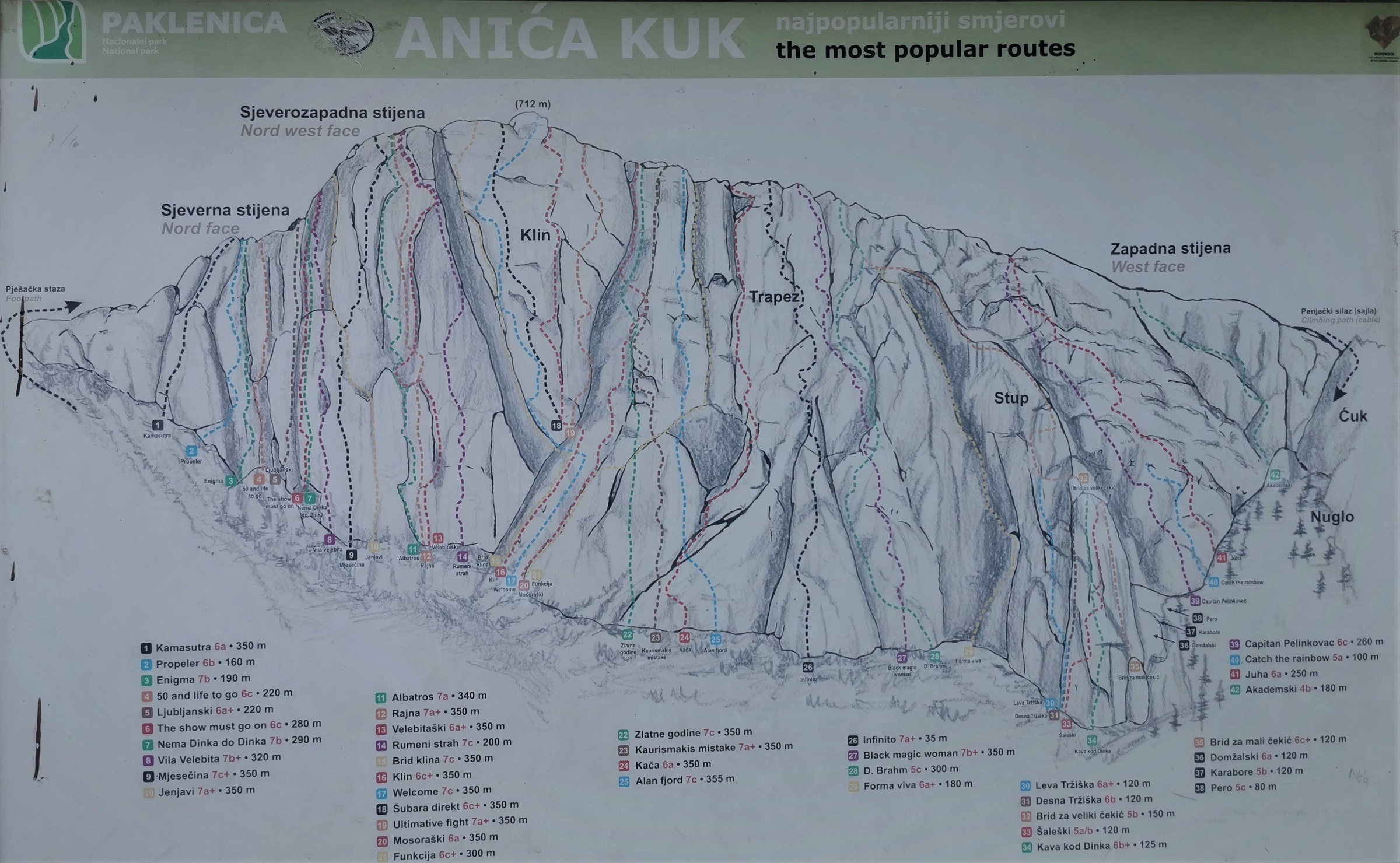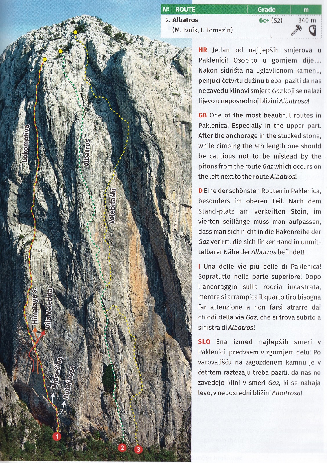 Głównym celem weekendowej wizyty w Paklenicy miał być należący do słynnej „Trylogii” Klin 6c+ (Mosoraški i Velebitaški już zrobione) i na niego właśnie zmierzamy w sobotni poranek. Pod ścianą okazuje się jednak, że kluczowy fragment drogi jest zalany i po konsultacji z doświadczonymi lokalsami decydujemy się zmienić plan i spróbować innego upatrzonego klasyka, Albatrosa (6c+, w starym topo 7a). Na drodze zdecydowanie najtrudniejszy jest pierwszy wyciąg, na kolejnych nadal czeka jednak dużo niebanalnego wspinania – jak się później okazuje bardziej wymagającego niż zakładaliśmy. Klina próbujemy kolejnego dnia - jesteśmy jednak zbyt zmęczeni by go przejść. Udaje się rok później - relacja TUTAJ.