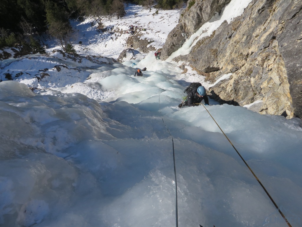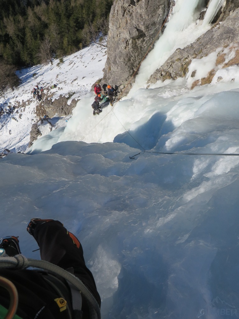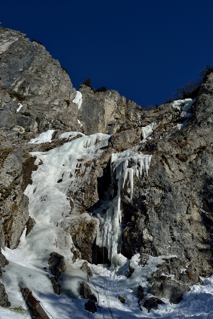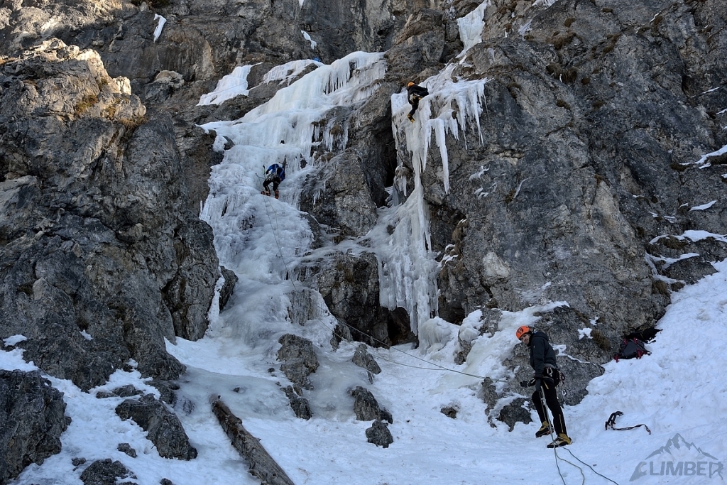 Zapowiadają piękny weekend i świetny warun, nie ma więc co się zastanawiać – trzeba jechać w Tatry na cały weekend! Na sobotę planujemy rozgrzewkę na lodospadach w Białej Wodzie. Niestety tuż przed wyjazdem wysypuje się nam jedna osoba i finalnie działamy w trójkę – do mnie i Krzyśka na miejscu dołącza Łukasz (Madness). W Dolinie ludzi na dziabanie oczywiście mnóstwo, dlatego też udaje nam się zrobić tylko jeden, za to dość długi (ok. 80-metrowy) Lodospad Kaskady. Zastanawiamy się jeszcze nad wbijaniem w pięknie prezentującego się Mrozekova ale jest już za późno a w perspektywie mamy jeszcze obiad i przejazd do Brzezin oraz podejście na nocleg do Murowańca.