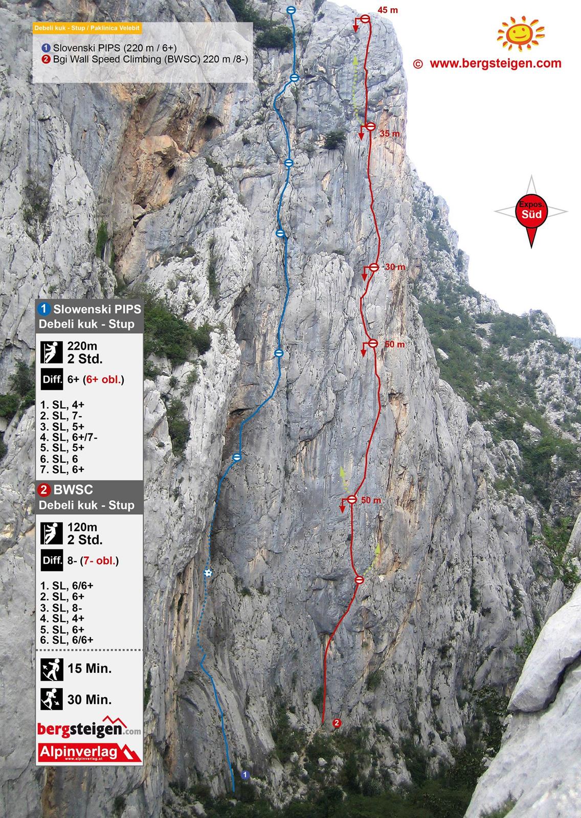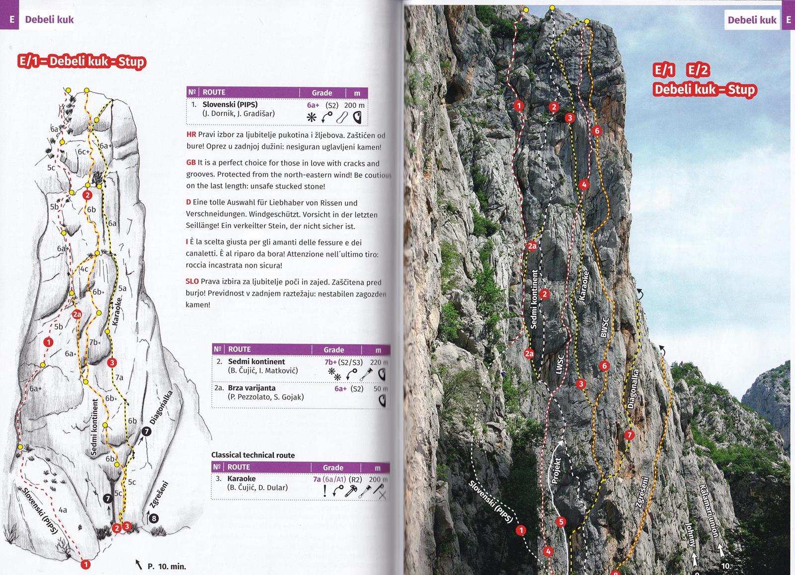 PS. Inne polecane, popularne drogi na Debeli Kuk to m.in. Zgrešeni (5b, 120m), Diagonalka (6a+, 260m), Senza Pieta (6b+, 250m) Big Wall Speed Climbing/BWSC (6c+, 280m), Johny (7a, 280m) Drugi program (7b, 250m.. Klasyki na ścianie Anića Kuk wypisałem TUTAJ, Stup TUTAJ, Veliki Čuk TUTAJ.