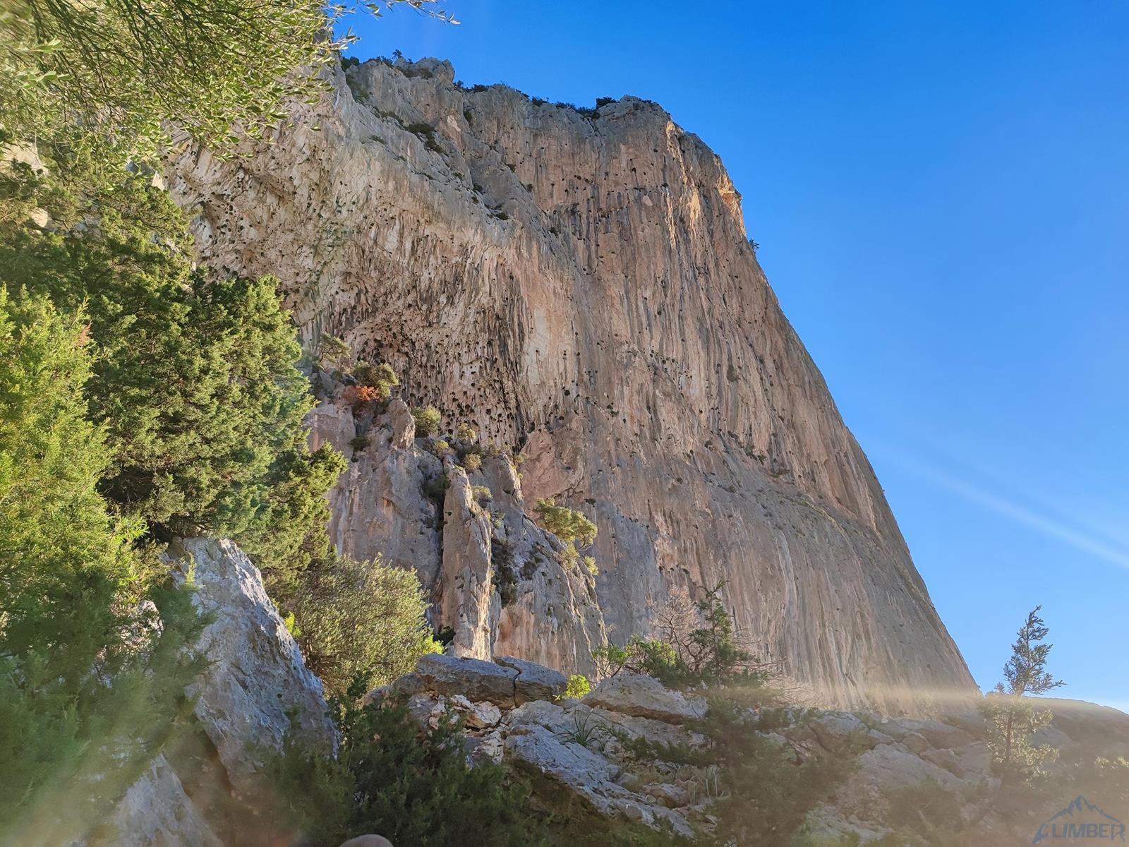 Na Sardynii jest sporo ciekawych rejonów skałkowych, to co jednak wyróżnia ją na wspinaczkowej mapie Europy to liczba ścian z drogami wielowyciągowymi. Wybierając się na wyspę zaledwie na kilka dni planowaliśmy co prawda działać na sektorach sportowych, jednak po uświadomieniu sobie ile pięknych turni mamy pod ręką, postanowiliśmy wybrać się na przynajmniej trzy z nich. I tak po wspinaniu na malowniczej Pedra Londze (RELACJA) w ostatni dzień roku 2021 przyszła kolej na widoczną z niej niesamowitą ścianę – Punta Giradili. Drogi na niej poleciła nam zresztą stała bywalczyni wyspy i zarazem jedna z najlepszych polskich wspinaczek, Ola – nie mogło więc się nie podobać!