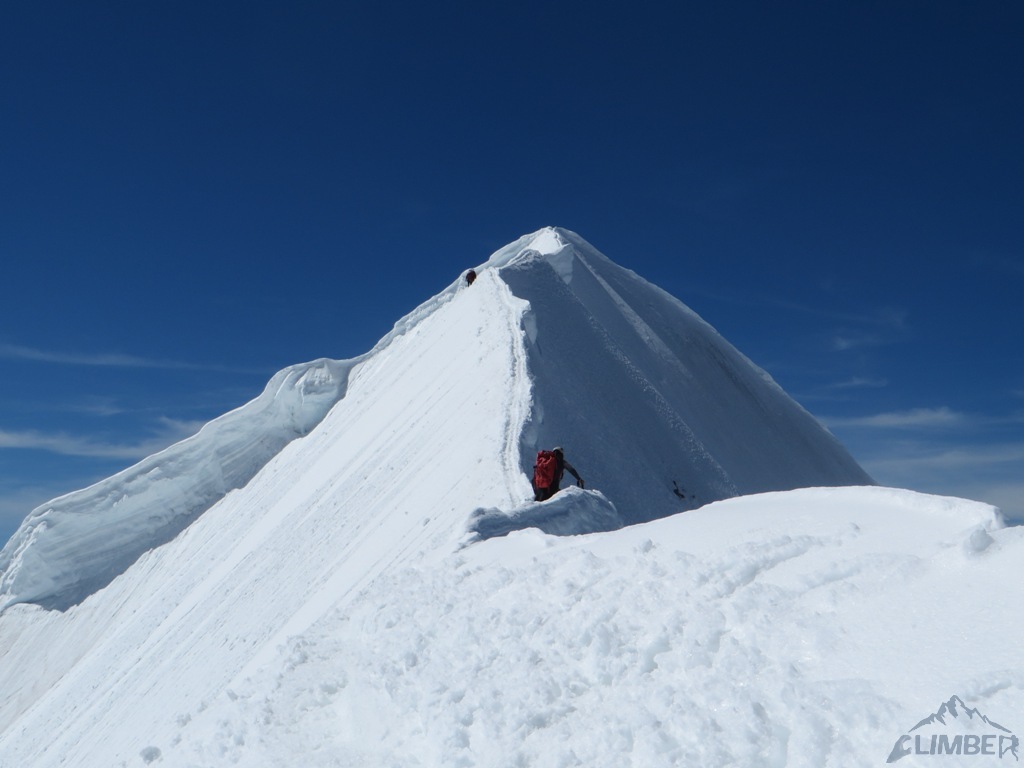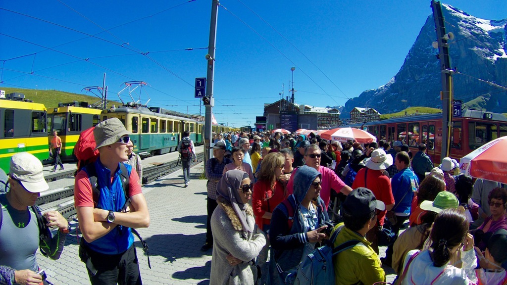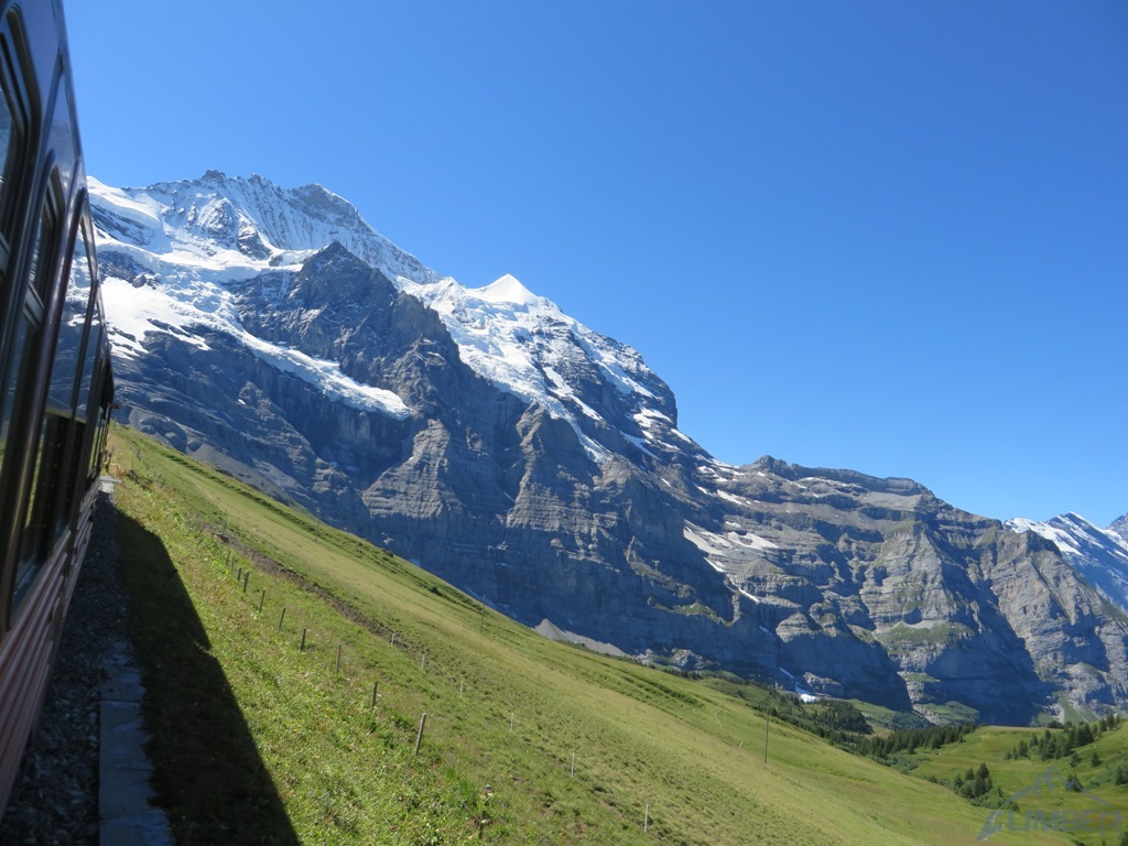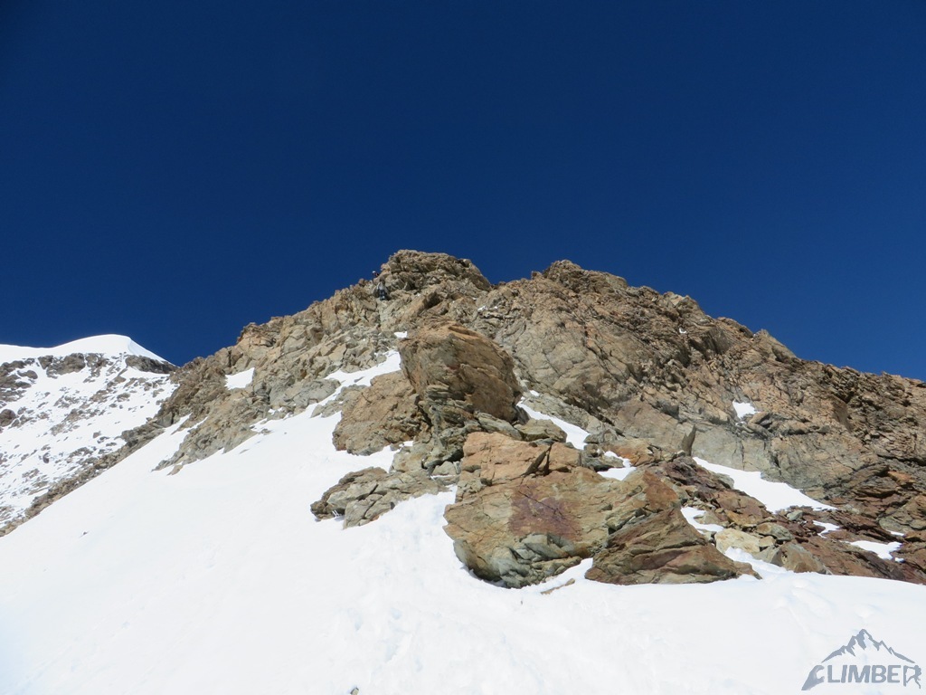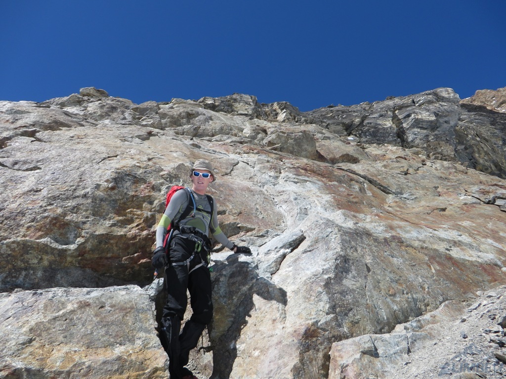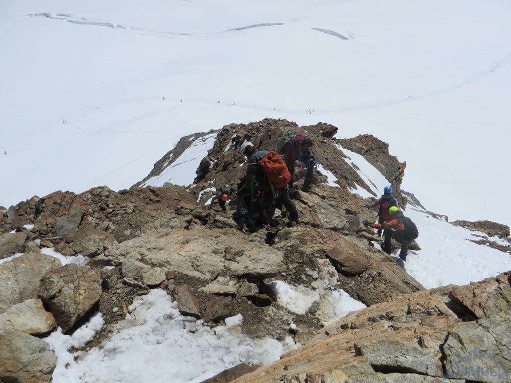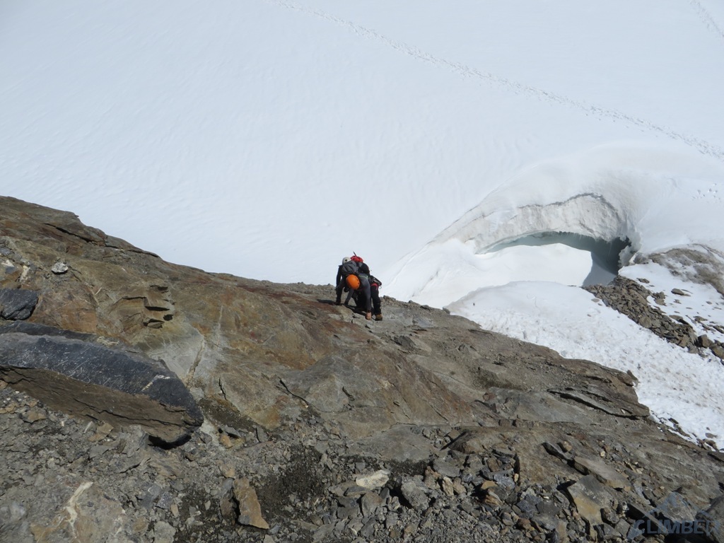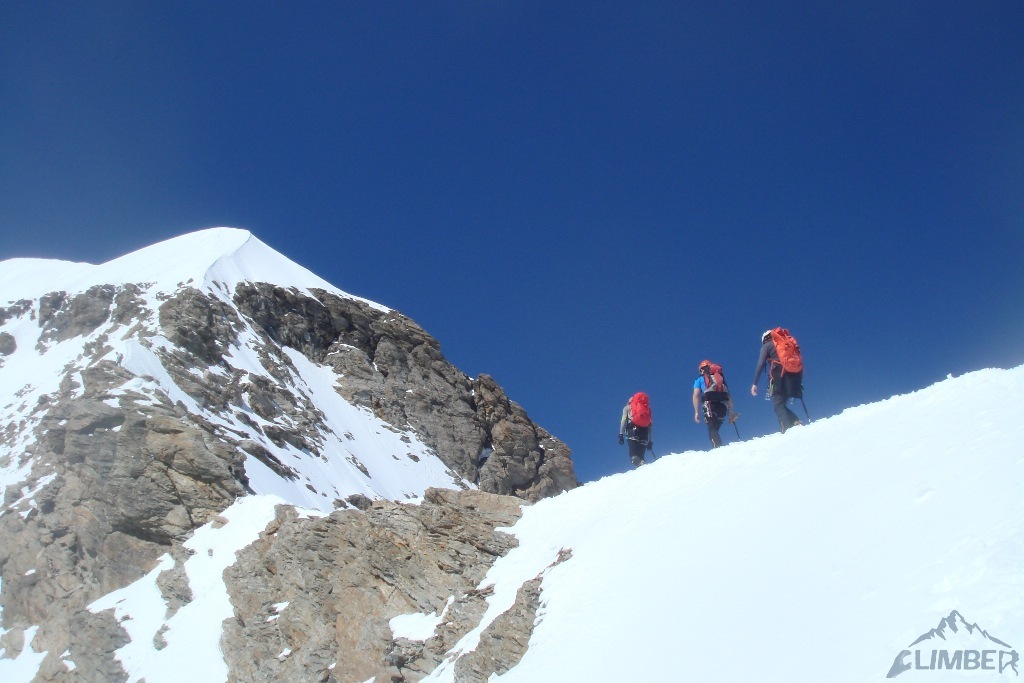 Po skorzystaniu ze słynnej kolejki Eiger Express do schroniska Mönchsjoch (3650 m.) docieramy około 13, szybki przepak i ruszamy w stronę pierwszego celu. Słońce strasznie daje popalić, a ja pluję sobie w brodę, że zabrałem tylko zimowe spodnie. Dodatkowo pierwszy raz odczuwam co to znaczy brak aklimatyzacji, na grani szczytowej mocno kręci mi się w głowie co biorąc pod uwagę lufę z jednej i z drugiej strony, nie jest zbyt komfortowe. Szczyt zdobywamy jednak sprawnie i bez przygód oraz niespodziewanych trudności (nie asekurujemy się w żadnym miejscu), spokojnie zdążamy na zamówioną kolację chociaż nikt nie ma apetytu z powodu coraz gorszego bólu głowy. Noc nie będzie za przyjemna, a kolejnego dnia czeka nas kolejny cel - Jungfrau (relacja TUTAJ).