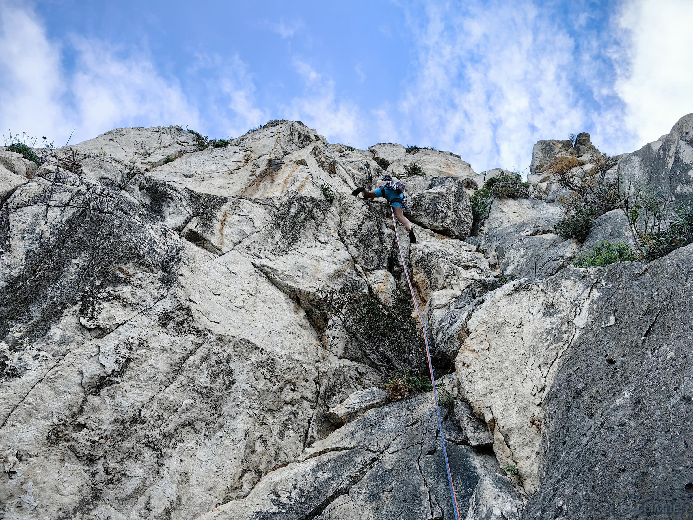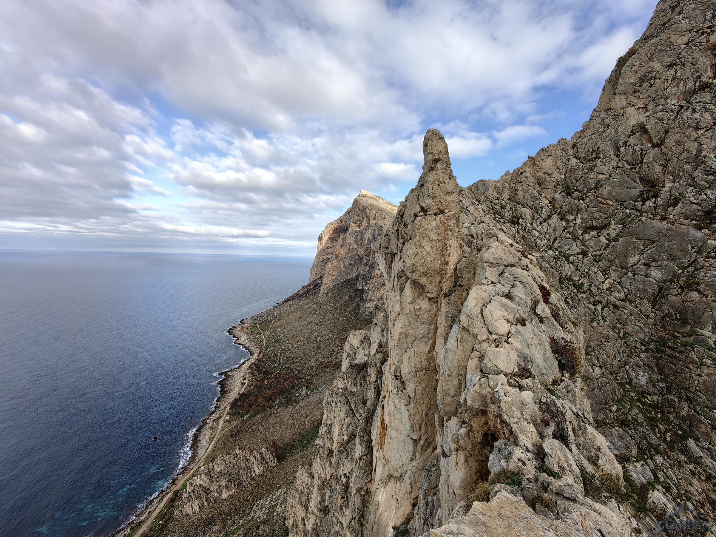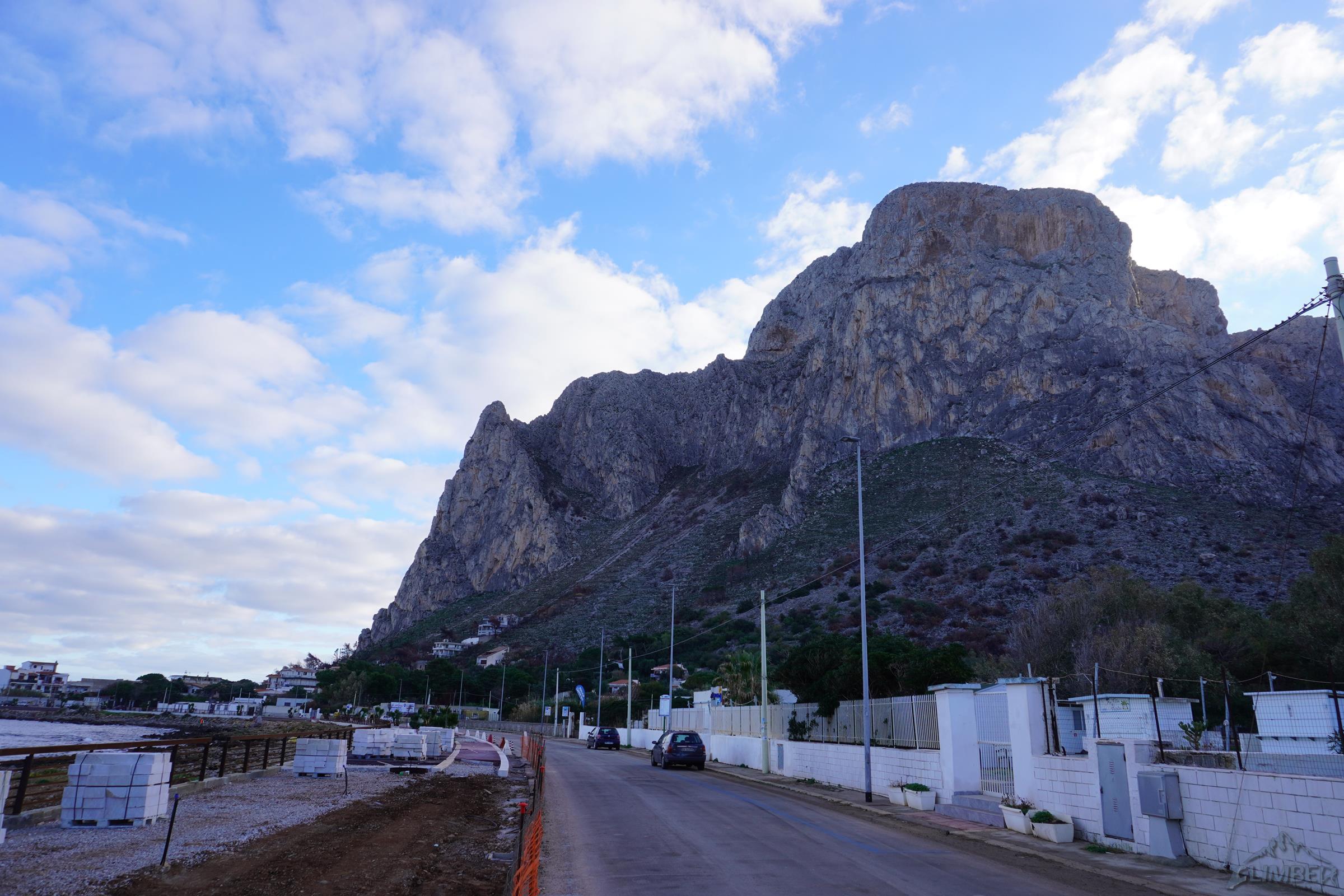 Północno-zachodni mur Monte Gallo ciągnie się od miasteczka Sferracavallo przez ponad dwa kilometry, na południowy wschód opada zaś niepozornymi wzgórzami. Masyw obejmuje kilka szczytów i turni – Quota 280 i Santa Margherita są dobrze opisane w nowym przewodniku i na stronie z jego skróconą wersją, TUTAJ. Drogi na pozostałych trzeba póki co wyszukiwać osobno, niektóre z nich wymienione są wśród sektorów opisanych TUTAJ. My póki co odwiedzamy dwie wspomniane ściany oraz Pizzo Sella – w sumie przechodzimy cztery lokalne klasyki. Na dwóch trudniejszych finalnie okazuje się, że muszę poprowadzić wszystkie wyciągi, Ani przypadają więc w całości dwie przystępniejsze drogi.