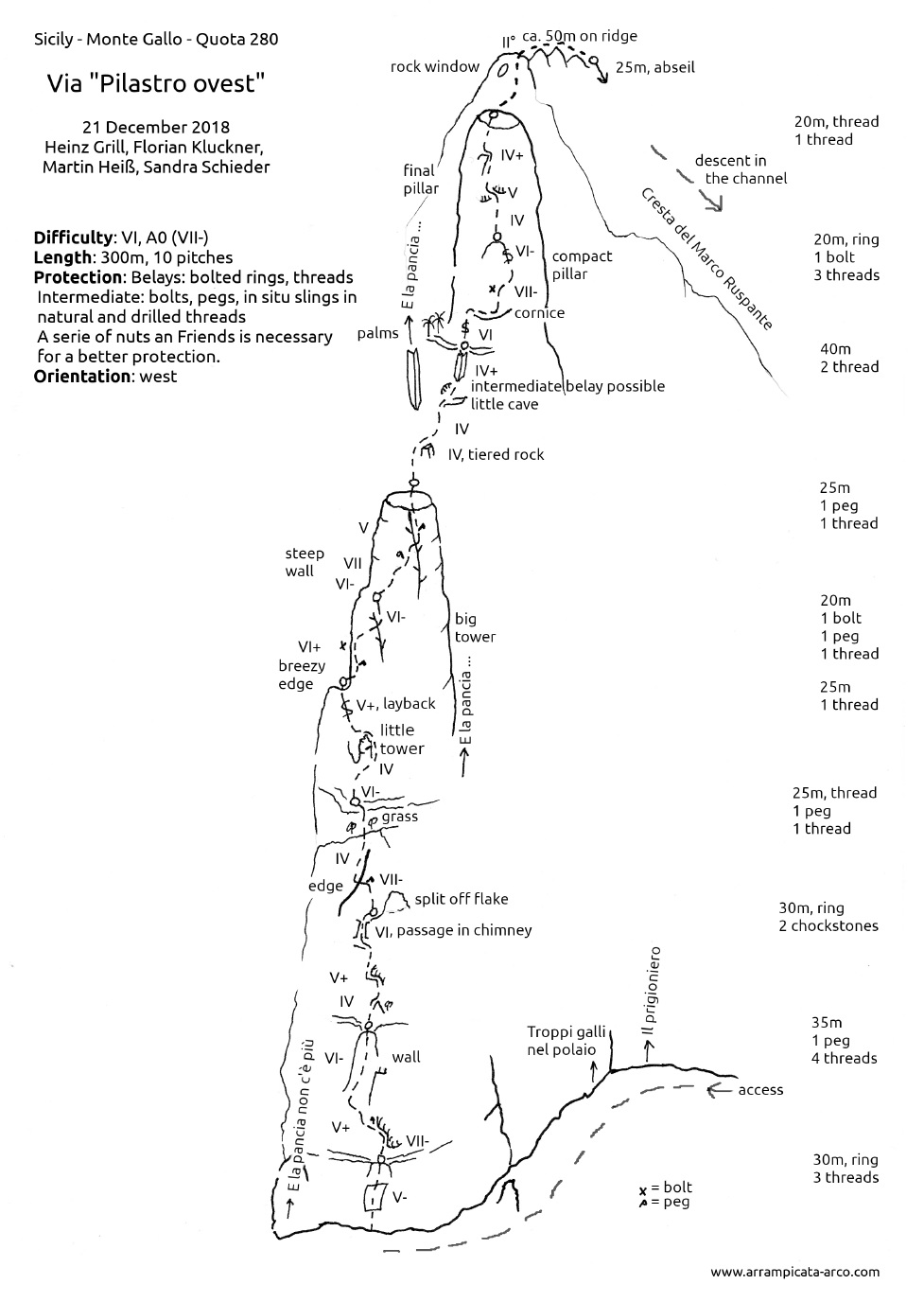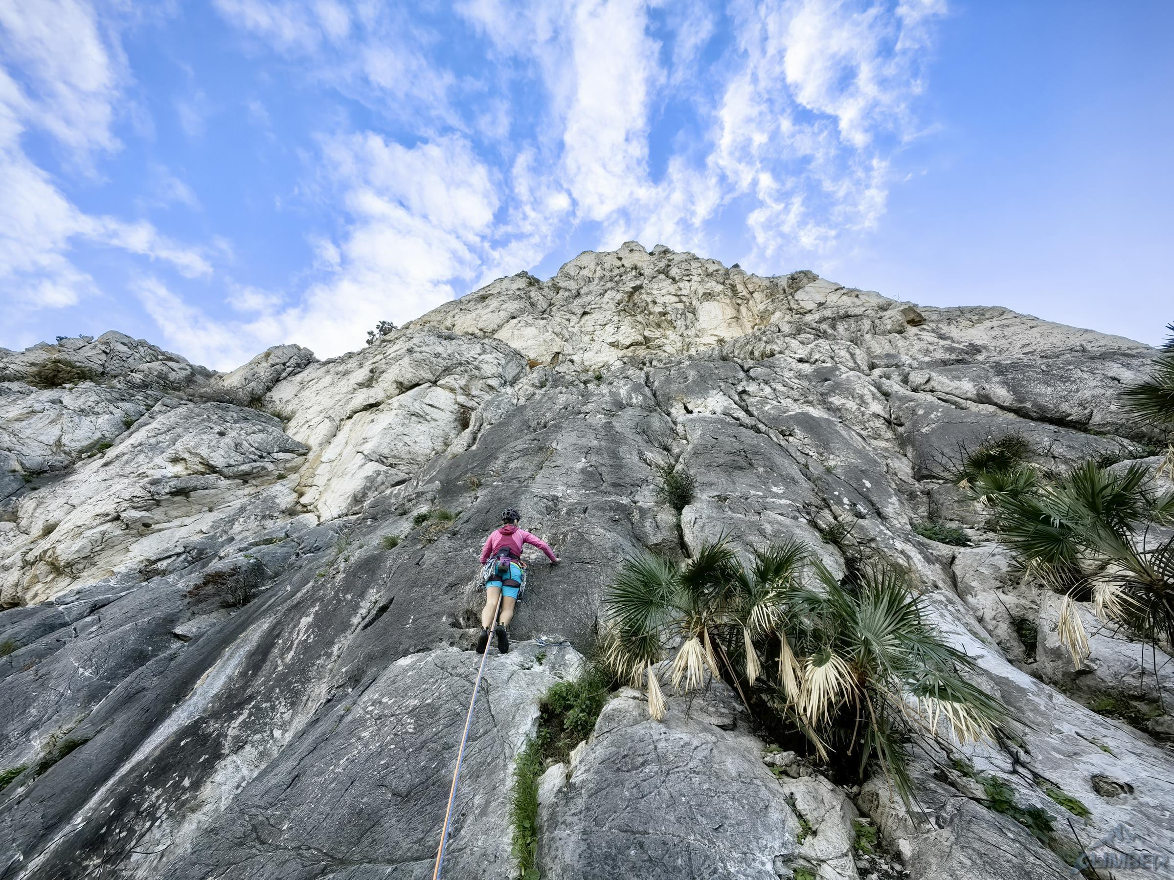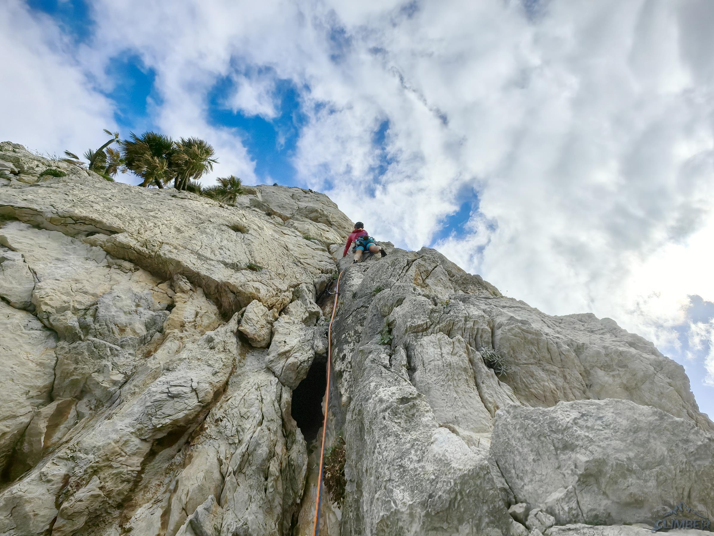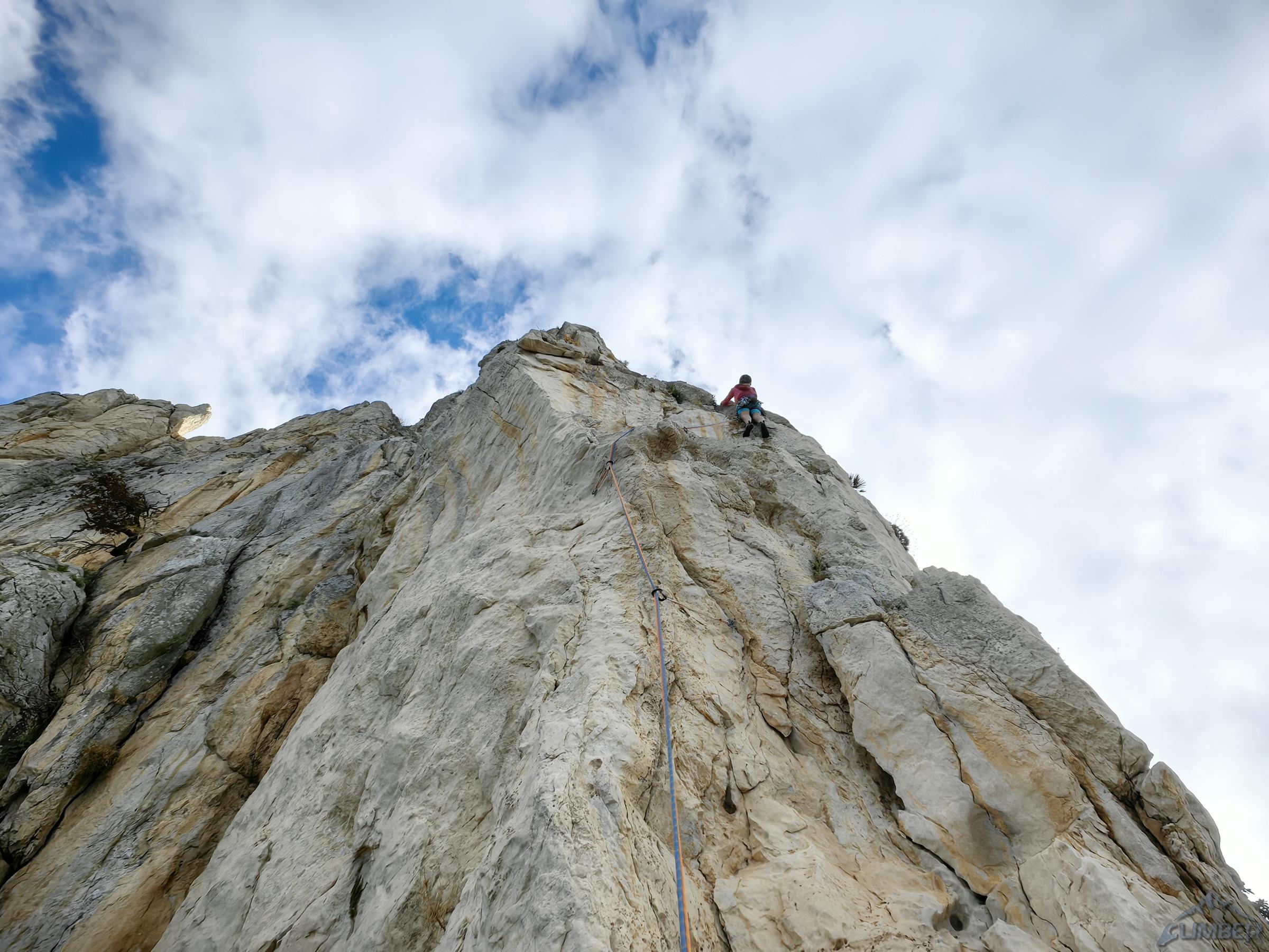 Północno-zachodni mur Monte Gallo ciągnie się od miasteczka Sferracavallo przez ponad dwa kilometry, na południowy wschód opada zaś niepozornymi wzgórzami. Masyw obejmuje kilka szczytów i turni – Quota 280 i Santa Margherita są dobrze opisane w nowym przewodniku i na stronie z jego skróconą wersją, TUTAJ. Drogi na pozostałych trzeba póki co wyszukiwać osobno, niektóre z nich wymienione są wśród sektorów opisanych TUTAJ. My póki co odwiedzamy dwie wspomniane ściany oraz Pizzo Sella – w sumie przechodzimy cztery lokalne klasyki. Na dwóch trudniejszych finalnie okazuje się, że muszę poprowadzić wszystkie wyciągi, Ani przypadają więc w całości dwie przystępniejsze drogi.