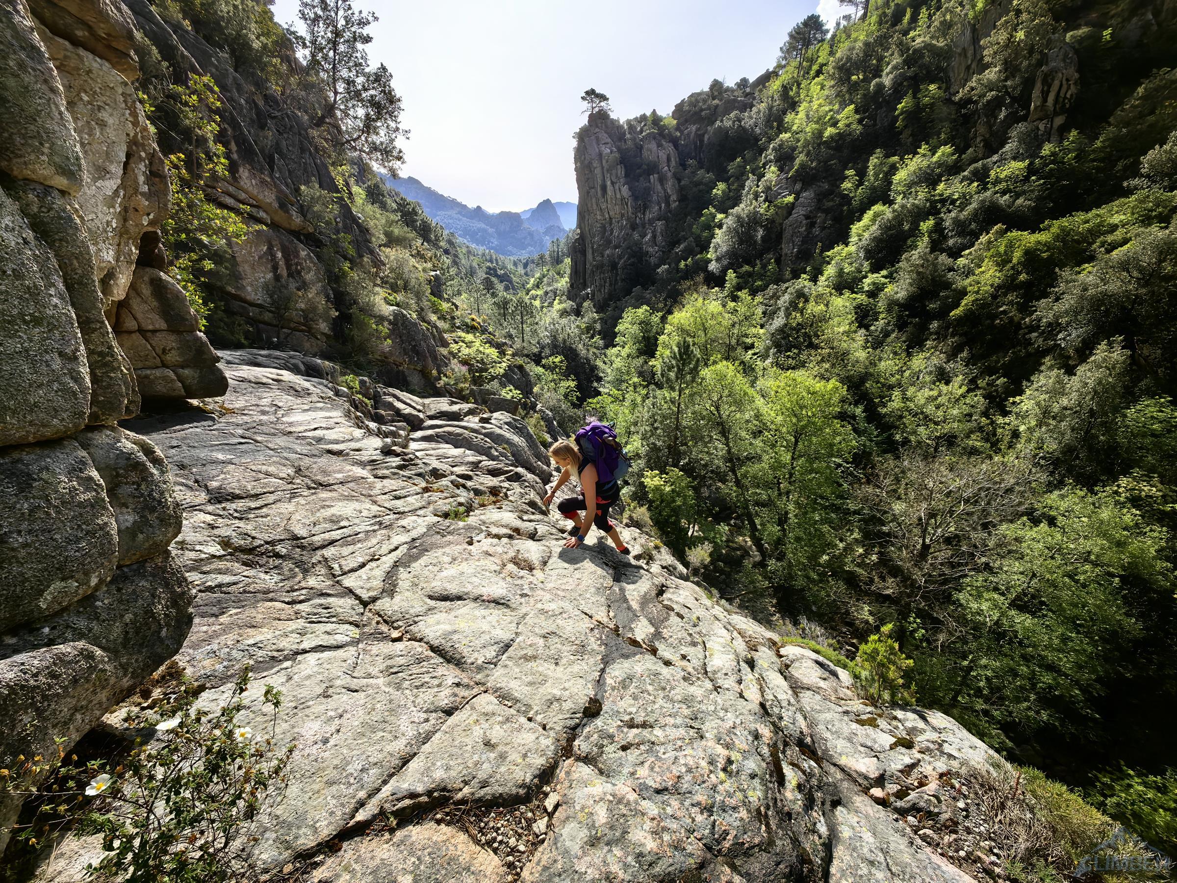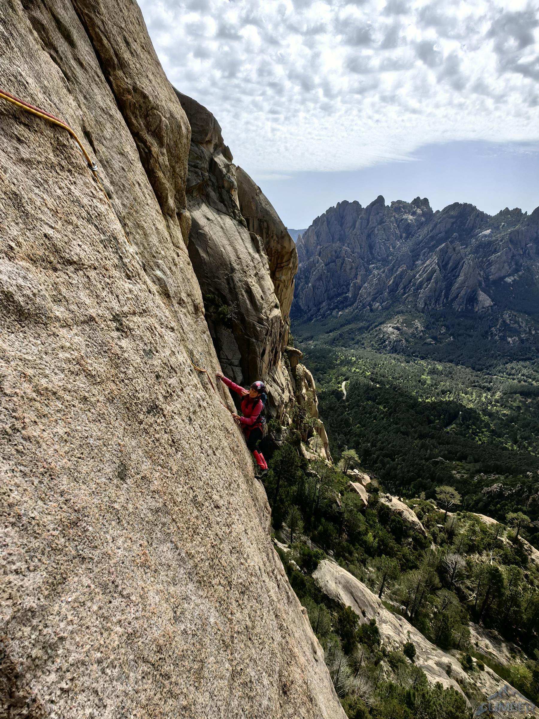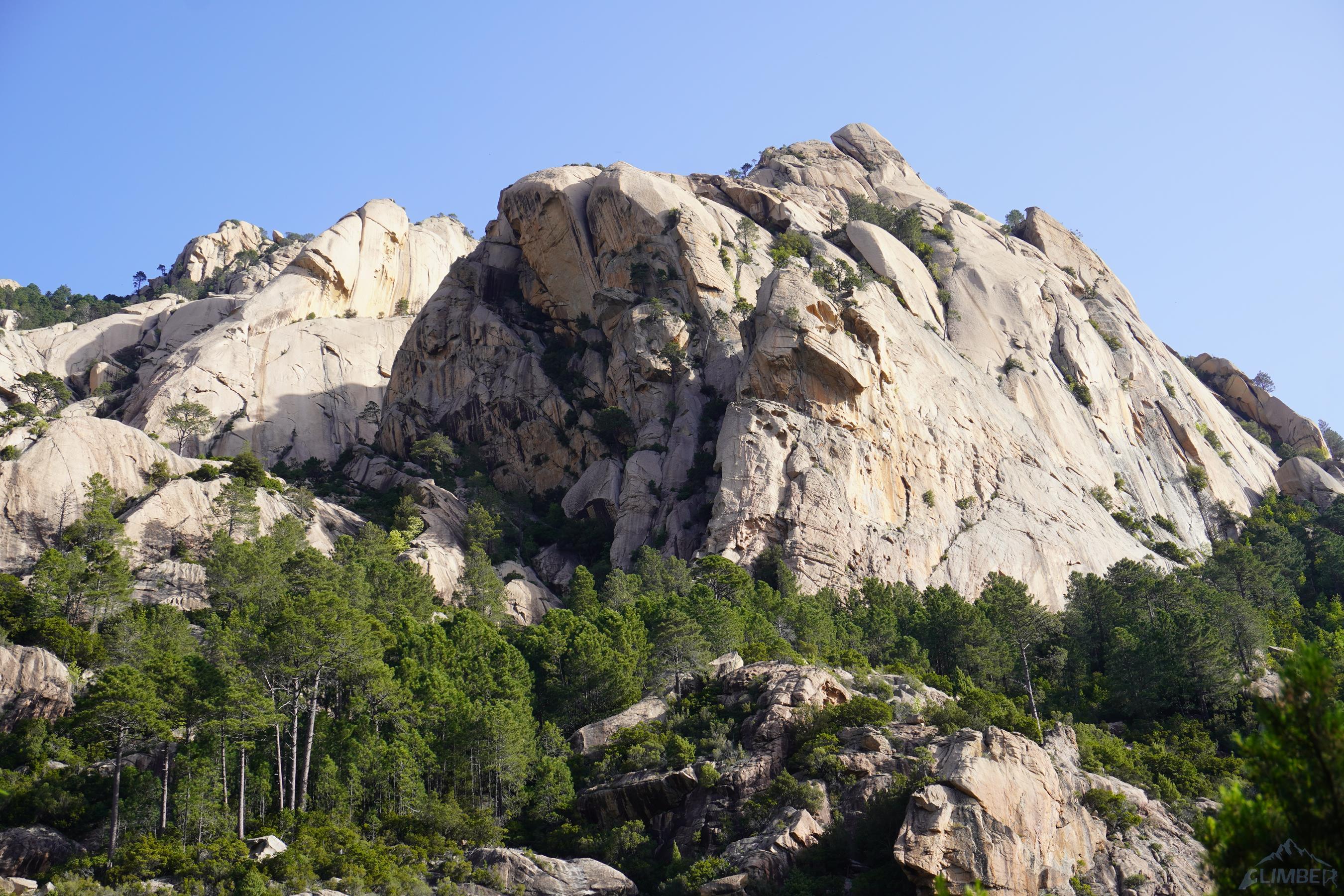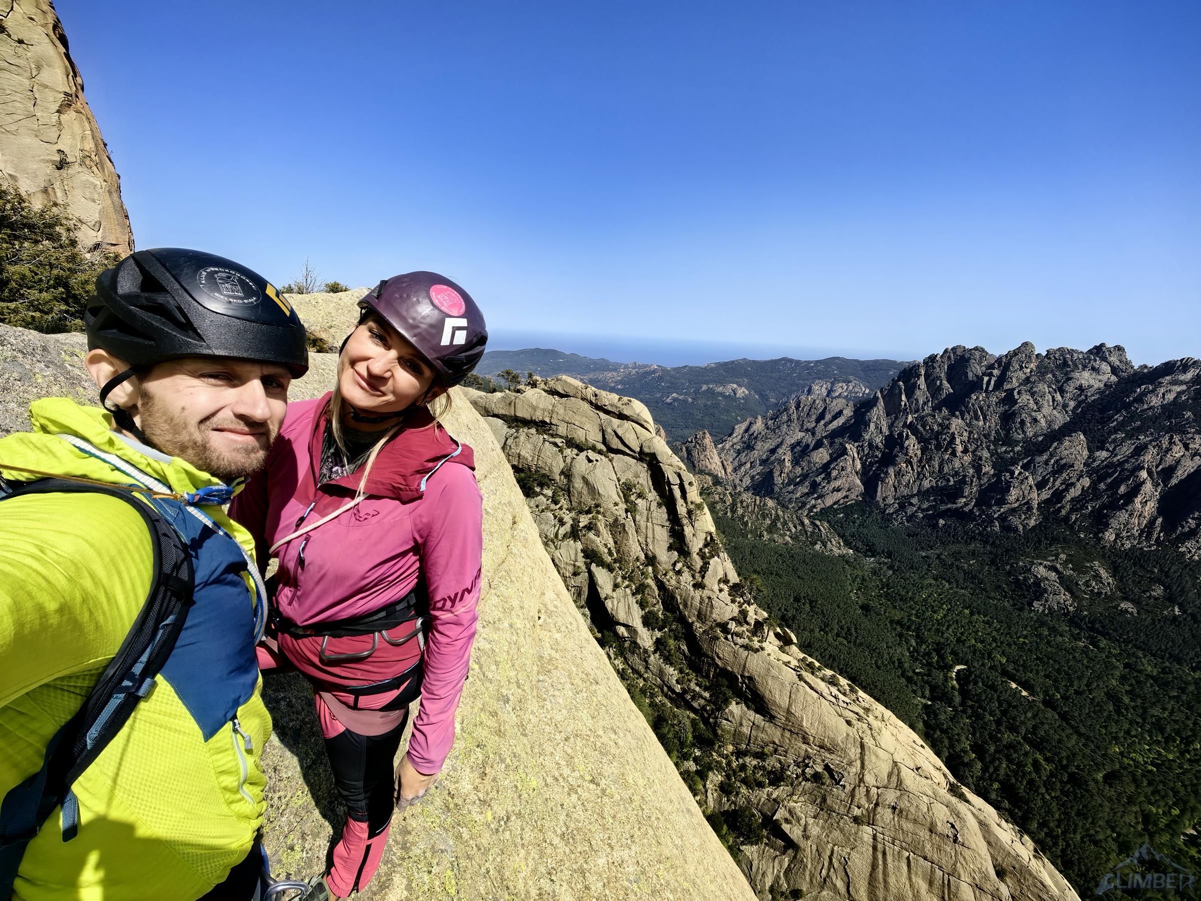 Drugiego dnia pobytu w Bavelli wybieramy się na najsłynniejszą wg przewodnika drogę Korsyki - Le dos de l'éléphant (6b+/c 320m) na Punta di u Corbu. Linia swego czasu uchodziła za najpiękniejszą granitową drogę Francji – takim mianem ochrzciła ją Catherine Destivelle. Trudnościami i zapewne urodą przebiją ją co prawda obecnie sąsiedni Jeef (7b), nadal jednak wizyta jest wręcz obowiązkowa dla wspinaczy odwiedzających wyspę i mających na tyle doświadczenia by się z nią zmierzyć. O powadze nie decydują tyle trudności, co kilkumetrowe odległości między spitami na słynnych rajbungach prowadzących tytułowym Grzbietem Słonia. Najlepiej zresztą zaliczyć obie linie, co zresztą jest w planach 😊. Dla mocarzy są też imponujące linie 7c (trad) oraz 8a i 8b (obite)!