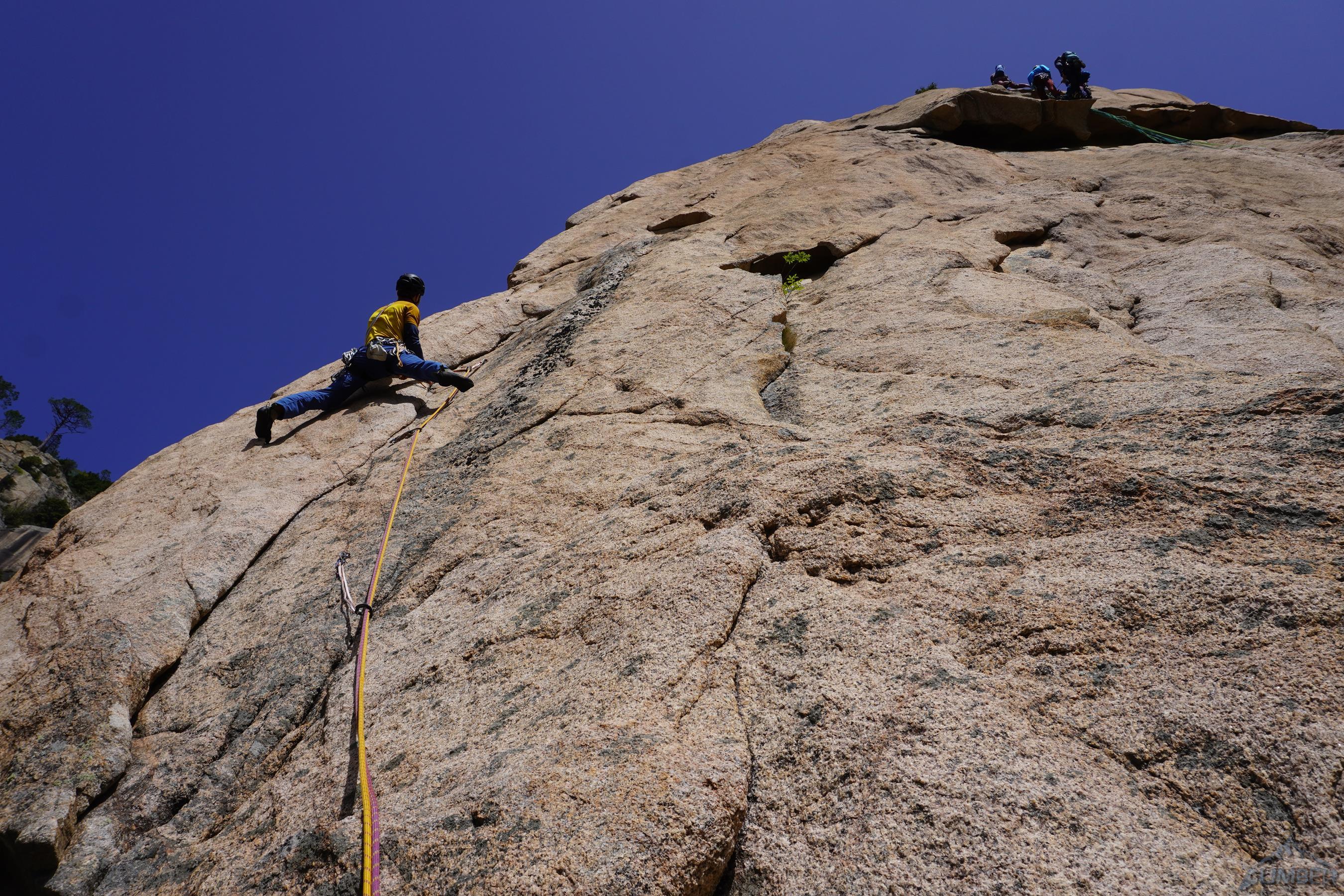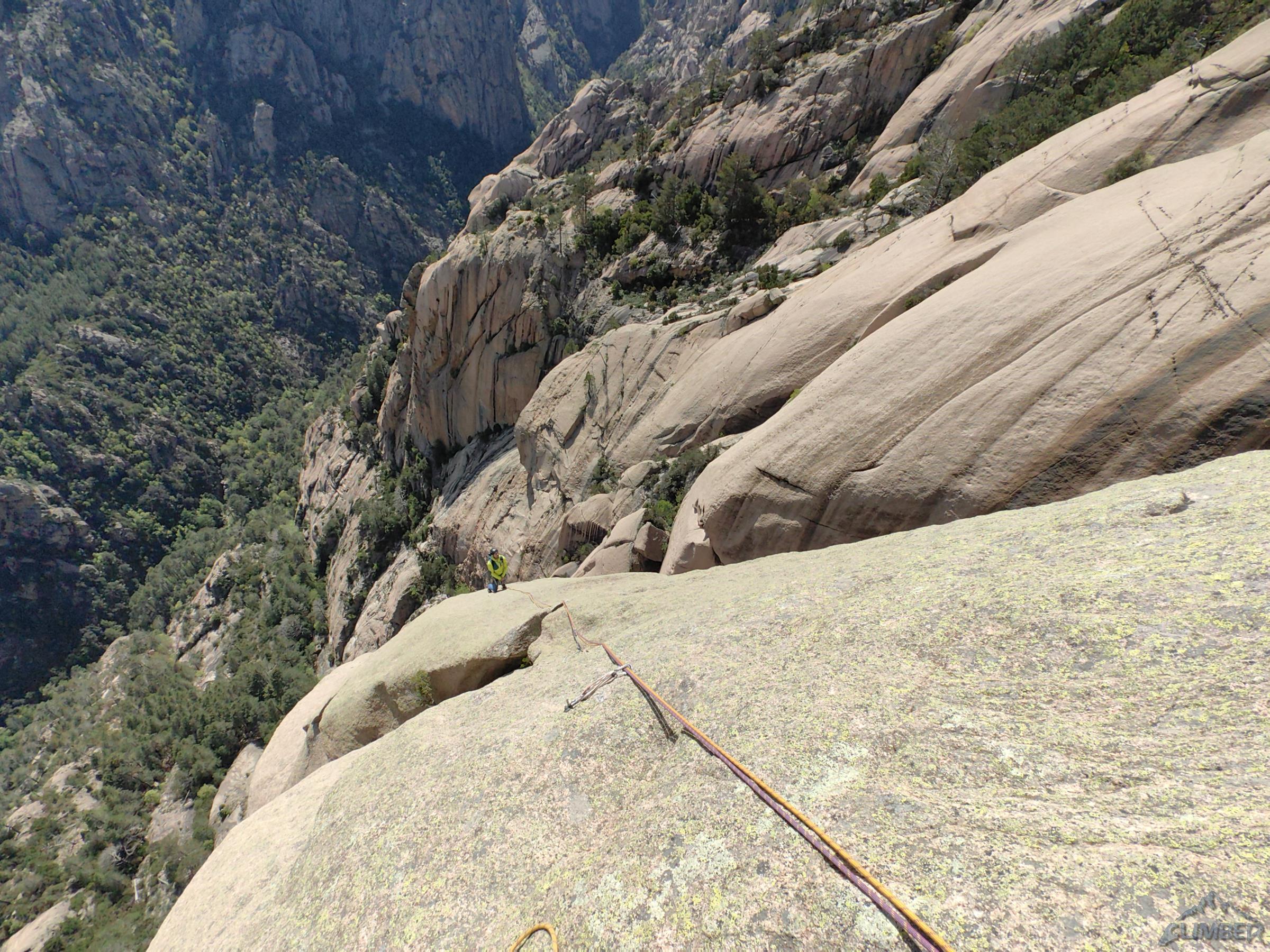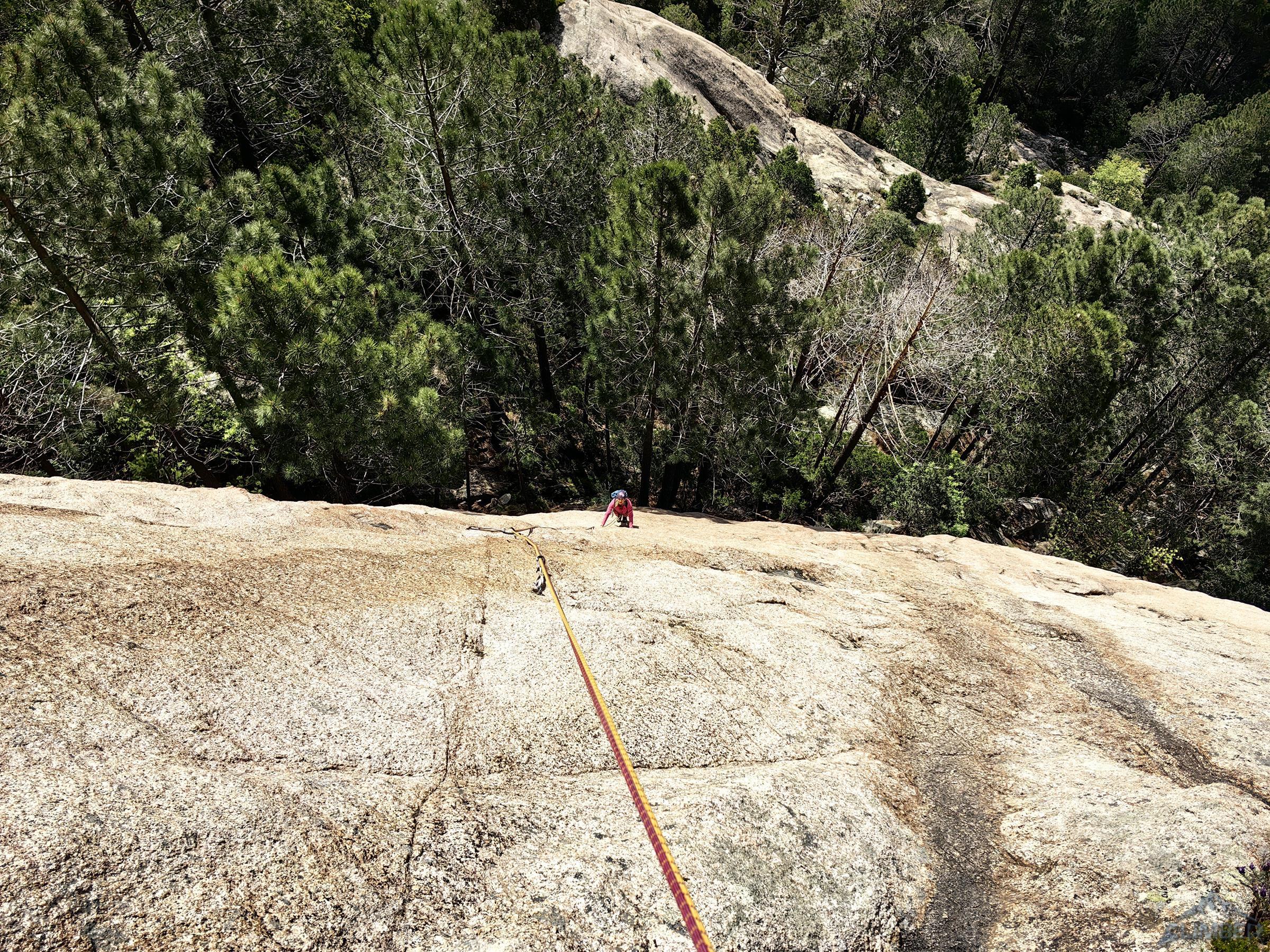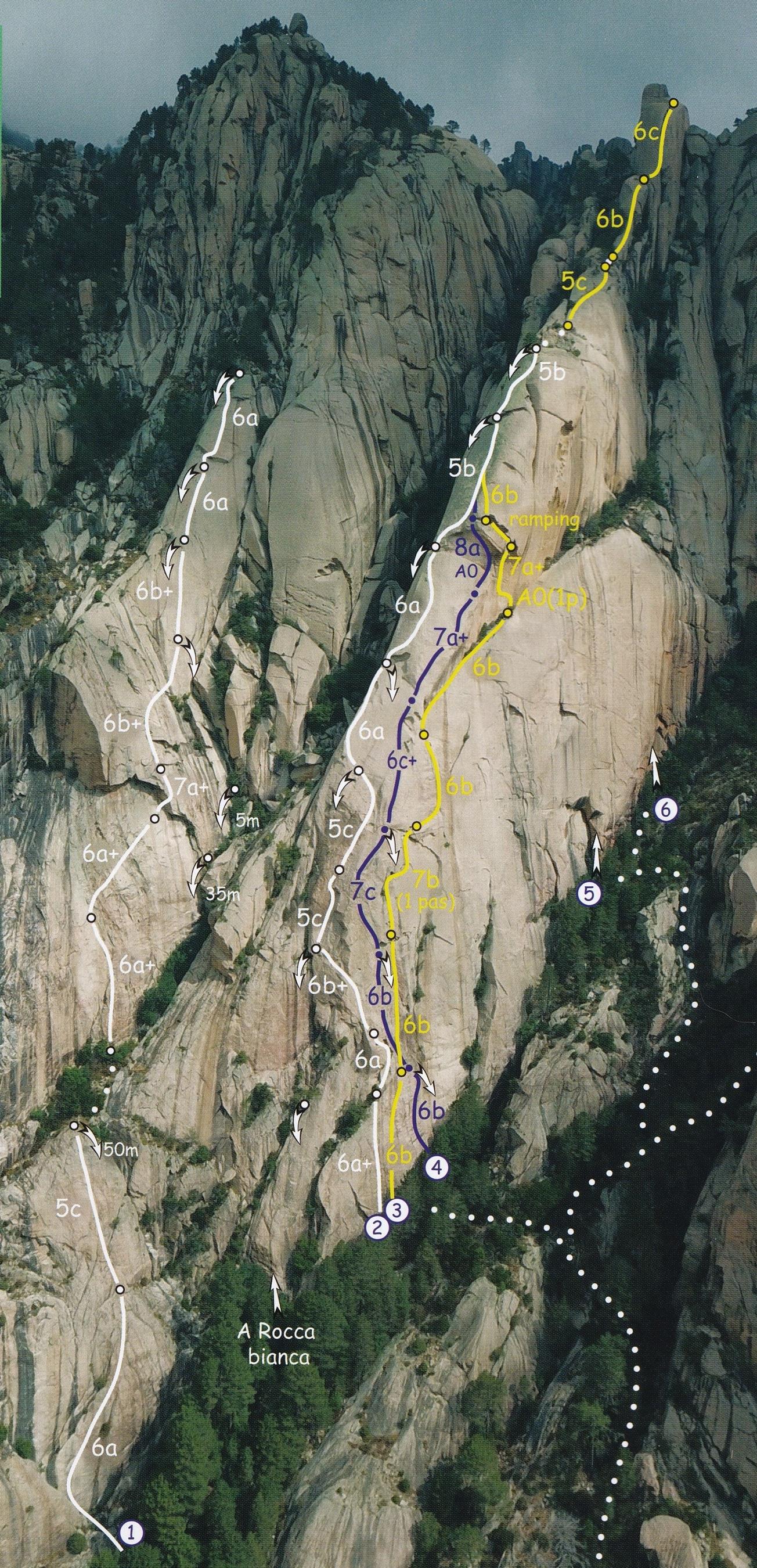 Drugiego dnia pobytu w Bavelli wybieramy się na najsłynniejszą wg przewodnika drogę Korsyki - Le dos de l'éléphant (6b+/c 320m) na Punta di u Corbu. Linia swego czasu uchodziła za najpiękniejszą granitową drogę Francji – takim mianem ochrzciła ją Catherine Destivelle. Trudnościami i zapewne urodą przebiją ją co prawda obecnie sąsiedni Jeef (7b), nadal jednak wizyta jest wręcz obowiązkowa dla wspinaczy odwiedzających wyspę i mających na tyle doświadczenia by się z nią zmierzyć. O powadze nie decydują tyle trudności, co kilkumetrowe odległości między spitami na słynnych rajbungach prowadzących tytułowym Grzbietem Słonia. Najlepiej zresztą zaliczyć obie linie, co zresztą jest w planach 😊. Dla mocarzy są też imponujące linie 7c (trad) oraz 8a i 8b (obite)!