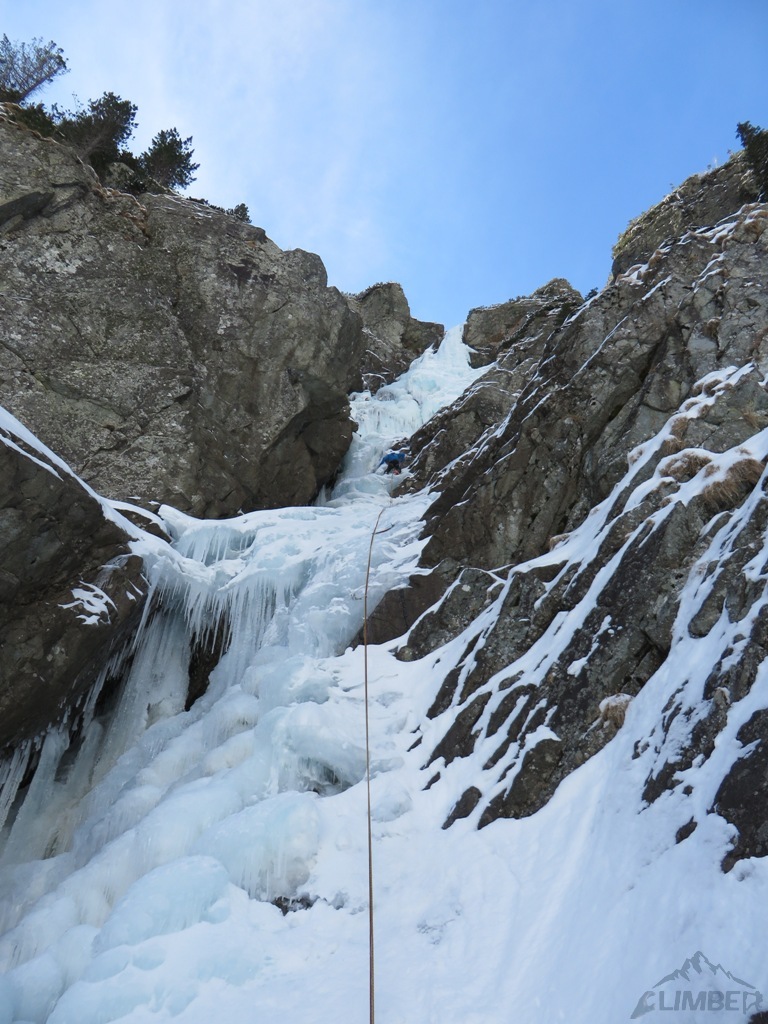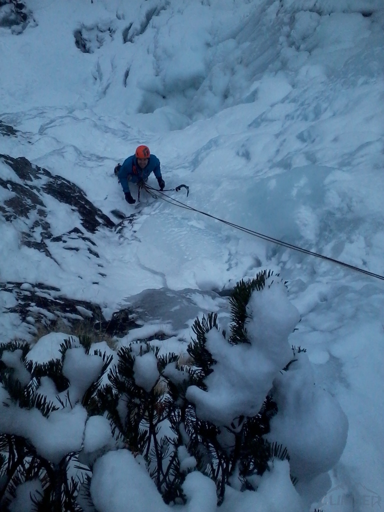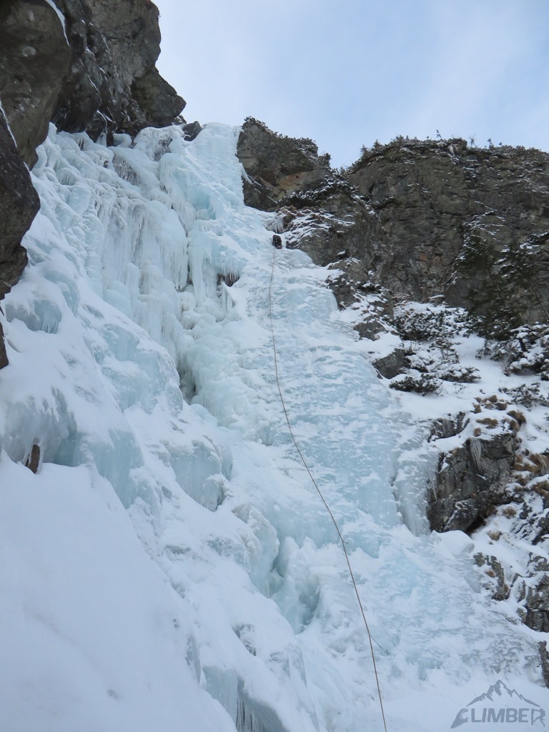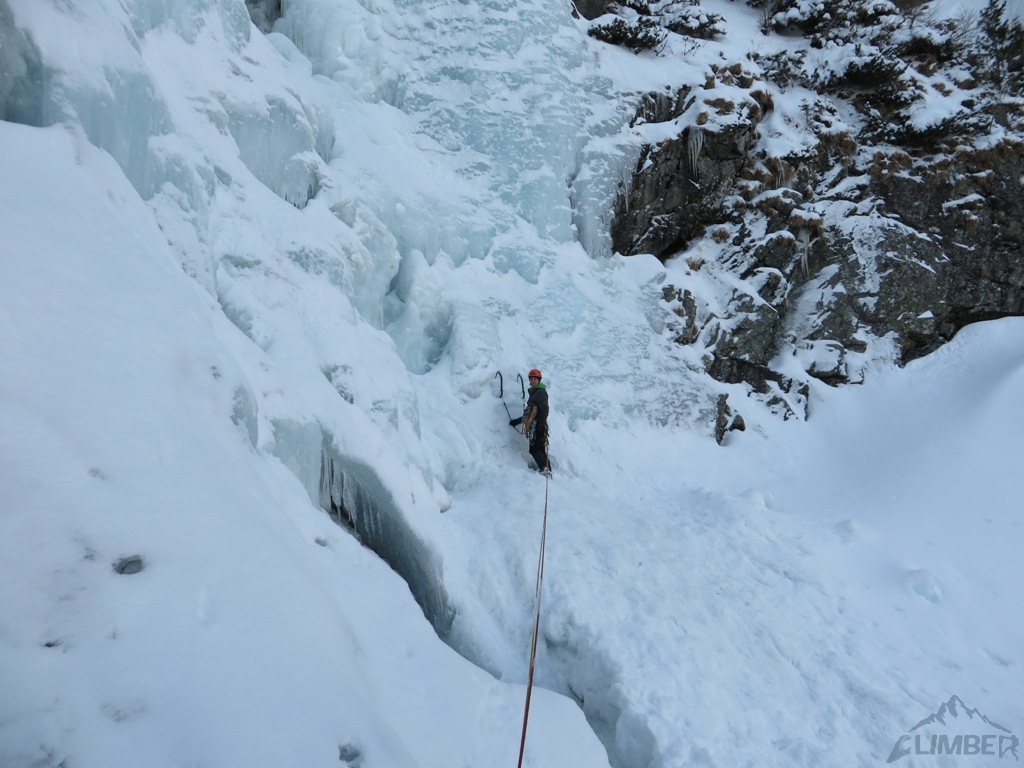 Na sobotę (jedyny pogodny dzień) nie wyszedł planowany mikst na Pustej Straży (brak chętnych), wbiliśmy więc z Krzyśkiem na Lodospad Ciężki, który nie do końca był jeszcze gotowy na dziabanie 😉. Reszta towarzystwa albo próbowała coś udziałać na turach albo wybrała się turystycznie na Młynarza. Niedziela przywitała nas dodatnią temperaturą i deszczem, toteż wszyscy ze smutkiem zarządziliśmy odwrót do cywilizacji.