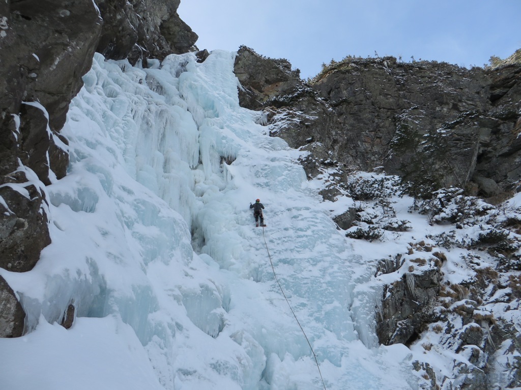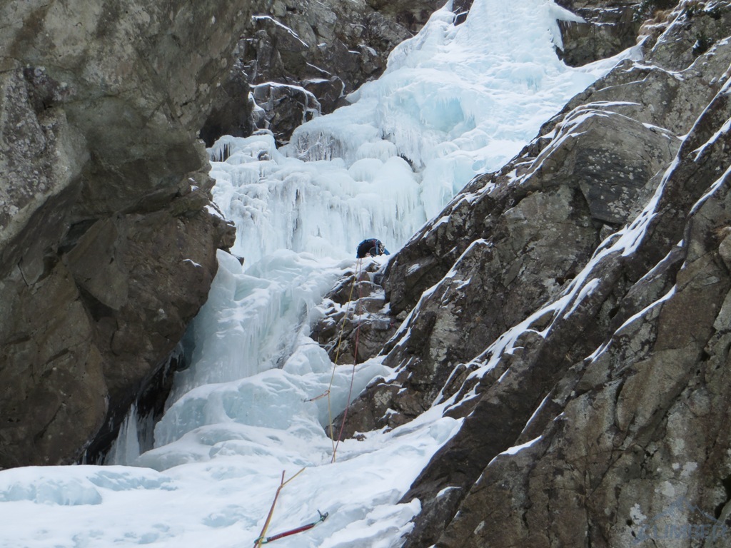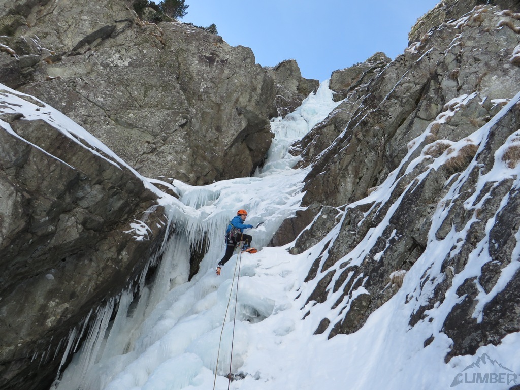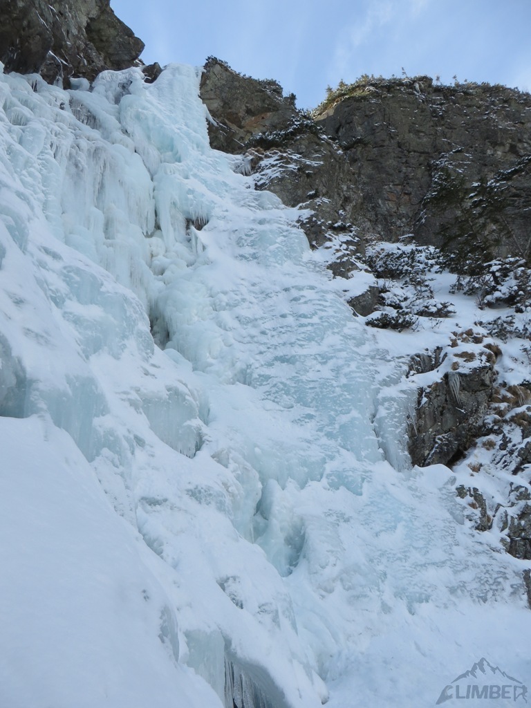 Na sobotę (jedyny pogodny dzień) nie wyszedł planowany mikst na Pustej Straży (brak chętnych), wbiliśmy więc z Krzyśkiem na Lodospad Ciężki, który nie do końca był jeszcze gotowy na dziabanie 😉. Reszta towarzystwa albo próbowała coś udziałać na turach albo wybrała się turystycznie na Młynarza. Niedziela przywitała nas dodatnią temperaturą i deszczem, toteż wszyscy ze smutkiem zarządziliśmy odwrót do cywilizacji.