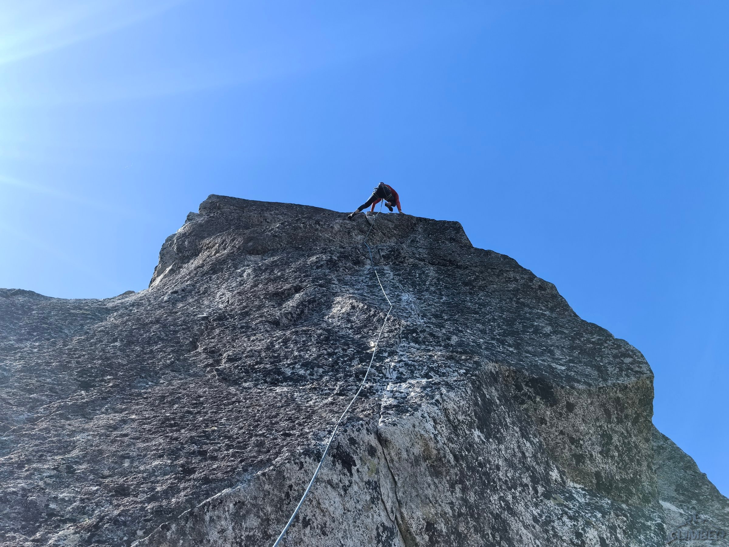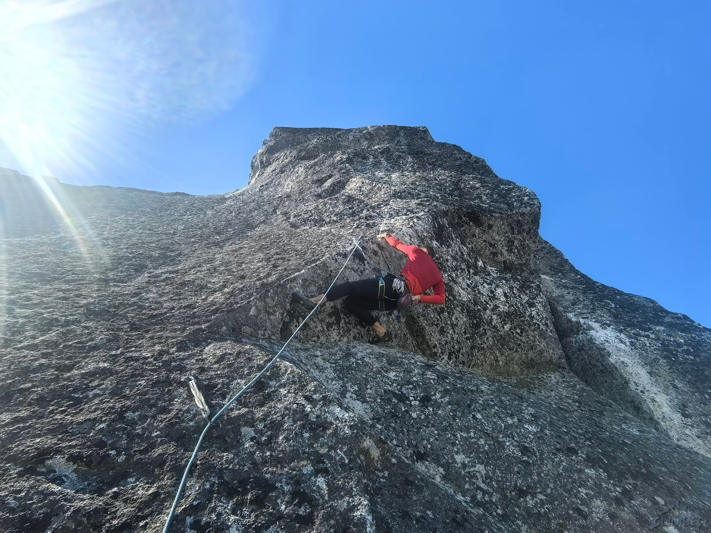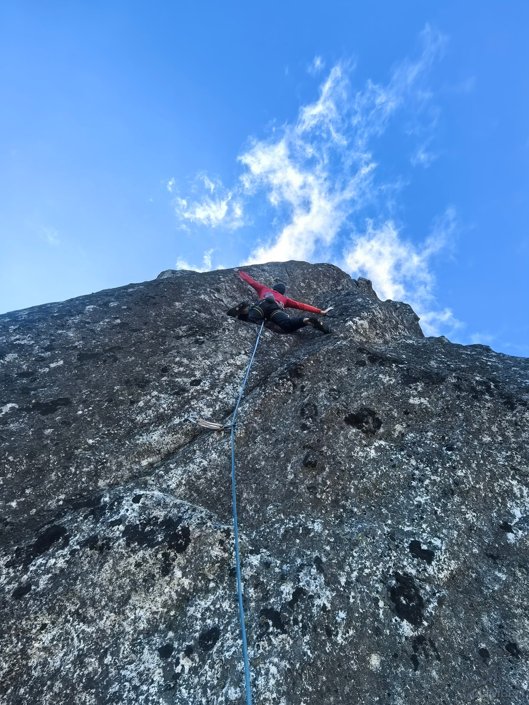 Kluczowy drugi (IX) odcinek jest kapitalny, sporo po krawądkach, góra przez okapiki, całość techniczno-siłowa z dużym ciągiem. Dysponujący sporym zapasem kolega sprawnie patentuje wszystkie fragmenty i przechodzi wyciąg klasycznie już w drugiej próbie choć potwierdza że to prawilne 7c. Myśląc o kolejnej drodze ja wstawiam się tylko raz i idziemy dalej – być może kiedyś przy okazji wybiorę się ponownie bo dla takiego wyciągu warto!