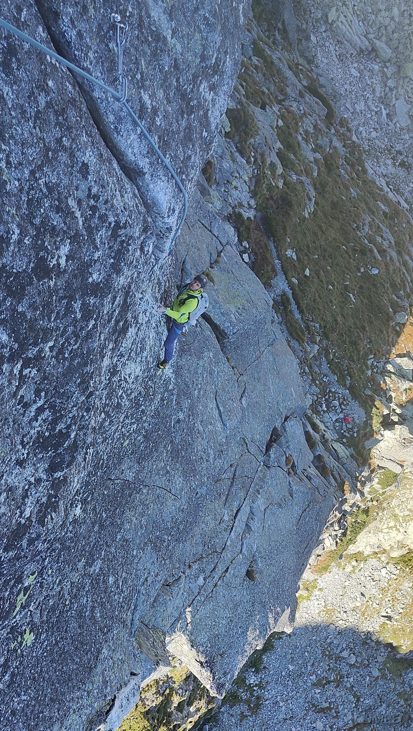 Trzeci odcinek (VIII-) oferuje fajne wspinanie na pierwszych metrach, gdzie kluczowe są dobre ustawienia – znalazłem dobry patent i nie było trudno ale kolega przekombinował i stwierdził co innego 😉. Obaj prowadzimy jednak w pierwszej próbie zjeżdżając po przejściach do stanowiska i dalej wzdłuż drogi 20 i 30 metrów pod ścianę – mając linę pojedynczą.