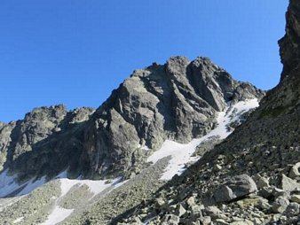 Pierwsze drogi w polskich Tatrach na koncie, czas spróbować czegoś na Słowacji. A że Ostry Szczyt zawsze bardzo mi się podobał, to właśnie jego ścianę planujemy przejść. Wybieramy jeden z klasyków - Drogę Motyki (IV/V). Do mnie i Tomka dołączają jeszcze Krzysiek z Ryśkiem, debiutujący jako taternicy. Droga dostarcza nam wielu wrażeń, również przez przypadkowe wejście w piątkowy wariant czy też szukanie ostatniego stanowiska zjazdowego. Pod ścianą meldujemy się po kilku godzinach i jesteśmy bardzo usatysfakcjonowani.