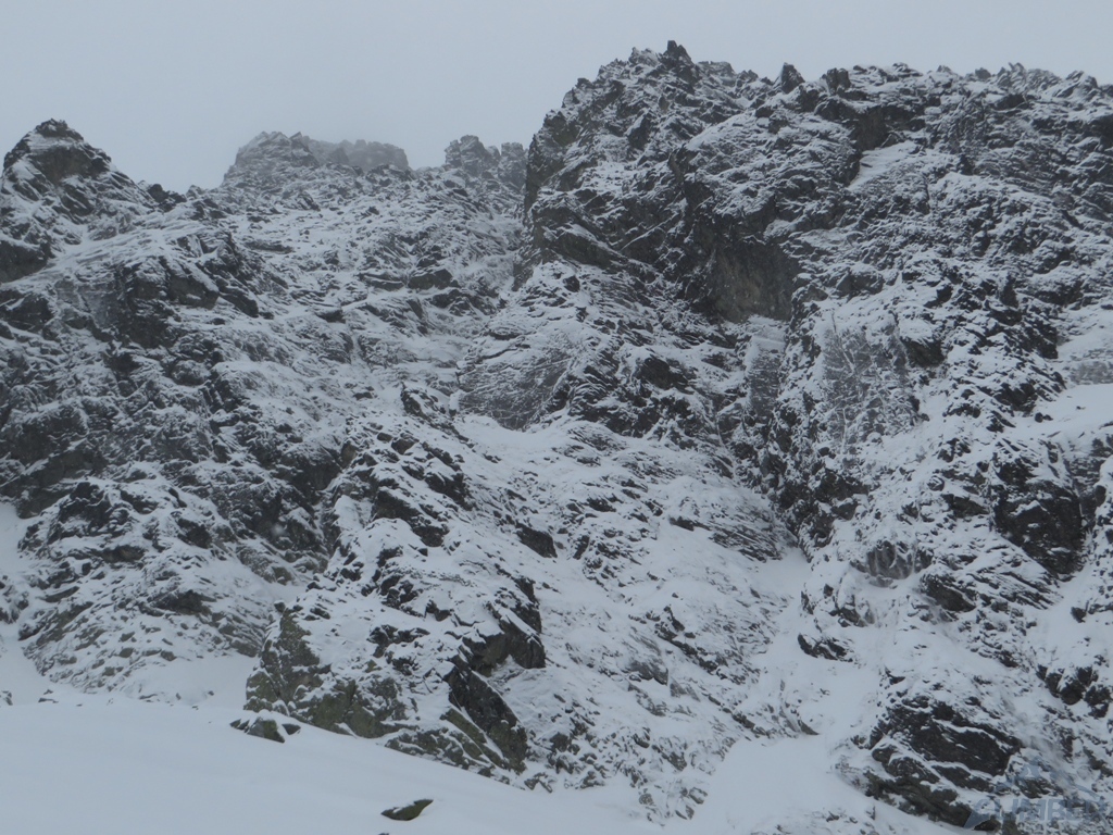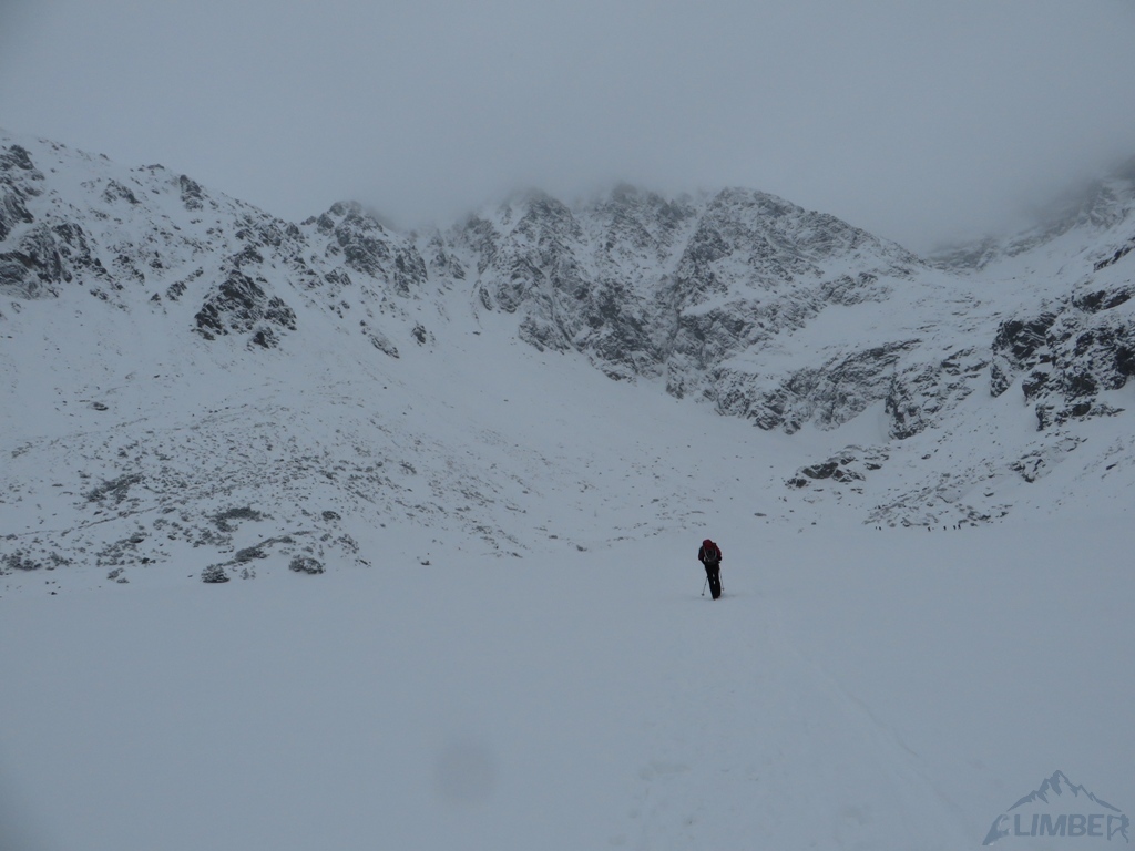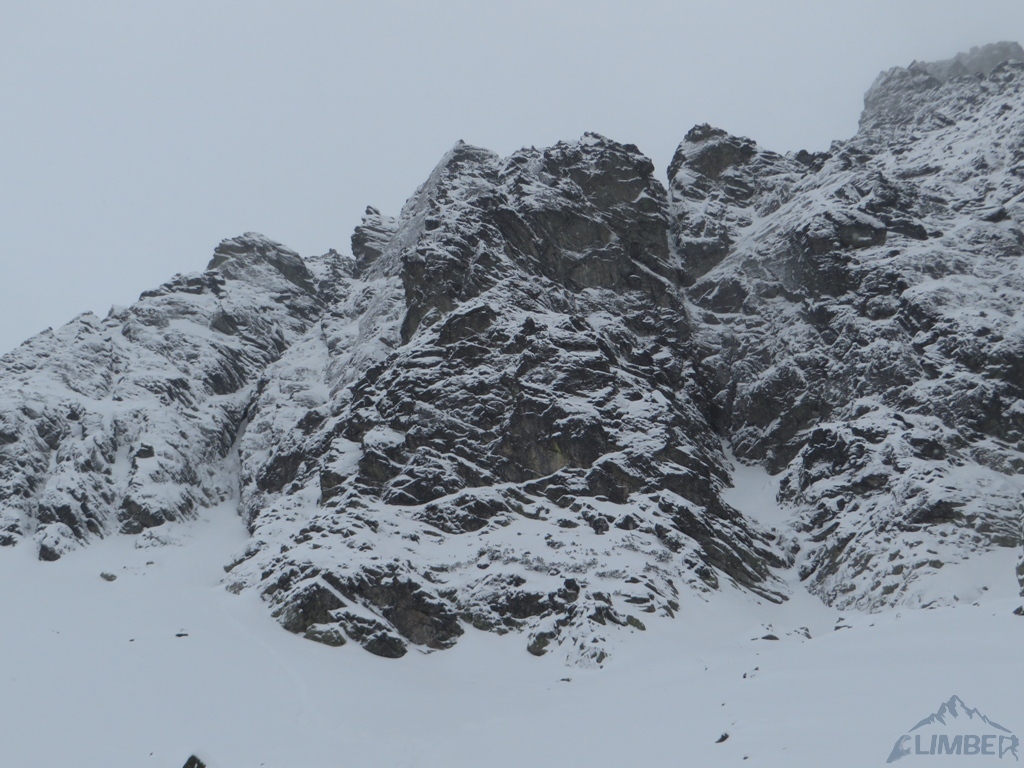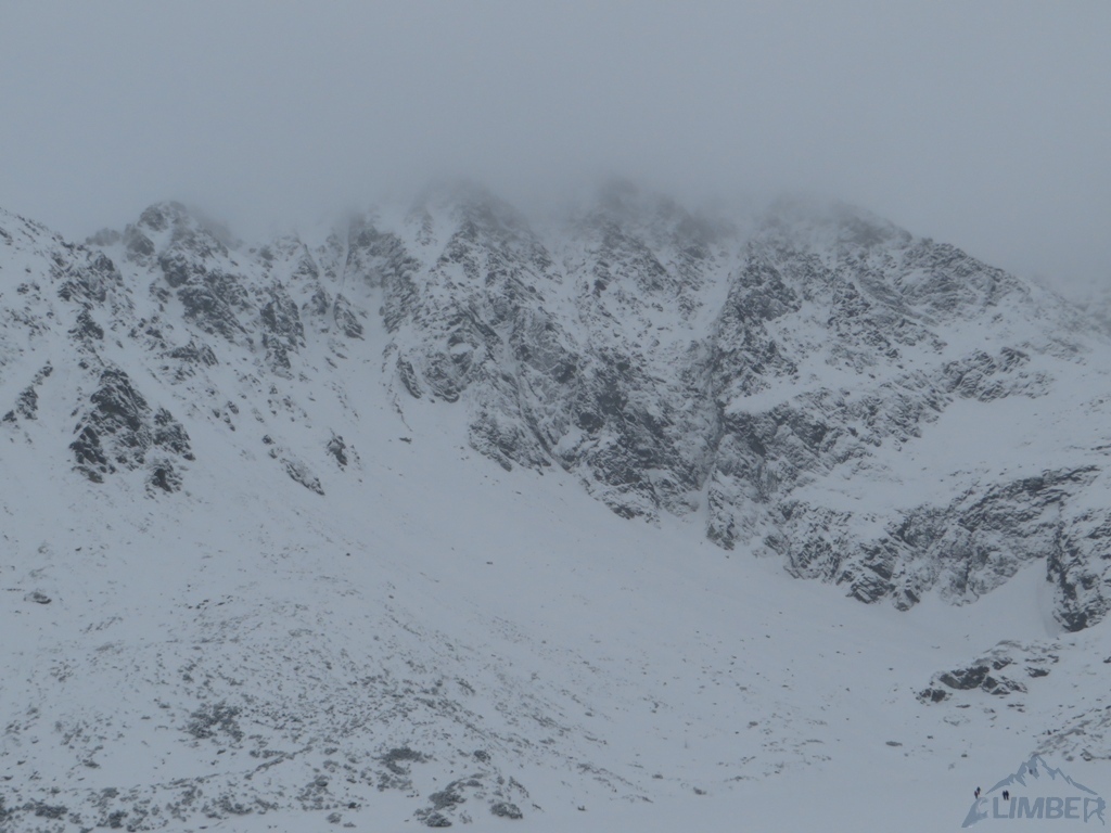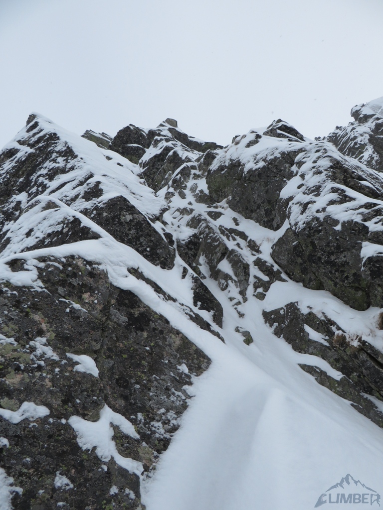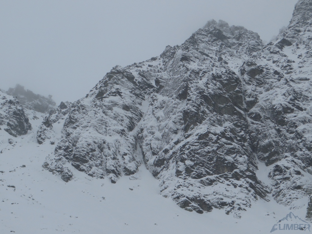Drugi dzień pobytu na Hali, pogoda nadal do bani 😉. Warunki mało sprzyjające - wszystkie płyty zasypane świeżym śniegiem, wyszukiwanie chwytów i stopni zajmowało sporo czasu, na dodatek mało co trzymało. Trzeci wyciąg zrobiony piątkowym wariantem (wg topo Kardasia). Droga to oczywiście klasyk, radziłbym jednak robić ją w miarę dobrych warunkach bo można się zdziwić i zabawić na niej dłużej niż się planowało...