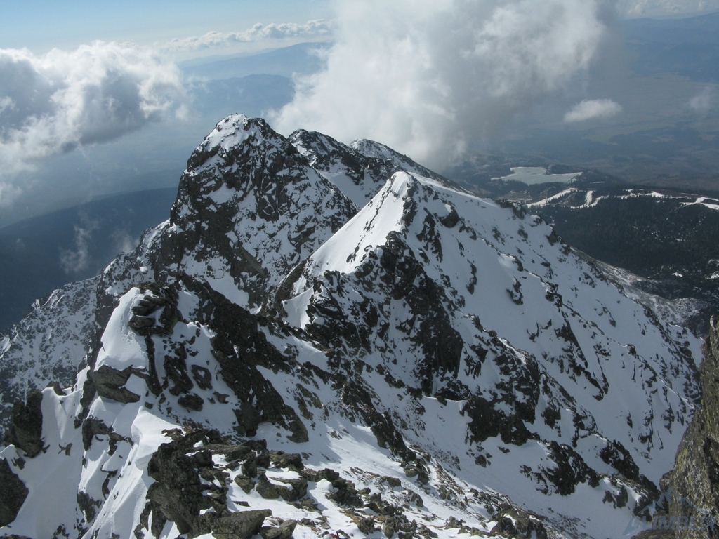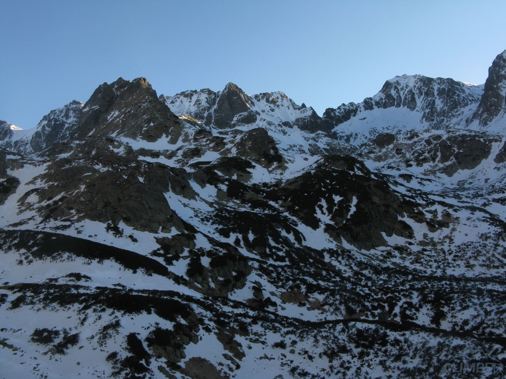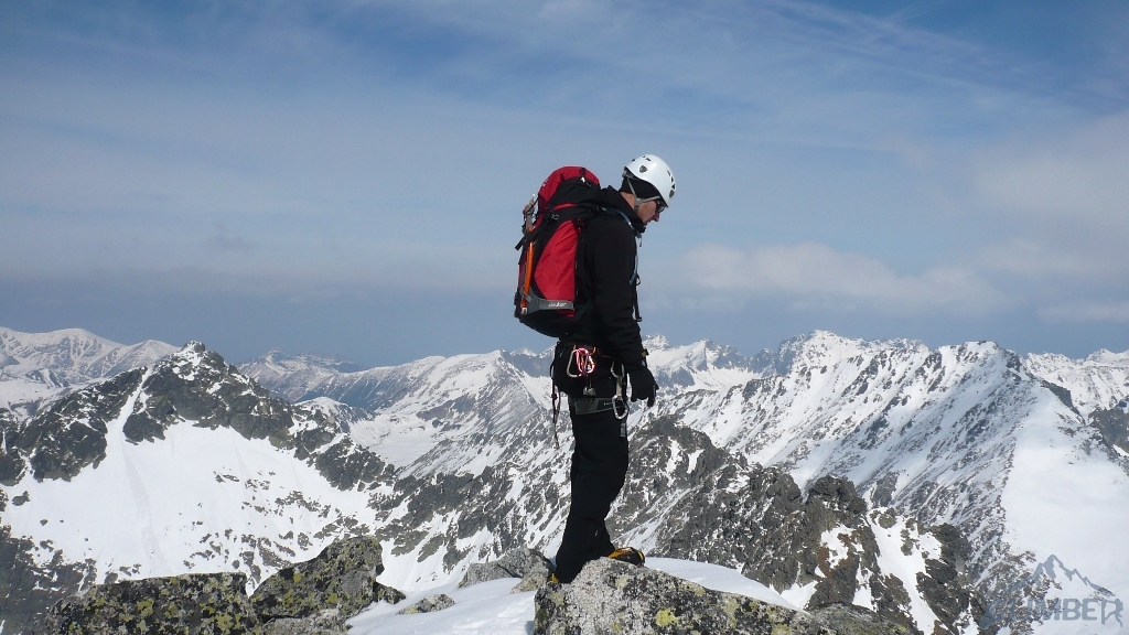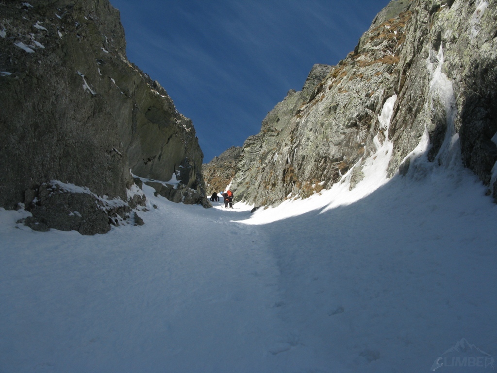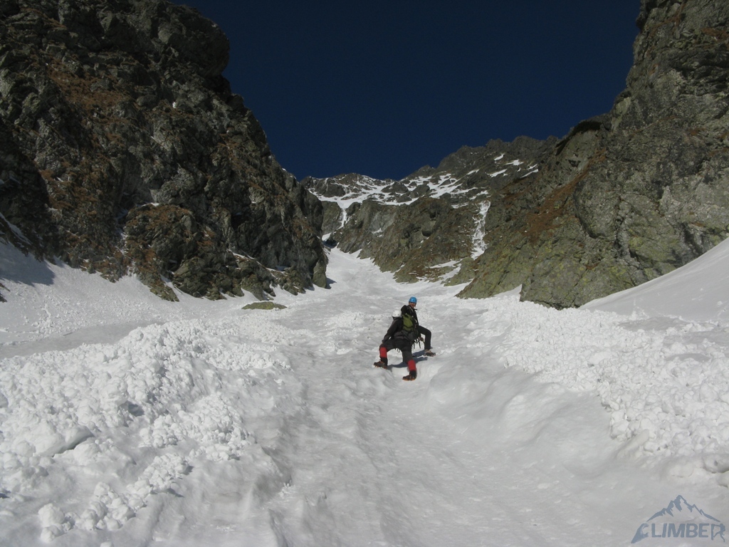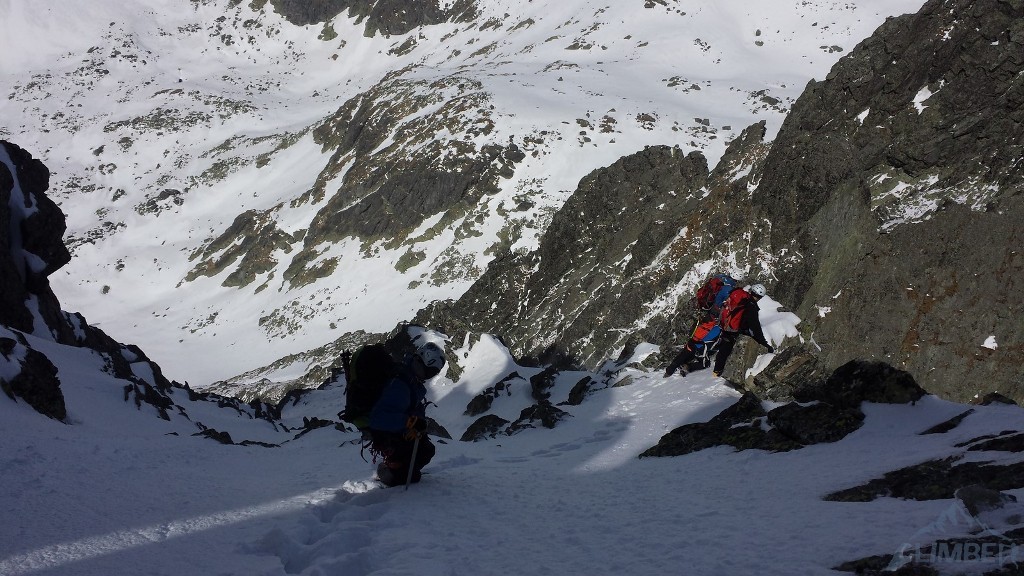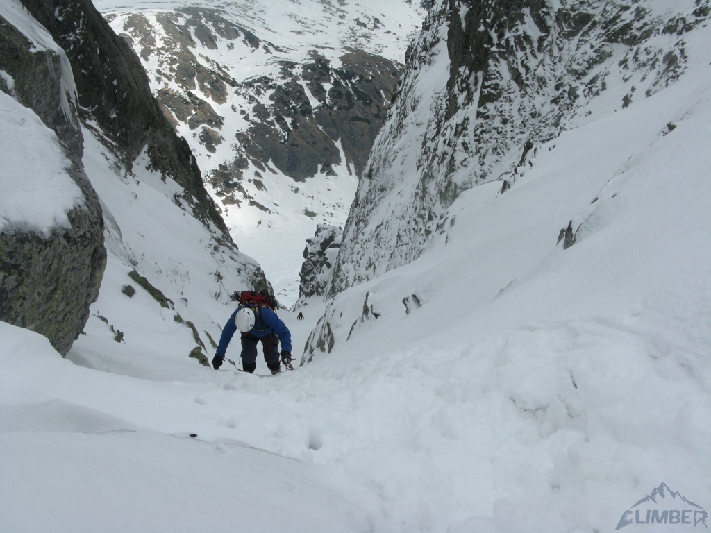 Pomysł na wejście na Szatana Czerwonym Żlebem podpatrzyłem od kolegi Łukasz (Madnessa) prowadzącego blog Mountain Adventure. Zbieramy sporą ekipę i wcześnie rano podchodzimy do Mięguszowieckiej. Warunki w żlebie są bardzo dobre, dlatego rezygnujemy z asekurowania się. Grań jest już łatwa, a na zejściu jedyne trudne miejsce pokonujemy zjazdem. Szybka i sprawna akcja i kolejna piękna góra zdobyta - tym razem drogą "prawie wspinaczkową".