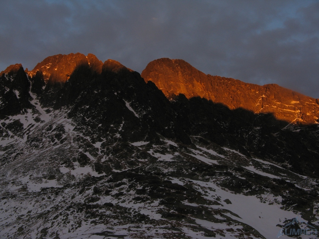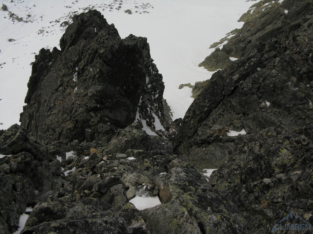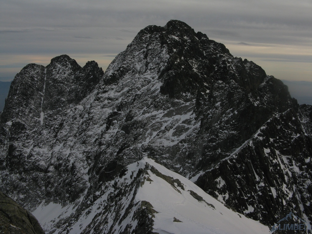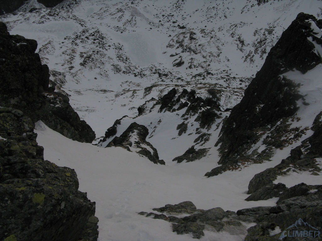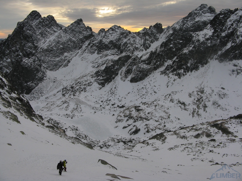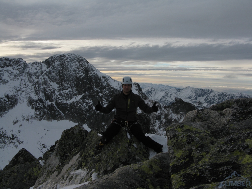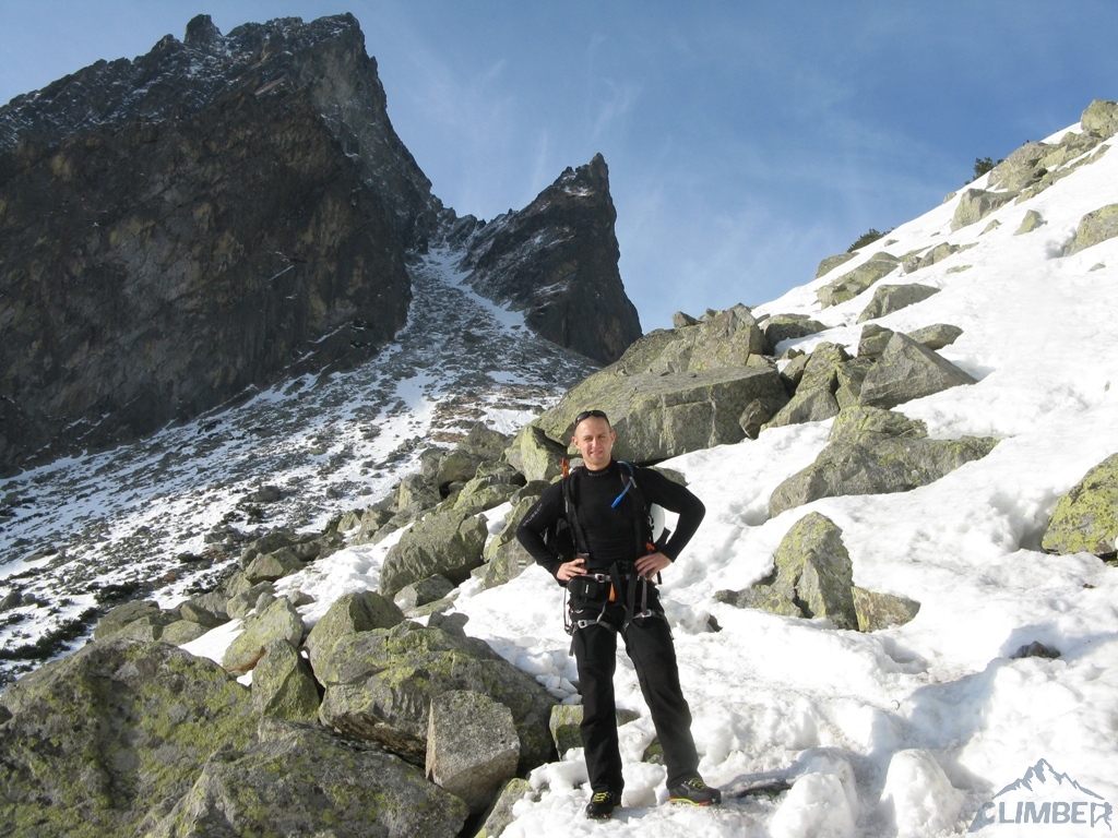 Nie mamy już odwrotu, w konsekwencji Rysiek przechodzi bez asekuracji zalodzony żleb, ja natomiast w tym samym stylu rozprawiam się z żebrem. Spotykamy się pod szczytem i wymieniamy wrażeniami, po czym już na spokojnie schodzimy do naszej bazy - Bilikovej Chaty na Hrebenioku, kolejnego dnia czeka bowiem Pośrednia.