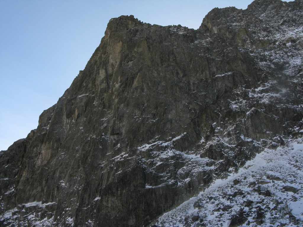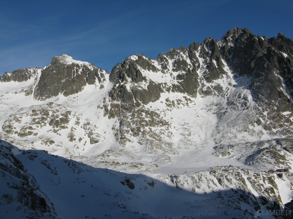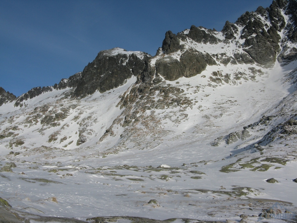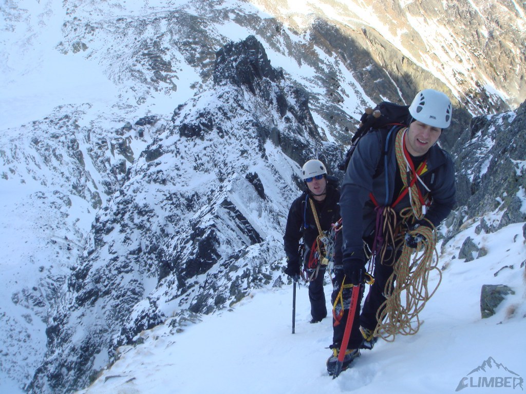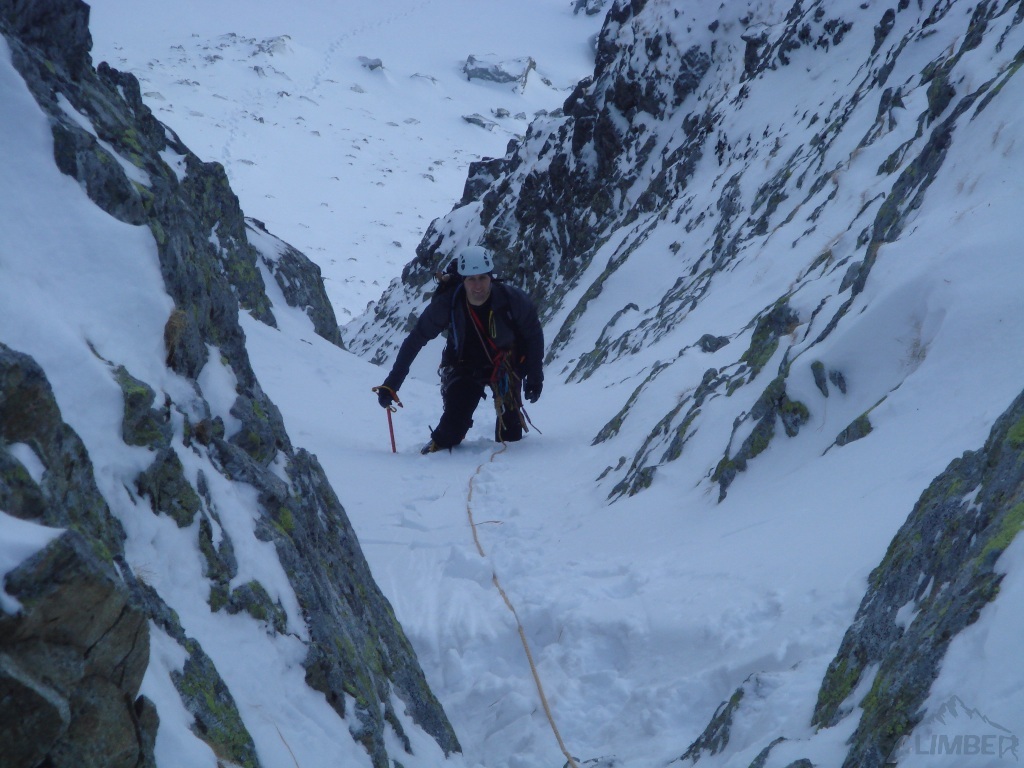 Następnego dnia po wejściu na Baranie Rogi ponownie podchodzimy do Terinki i atakujemy Pośrednią Grań. Niestety warunki śniegowe są bardzo złe - mnóstwo czasu zajmuje nam dotarcie na przełęcz za Żółtą Ścianą, a następnie przejście krótkiej grani doprowadzającej do Ławki Doubkego. Ta okazuje się mocno zabita śniegiem więc w końcu odpuszczamy dalszą walkę i zaliczamy odwrót.