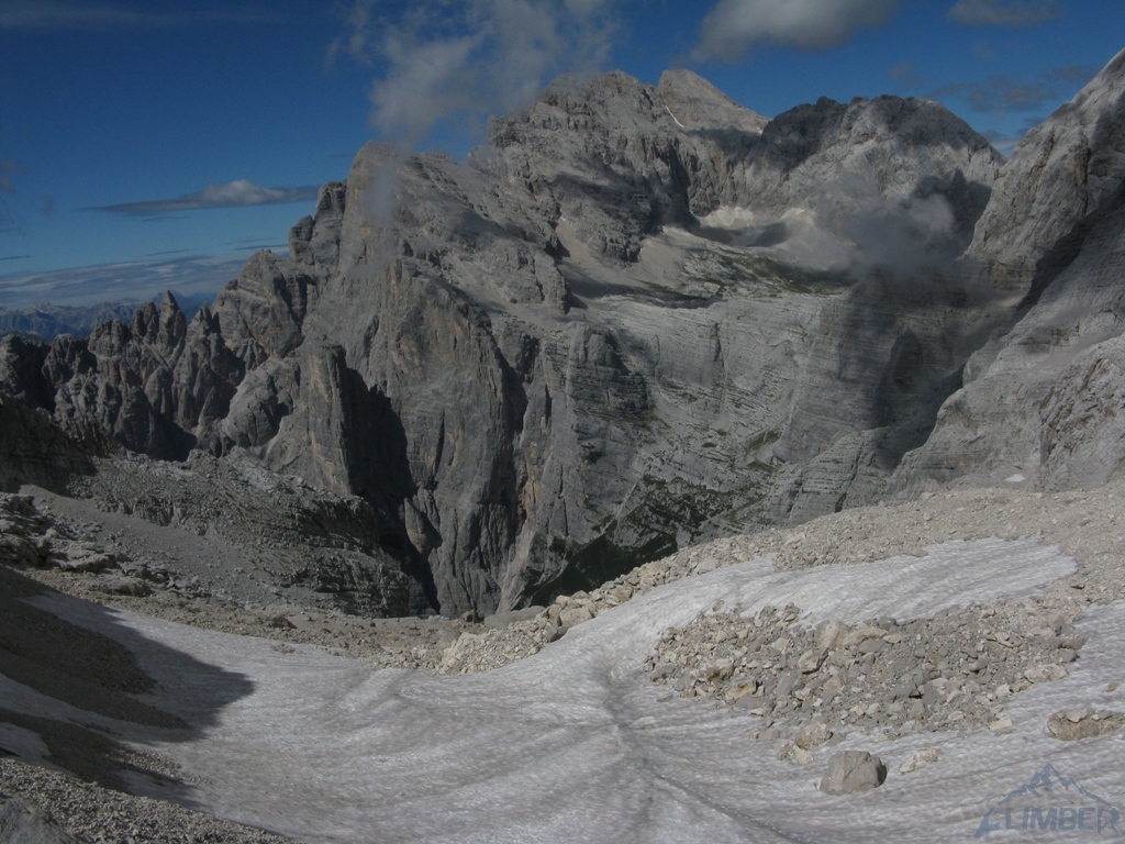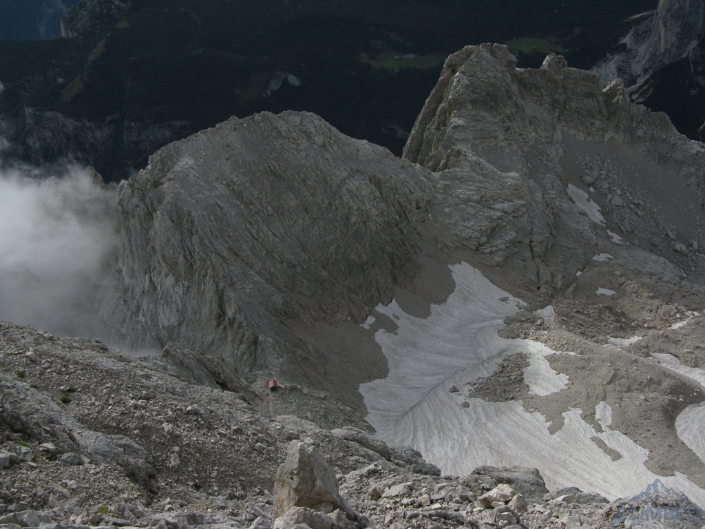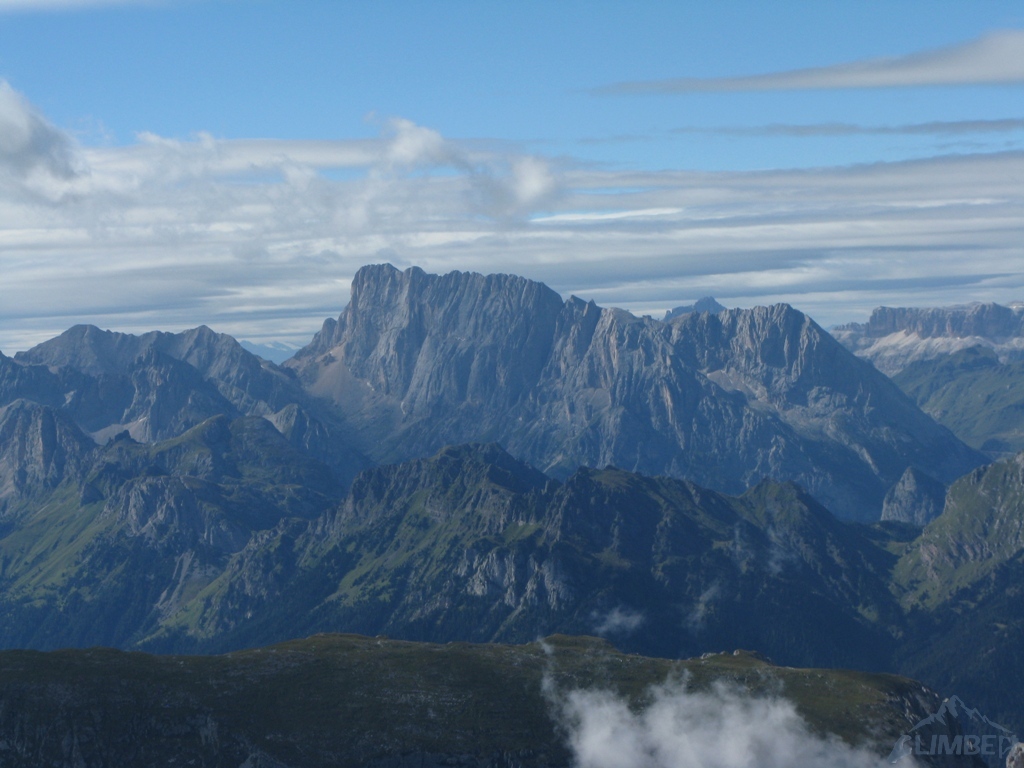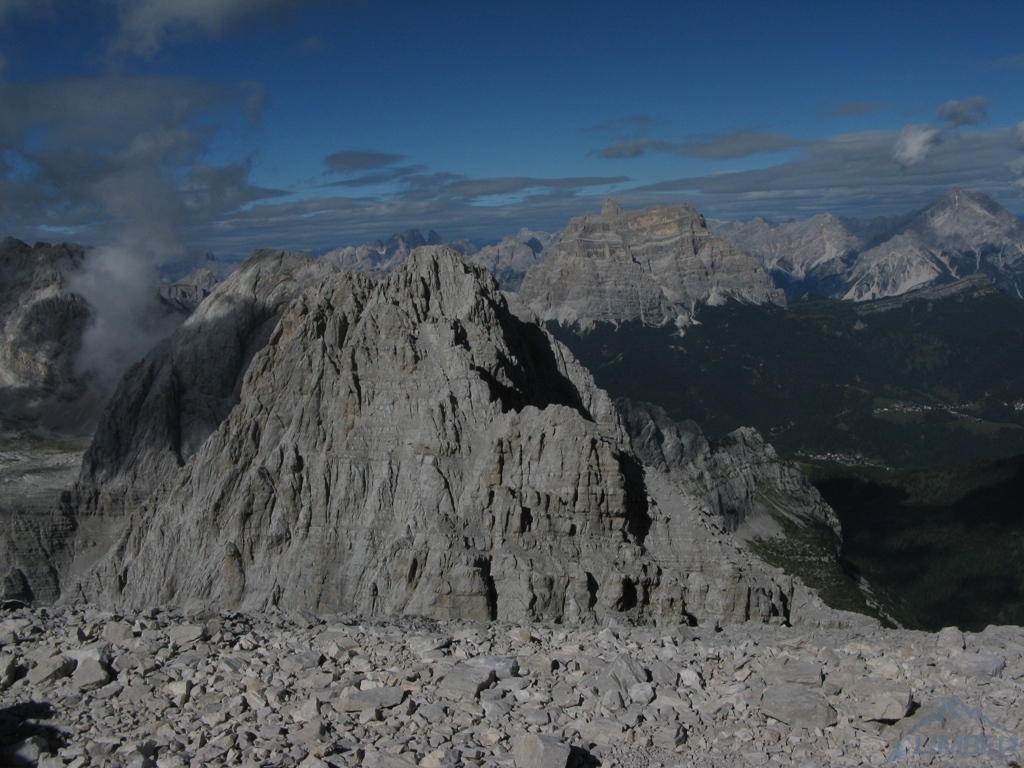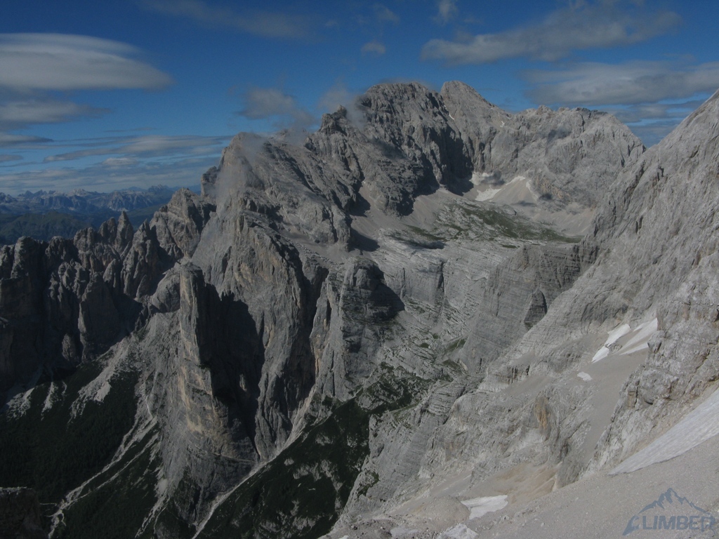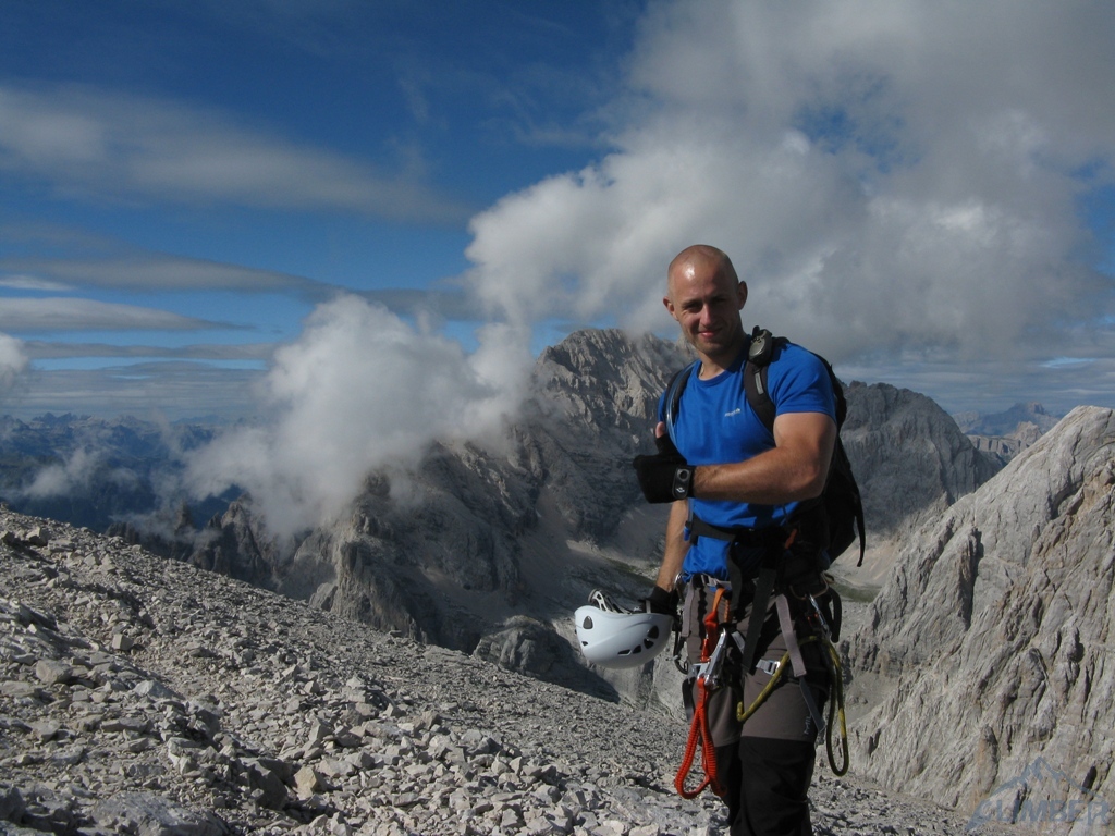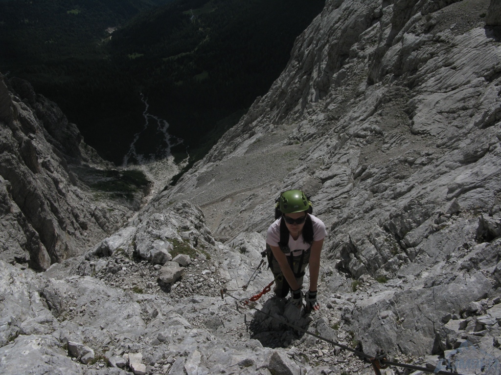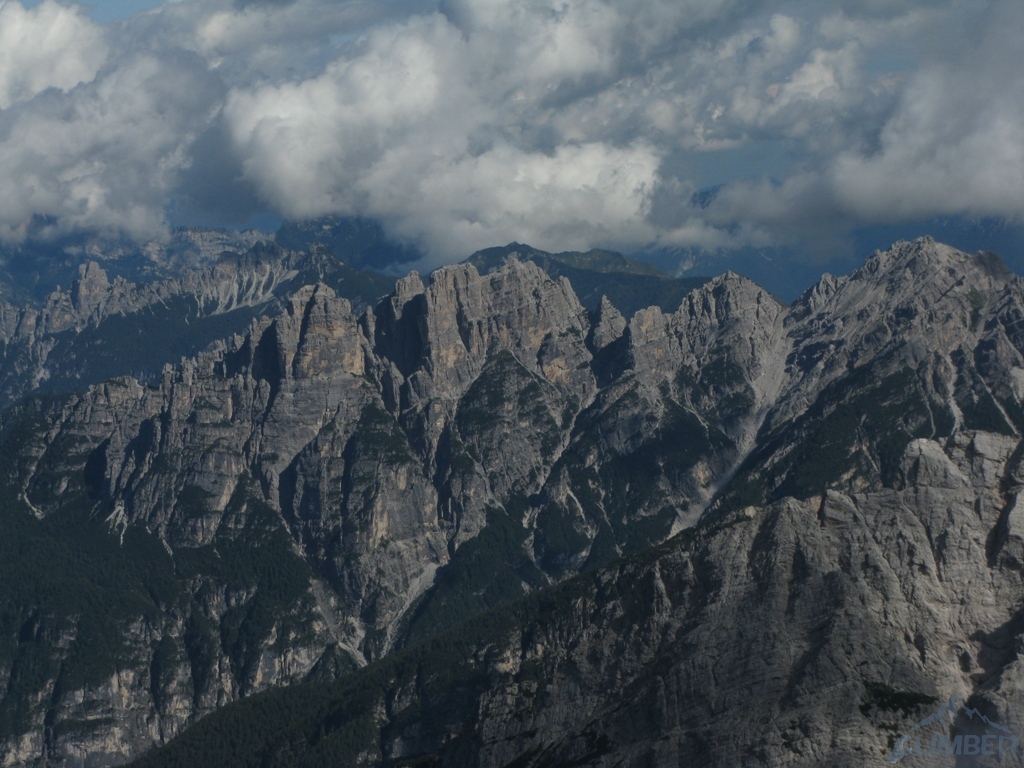 Na pierwszy cel obieramy masyw Moiazza . Wspólnie z Ulą przechodzę ferratę Constantini Ovest, a następnie sam wybieram się w kierunku szczytu, po drodze przechodząc krótką Cengia Angelini. Pod samym wierzchołkiem trochę się gubię i w konsekwencji zmuszony jestem do przewspinania krótkiego kominka. Udaje się i widokami z góry delektuję się w samotności.