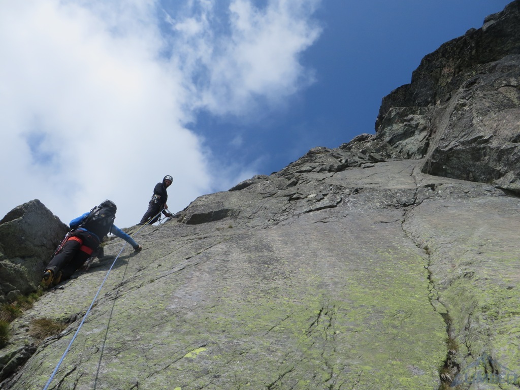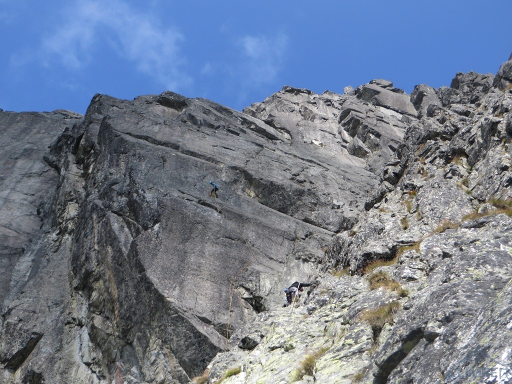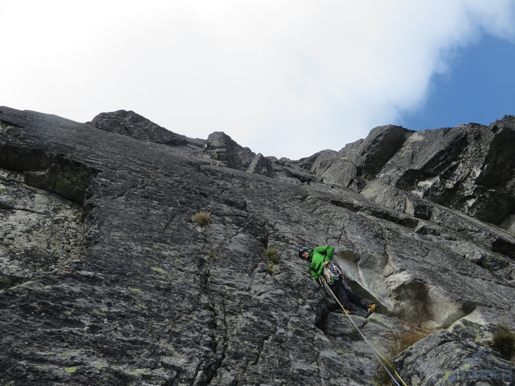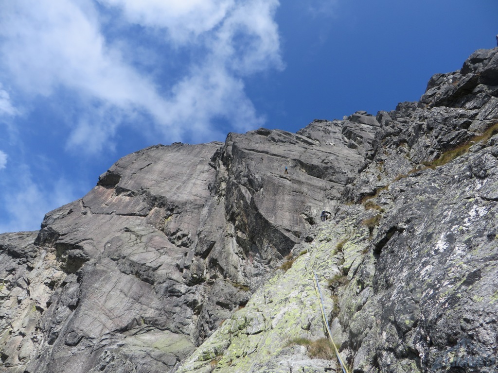 W tym samym składzie jak rok temu, wracamy na Kieżmarski by dokończyć drogę Kriššáka (VI+) na południowej ścianie. Podczas zeszłorocznego wspinania (RELACJA) zostaliśmy zmuszeni przez ulewę do wycofania się po przejściu dolnej części i 2 wyciągów nad rampą, pozostały nam więc dwa ostatnie wyciągi drogi. Z tego też względu tym razem postanawiamy dolną część ściany przejść drogą Lipka-Święcicki (V+). Akcja zaczyna się od nieprzyjemnej niespodzianki – z powodu silnego wiatru nie kursuje kolejka do Łomnickiego Stawu. Chcieliśmy skorzystać z jednej z nielicznych okazji by nie podchodzić pod ścianę, oszczędzić nogi i wyspać się godzinę dłużej – udało się tylko to ostatnie 😉.